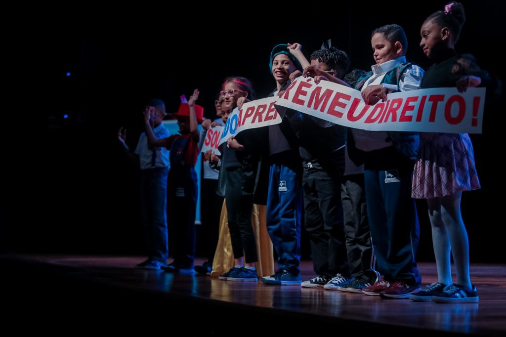 A abertura do Literatura em Movimento 2025 contou com a dramatização O Colecionador de Histórias, encenada em Libras pelos alunos surdos das classes bilíngues da EPG Crispiniano Soares e traduzida simultaneamente pelos educadores para o português oral. A apresentação abordou a relação das crianças surdas com o universo das palavras e as infinitas possibilidades de interação, imaginação e criatividade que as histórias lhes proporcionam, sobretudo em espaços como as bibliotecas.