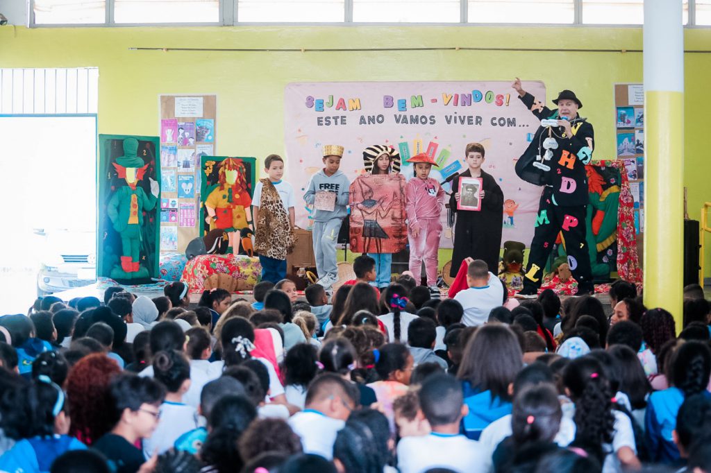 Alunos do ensino fundamental da EPG Pixinguinha, no Jardim Joemi, receberam na última terça-feira (22) apresentação do Projeto ARTCANTADA, ação do programa Literatura em Movimento 2025 da Secretaria de Educação, que além de apresentações musicais também oferece intensa programação com contação de histórias palestras e atividades culturais a partir do tema Leitura: Direito de Todos.