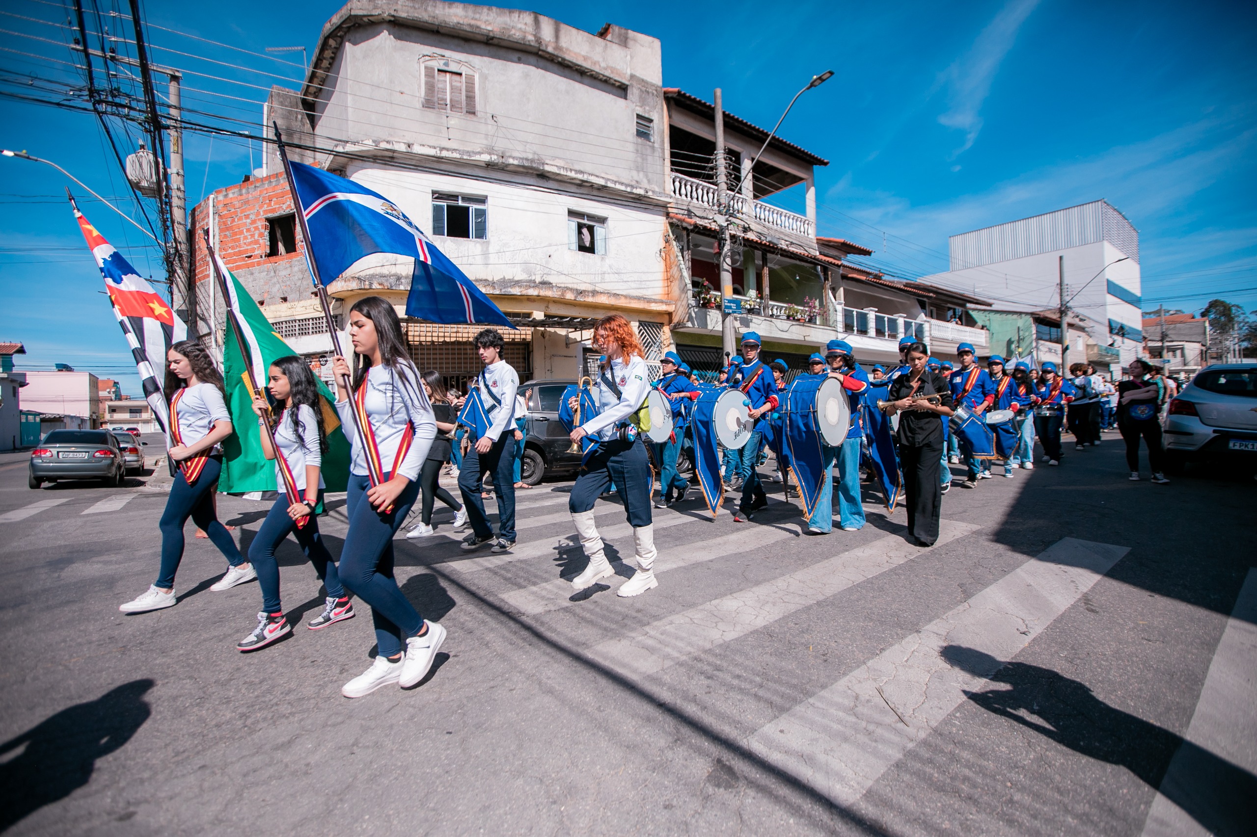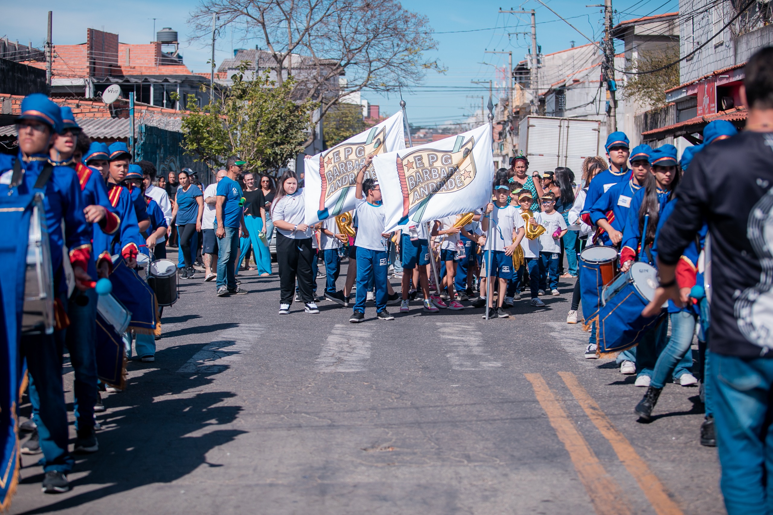 Para incentivar os valores cívicos e envolver a comunidade escolar, na última terça-feira (2) a EPG Bárbara Andrade Tenório de Lima, no Jardim Cumbica, promoveu o 1º Desfile Cívico Descentralizado em parceria com a Fanfarra da Escola Estadual José Alves Cerqueira César. A iniciativa, alinhada ao projeto político-pedagógico da escola (PPP) celebrou a Semana da Pátria, com atividades culturais que ampliaram os espaços de aprendizagem para além de aula.
