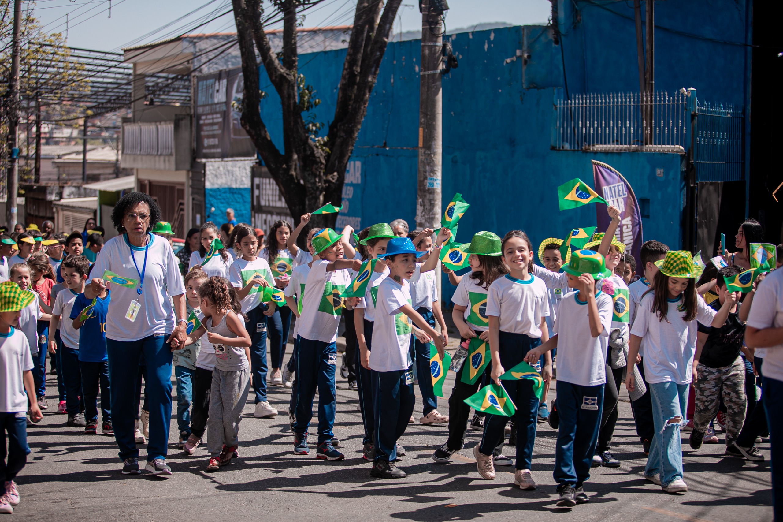A Semana da Pátria 2025 tem movimentado as escolas da Prefeitura de Guarulhos, evidenciando aspectos culturais e sociais que despertam o orgulho de pertencer à cidade. Nesta sexta-feira (5) a EPG Carlos Drummond de Andrade, na Cidade Seródio, promoveu um desfile cívico nas imediações da unidade, tanto no período da manhã quanto à tarde.