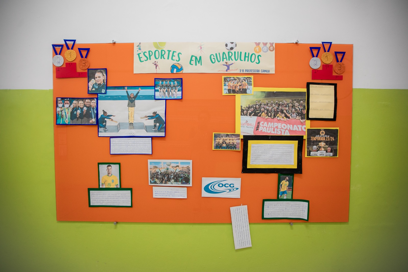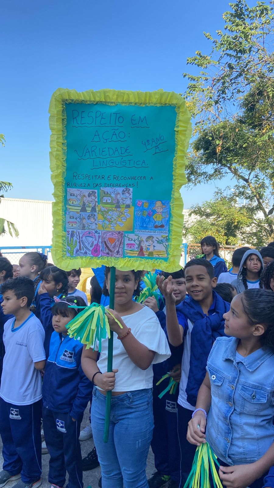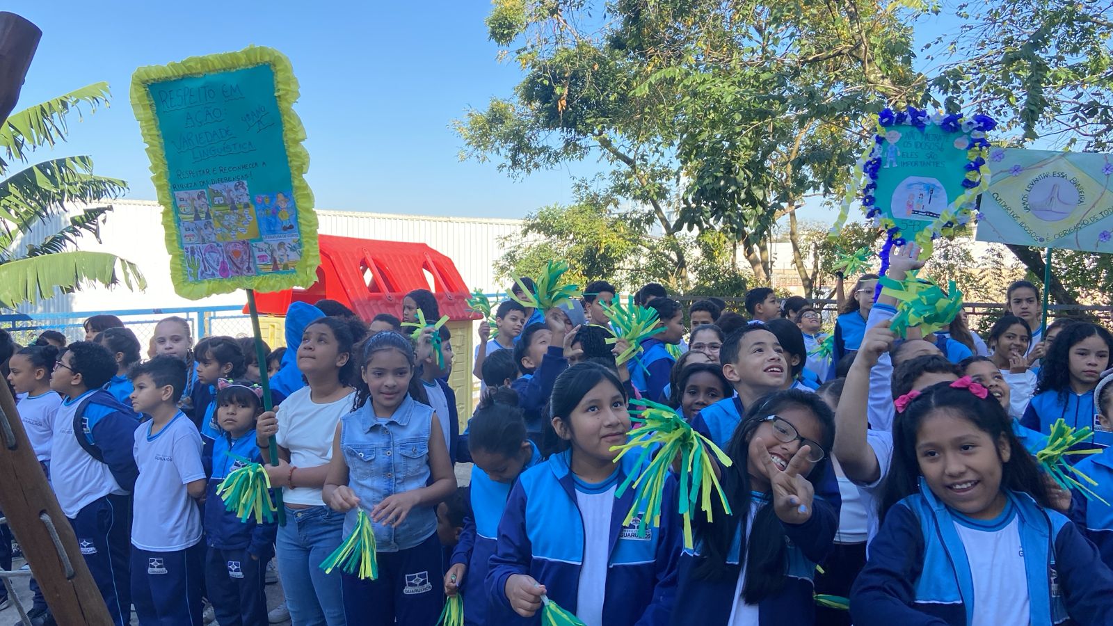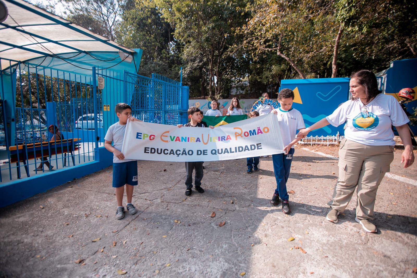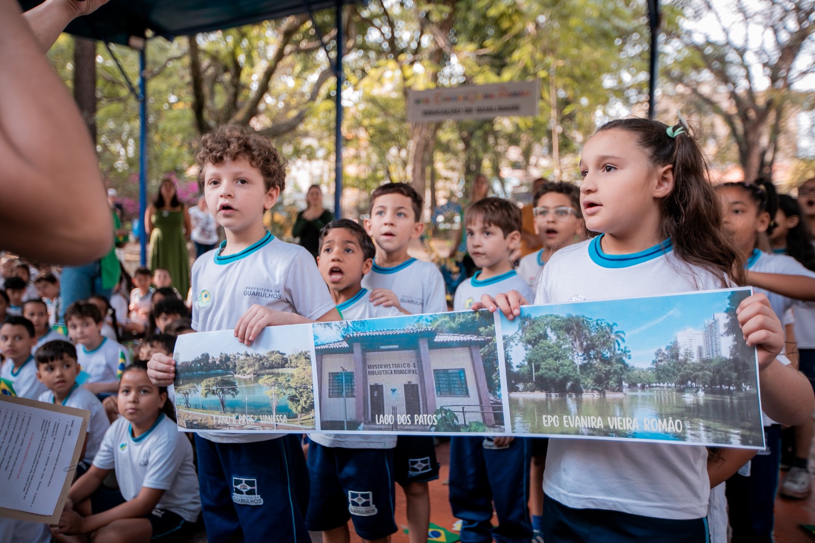 Na EPG Evanira Vieira Romão, na Vila Augusta, as professoras produziram junto aos alunos um painel com o tema “O que tem em Guarulhos”. Reafirmando o orgulho e o sentimento de pertencimento à cidade, o trabalho destacou personalidades e símbolos locais, como a ginasta Rebeca Andrade, o time de vôlei masculino de Guarulhos campeão paulista em 2023 e a Olimpíada Colegial Guarulhense (OCG), além de pontos marcantes da cidade como o Lago dos Patos, Zoo de Guarulhos, Bosque Maia e Estação Aeroporto-Guarulhos da CPTM (Companhia Paulistana de Trens Metropolitanos), que atende o Aeroporto Internacional. Na sequência, os alunos participaram de um desfile até a tenda do Parque Júlio Fracalanza, onde realizaram um jogral temático e cantaram os hinos.