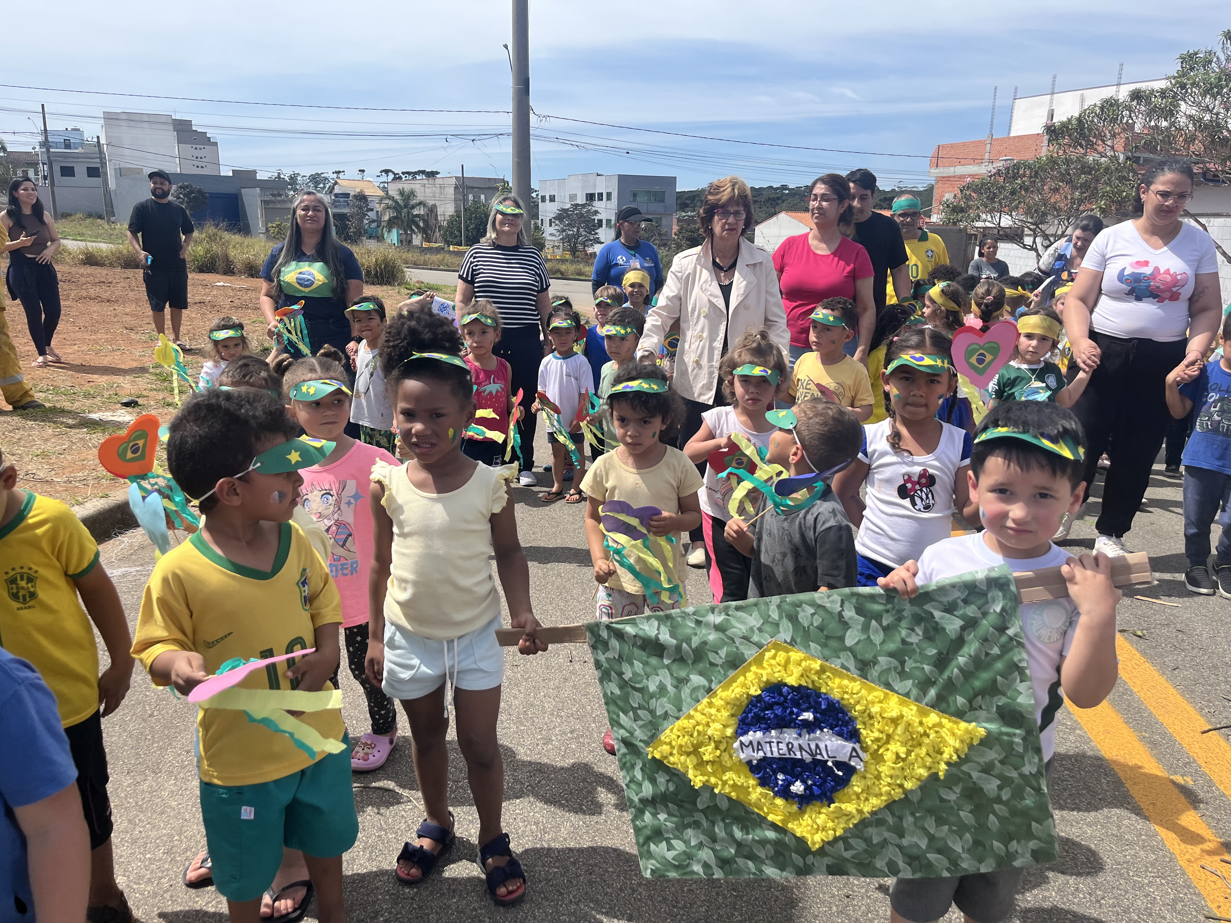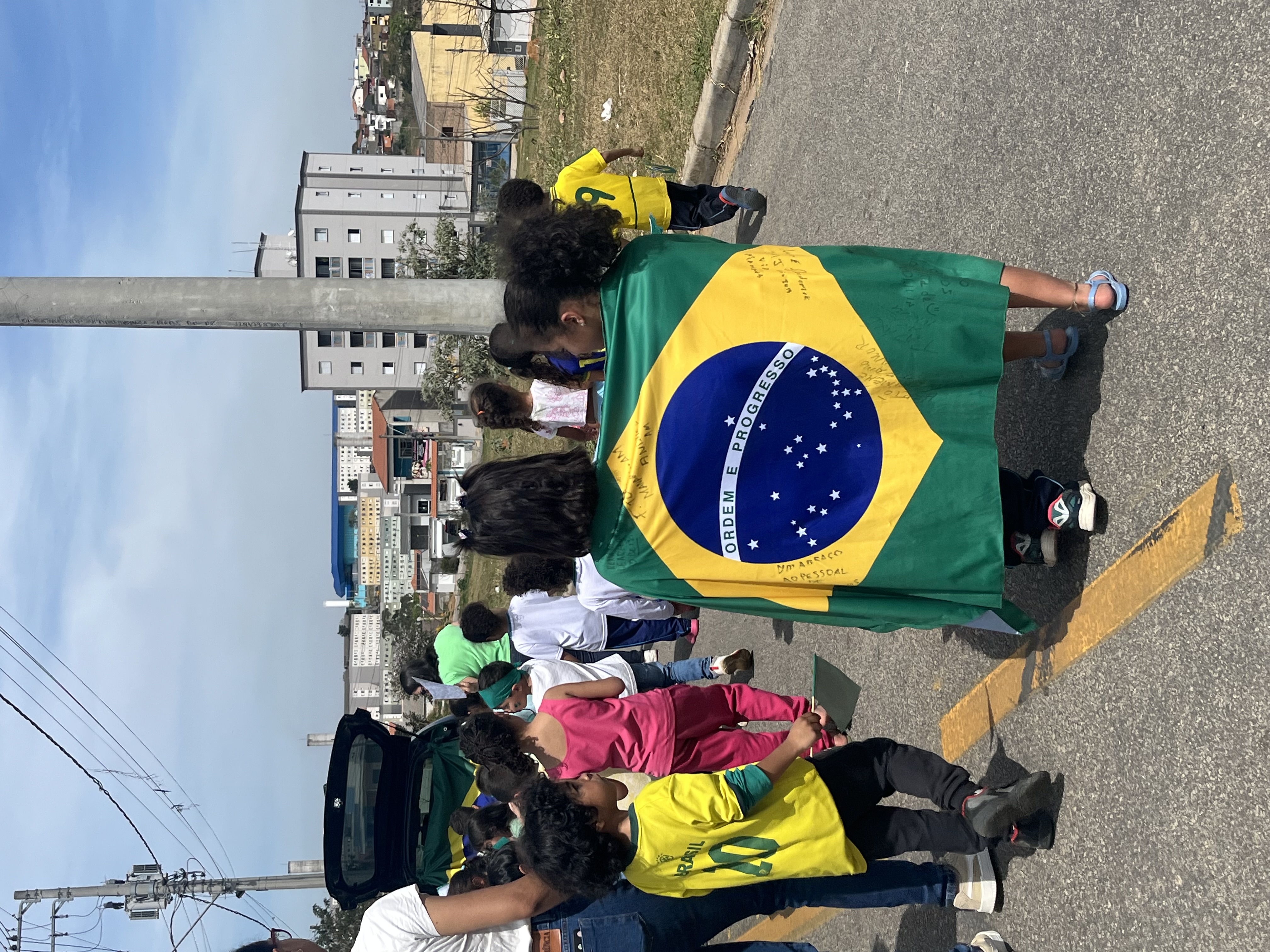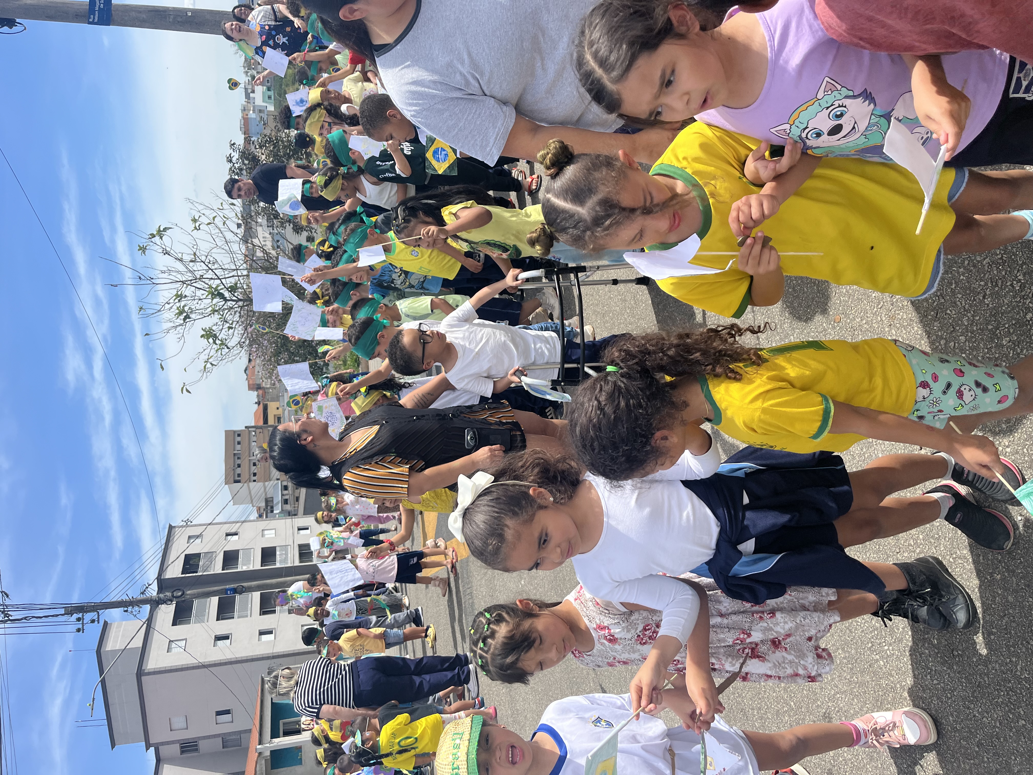 Já a EPG Nicolina Bispo, na Vila Carmela, também promoveu um desfile com as crianças, no qual carregaram cartazes temáticos e outros trabalhos artísticos, evidenciando a bandeira e as cores do Brasil.