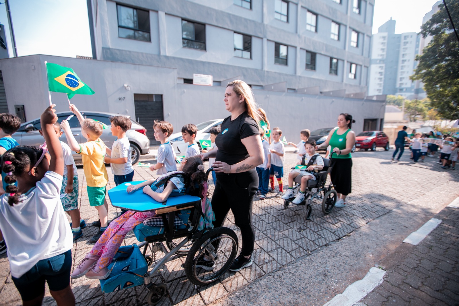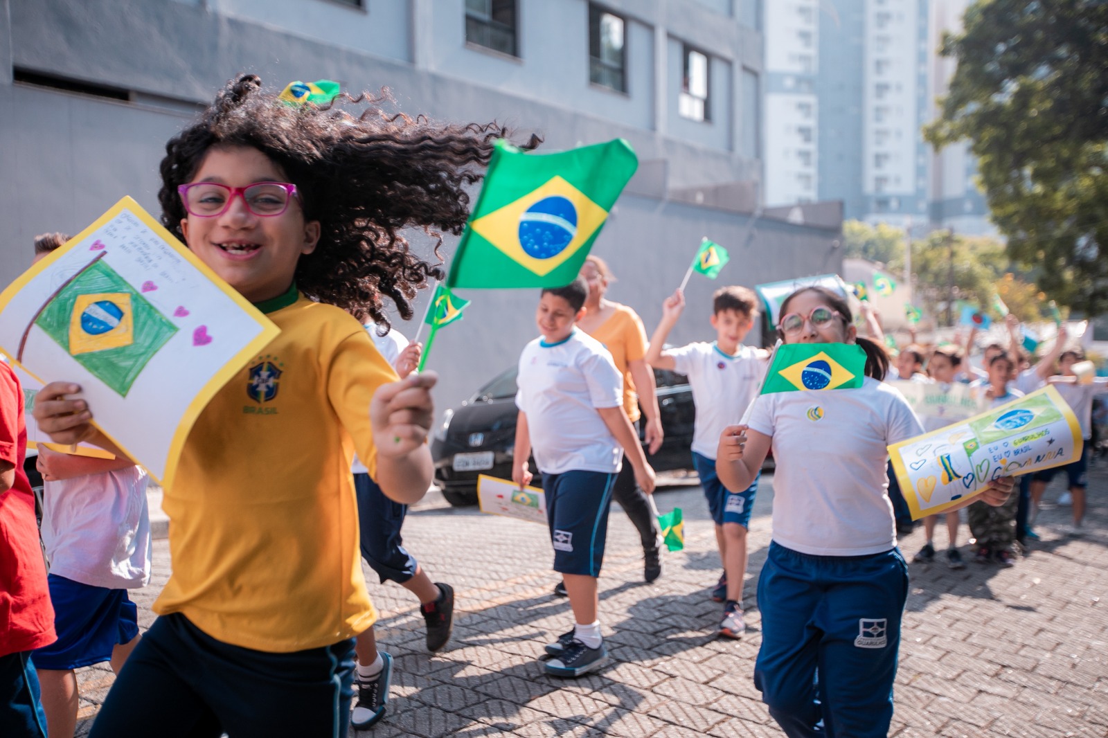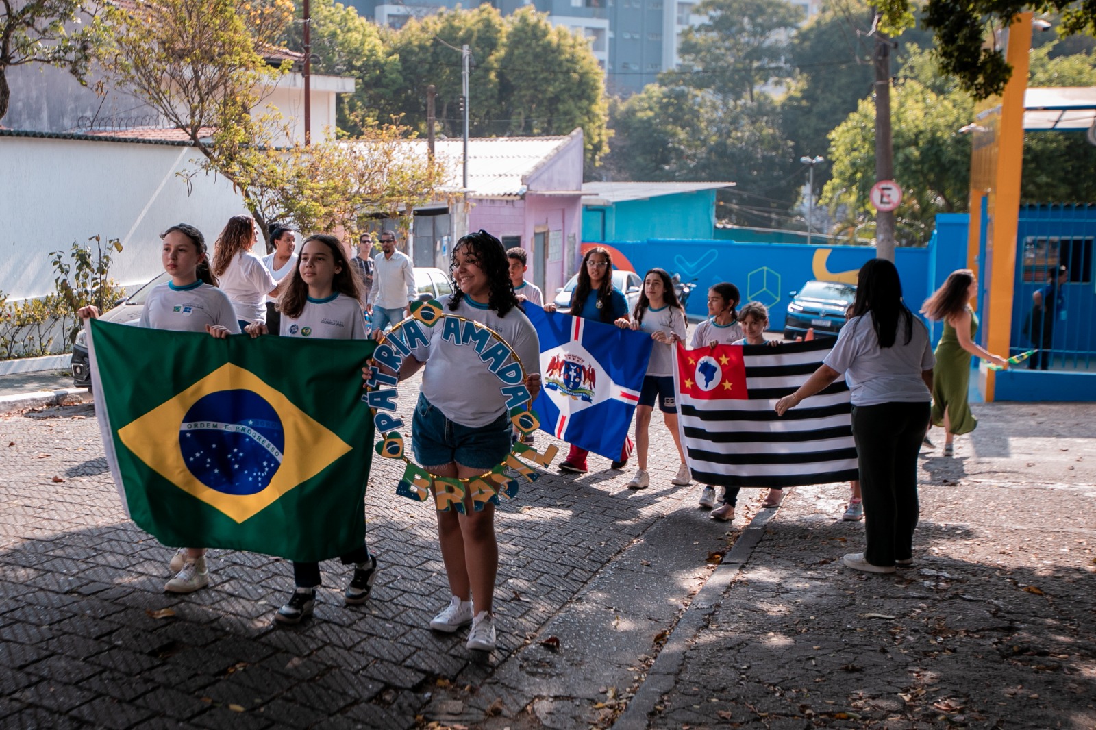 Já a EPG Nicolina Bispo, na Vila Carmela, também promoveu um desfile com as crianças, no qual carregaram cartazes temáticos e outros trabalhos artísticos, evidenciando a bandeira e as cores do Brasil.