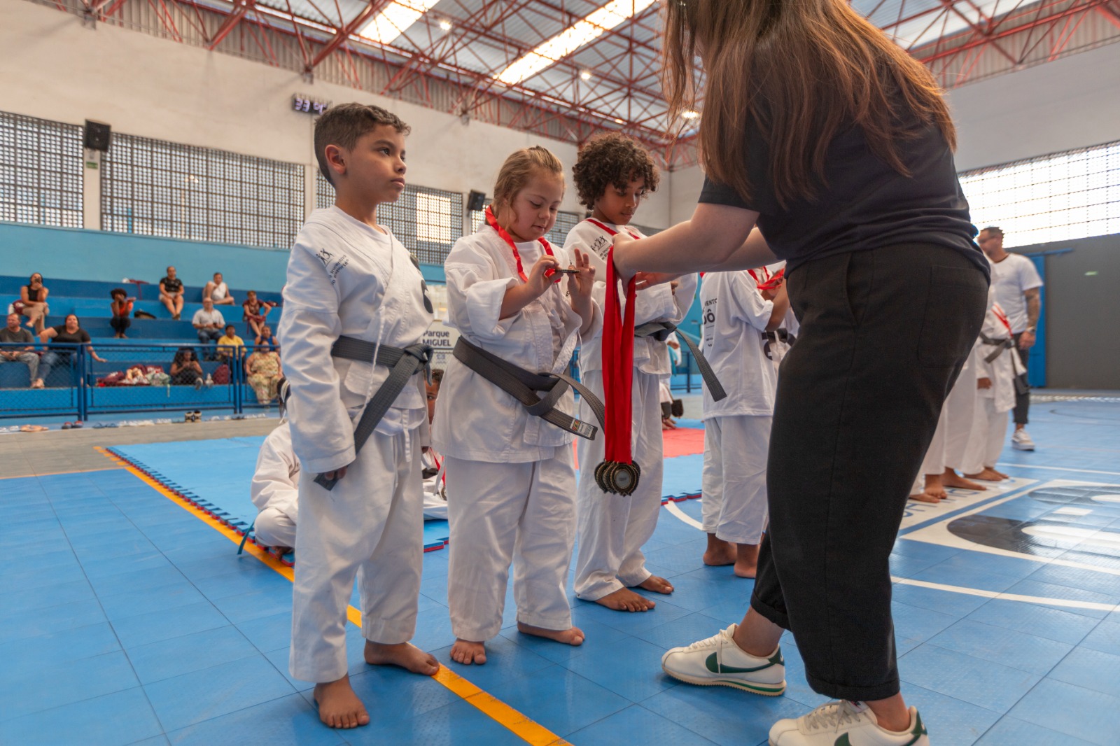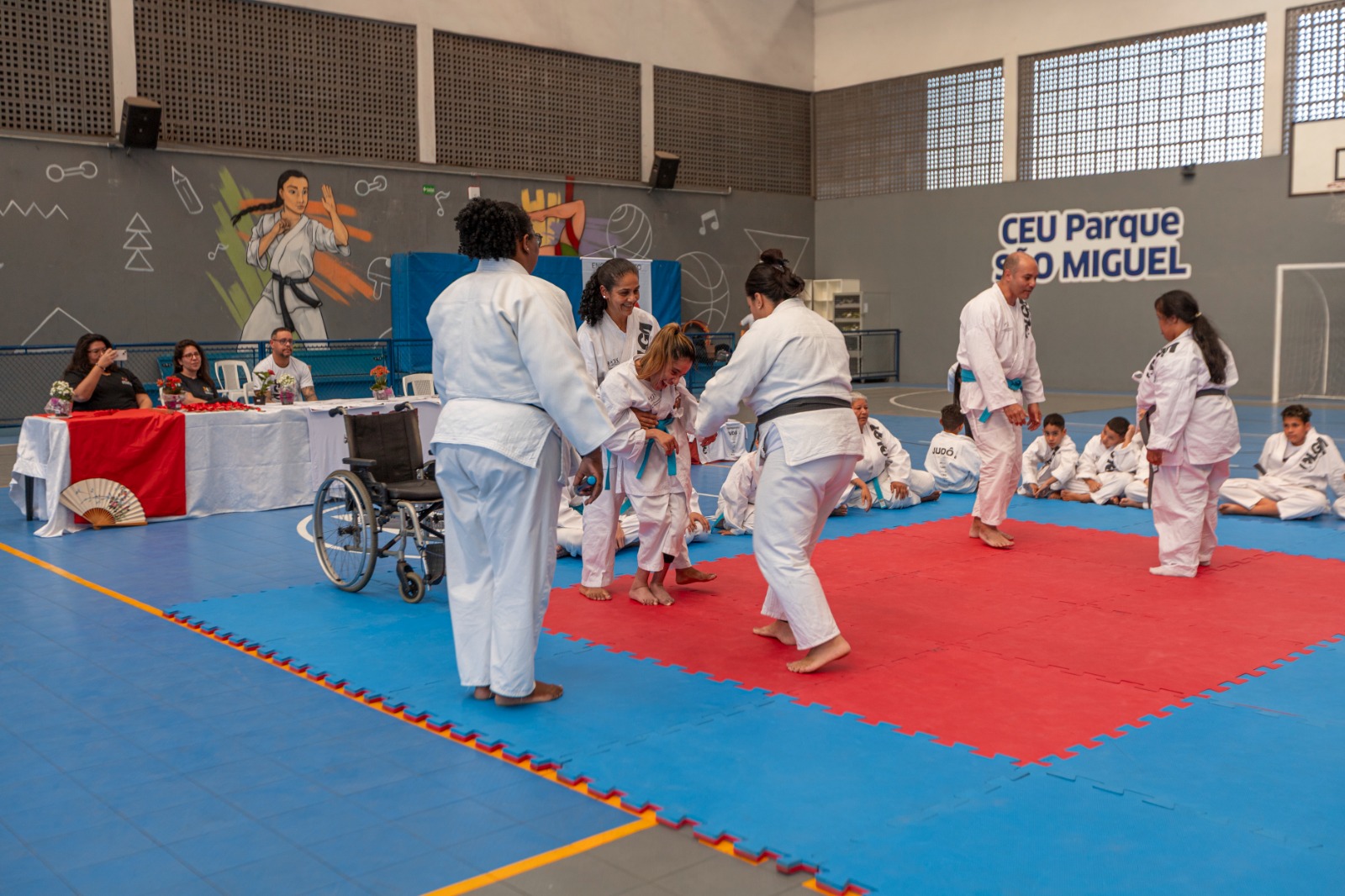O CEU Parque São Miguel promoveu na quinta-feira (11) a entrega das medalhas aos alunos participantes do curso de judô adaptado voltado a pessoas com ou sem deficiência e idade a partir dos seis anos. O evento de encerramento foi marcado pela celebração esportiva, favorecendo a autoconfiança das crianças em um ambiente de respeito e inclusão.