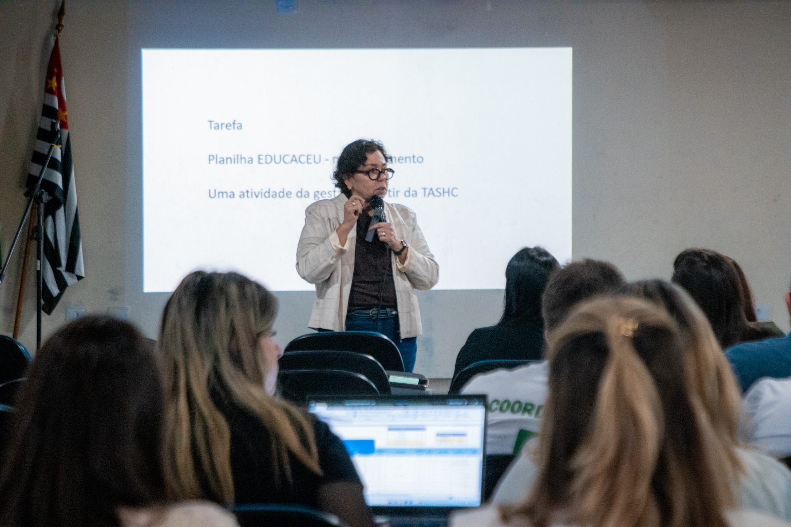 Conduzida pela prof.ª dr.ª Maria Regina Passos, a formação destacou a importância de estratégias para ampliação de espaços educativos e de qualidade, a partir de dados concretos. Segundo a especialista, levantamentos de dados e análises profundas possibilitam que os gestores dos CEUs e os diretores das escolas fortaleçam suas relações, aprimorando o monitoramento tanto no desenvolvimento individual das crianças quanto no contexto mais amplo.