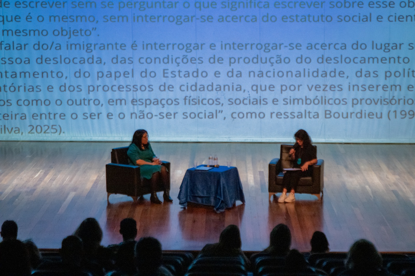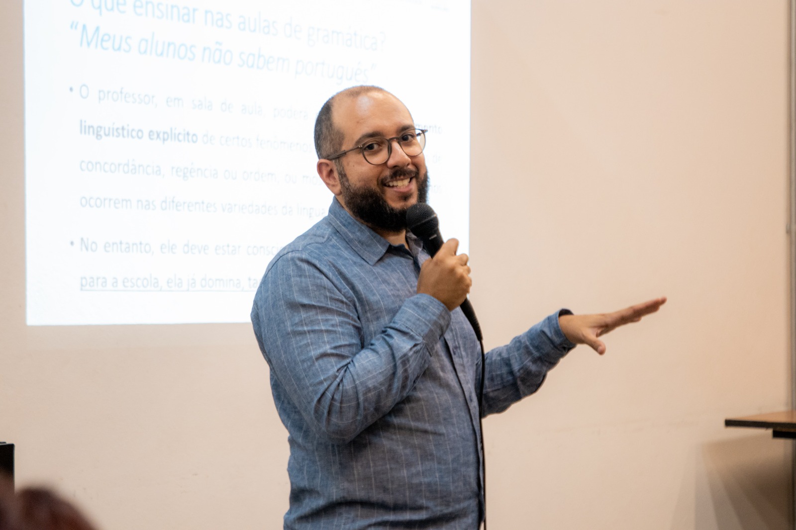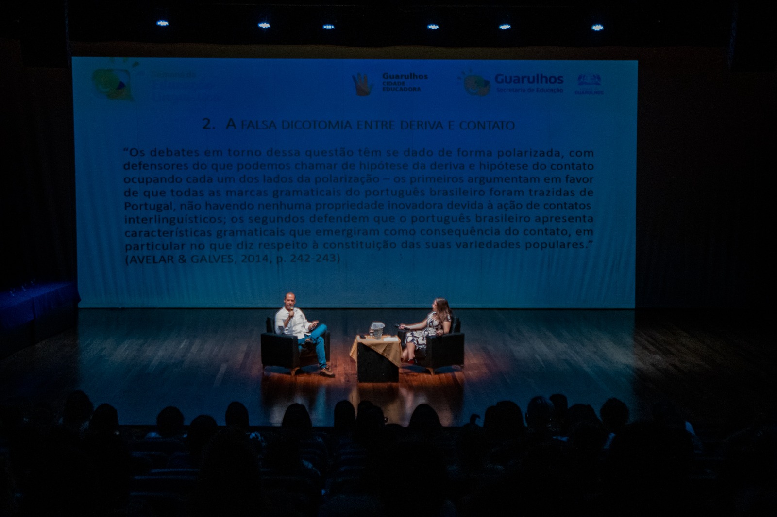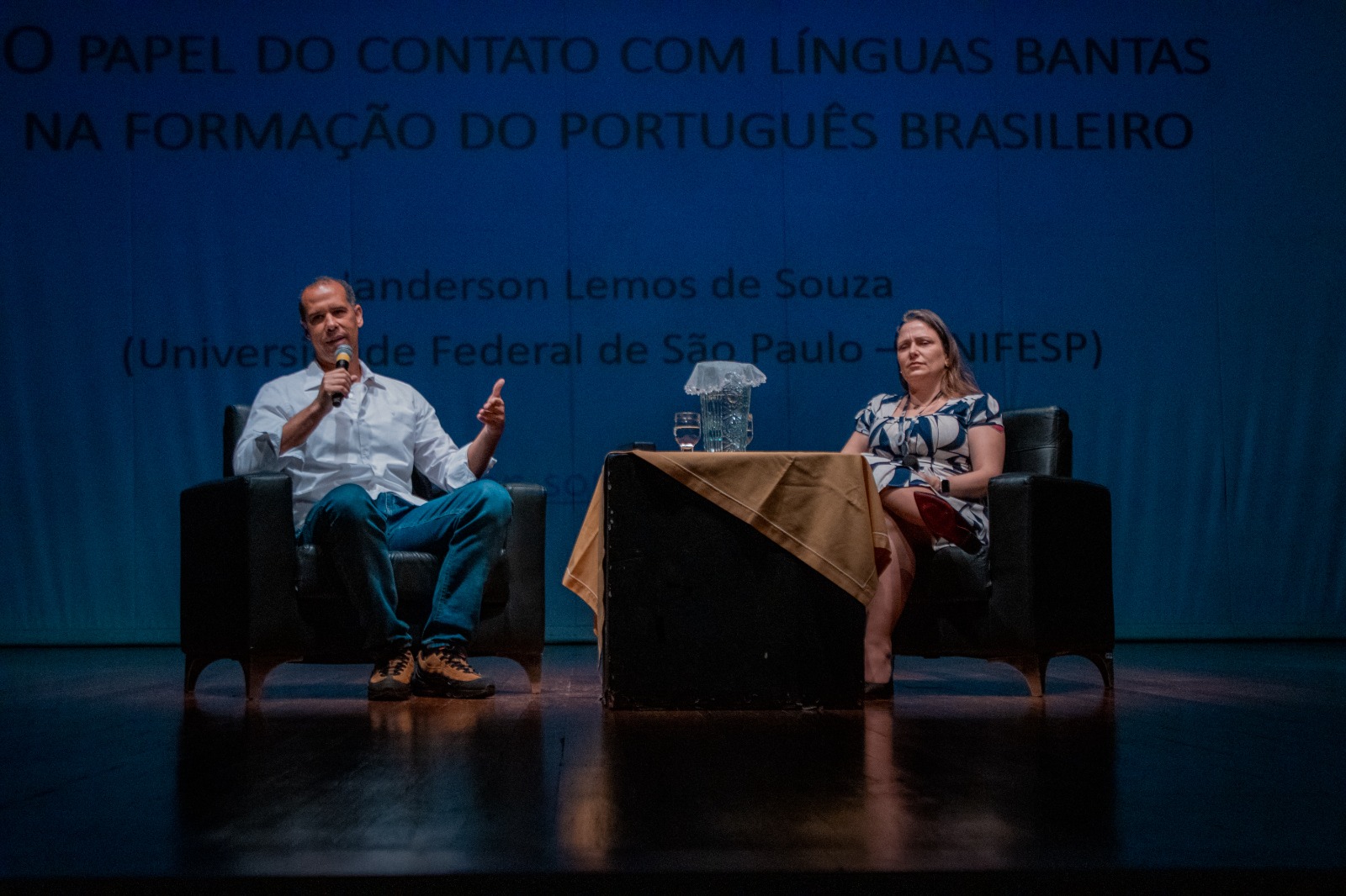 A primeira palestra foi ministrada pelo Prof. Dr. Janderson Lemos de Souza, que abordou o papel do contato com línguas bantas na formação da língua portuguesa. A mediação contou com a Prof.ª Ms. e doutoranda em Letras da Unifesp, Gláucia Antonovicz Lopes.