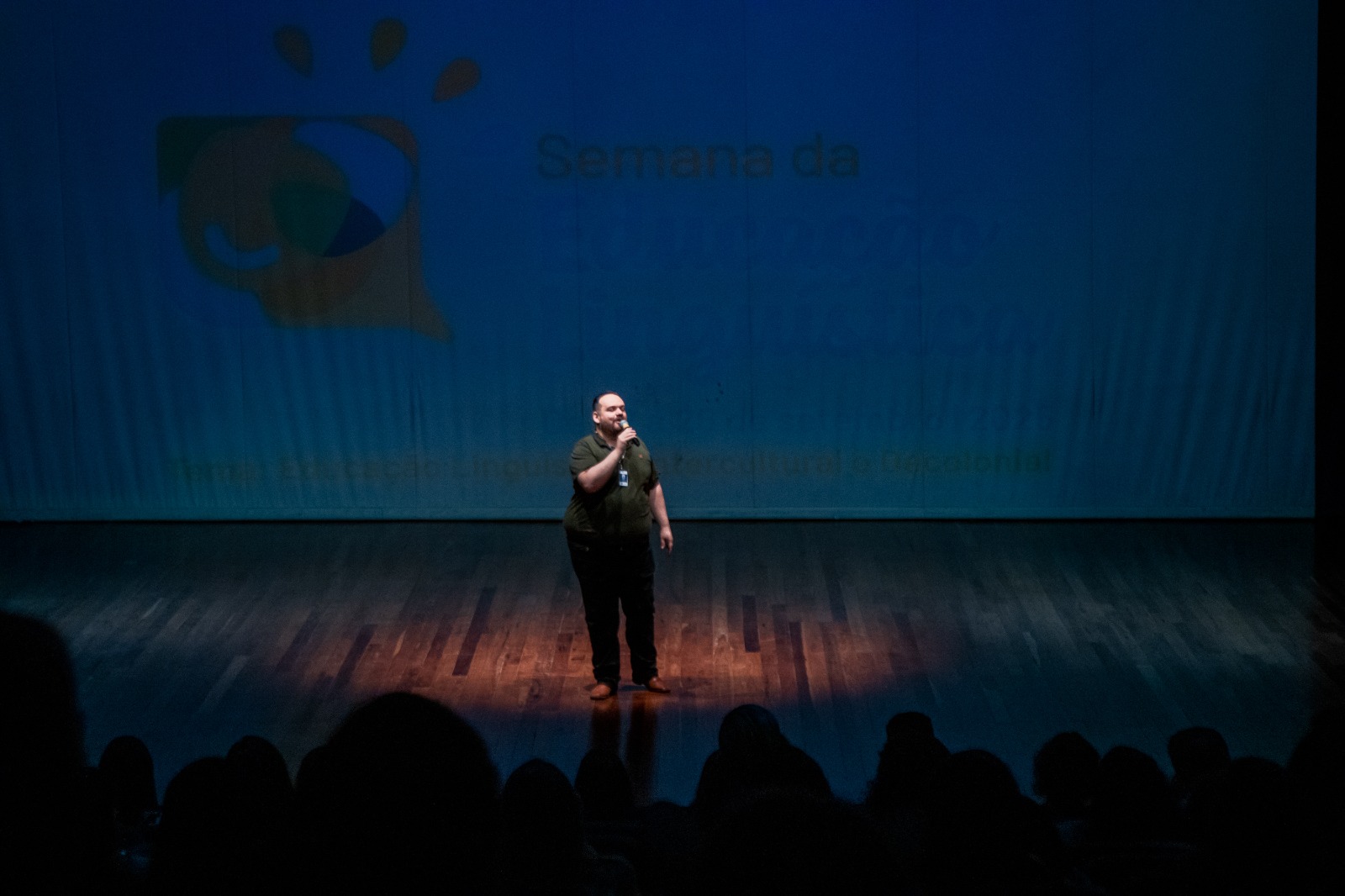A abertura contou com apresentação de teatro em Língua Brasileira de Sinais (Libras) encenada pelos alunos surdos das classes bilíngues da EPG Crispiniano Soares, com tradução simultânea para o português realizada pelos educadores. A participação efetiva dos educandos reforça a inclusão da Libras para pessoas surdas, prevista em lei desde 2005, como instrumento de integração e reconhecimento identitário. Houve ainda apresentação musical do coordenador de programas educacionais, Leonardo Geronazzo, representante da comissão organizadora do evento.