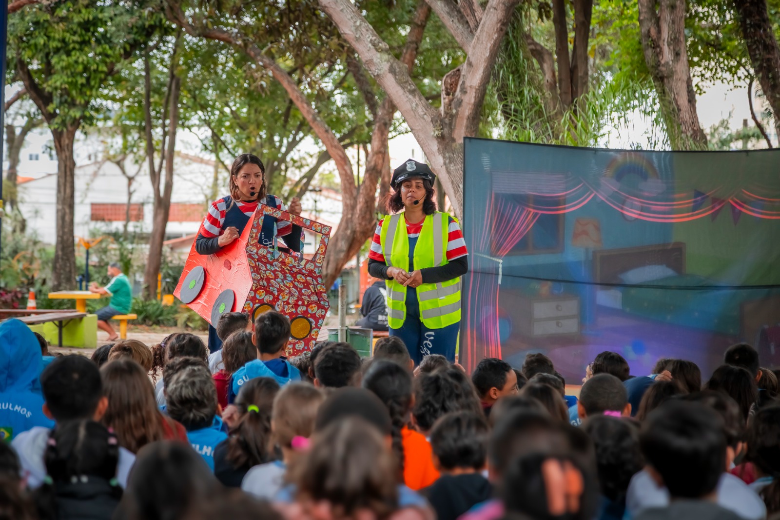 Na terça-feira (23) a peça de teatro educativo sobre trânsito foi organizada pelos servidores do espaço educacional e apresentada aos alunos da EPG Evanira Vieira Romão, na tenda do parque. A ação reforçou a importância da segurança viária, por meio da educação, de campanhas de conscientização e práticas coletivas de respeito às regras.