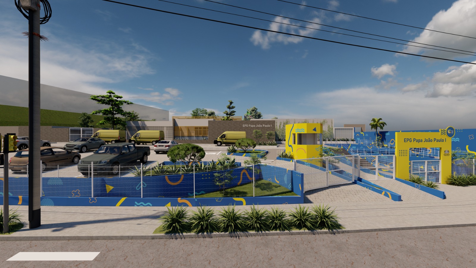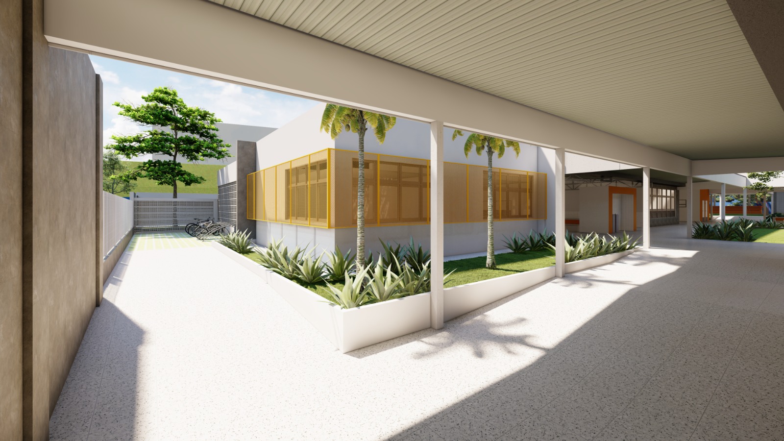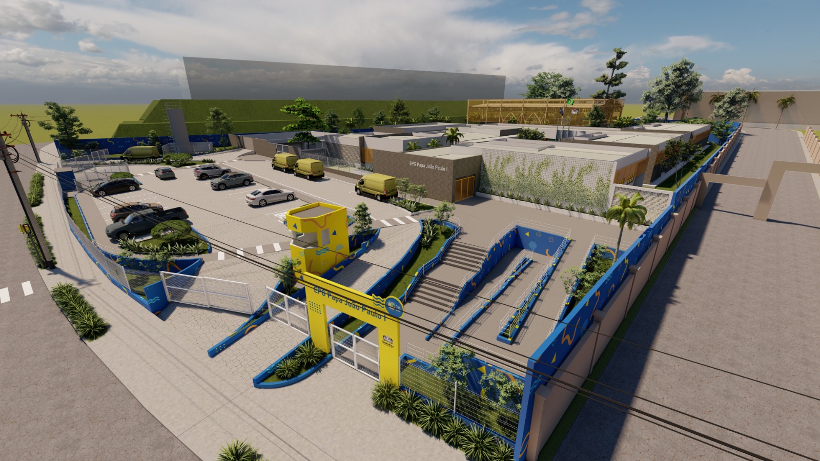 Com foco na segurança e proteção dos educandos, o projeto da nova unidade escolar prevê ainda estacionamento e área para embarque e desembarque dos alunos e manobras das vans escolares. Os espaços externos também oferecerão faixas de pedestre e sinalização para a circulação de pessoas. No quesito acessibilidade, a escola contará com banheiros acessíveis, piso tátil, rampas, guarda-corpo e pisos impermeáveis.