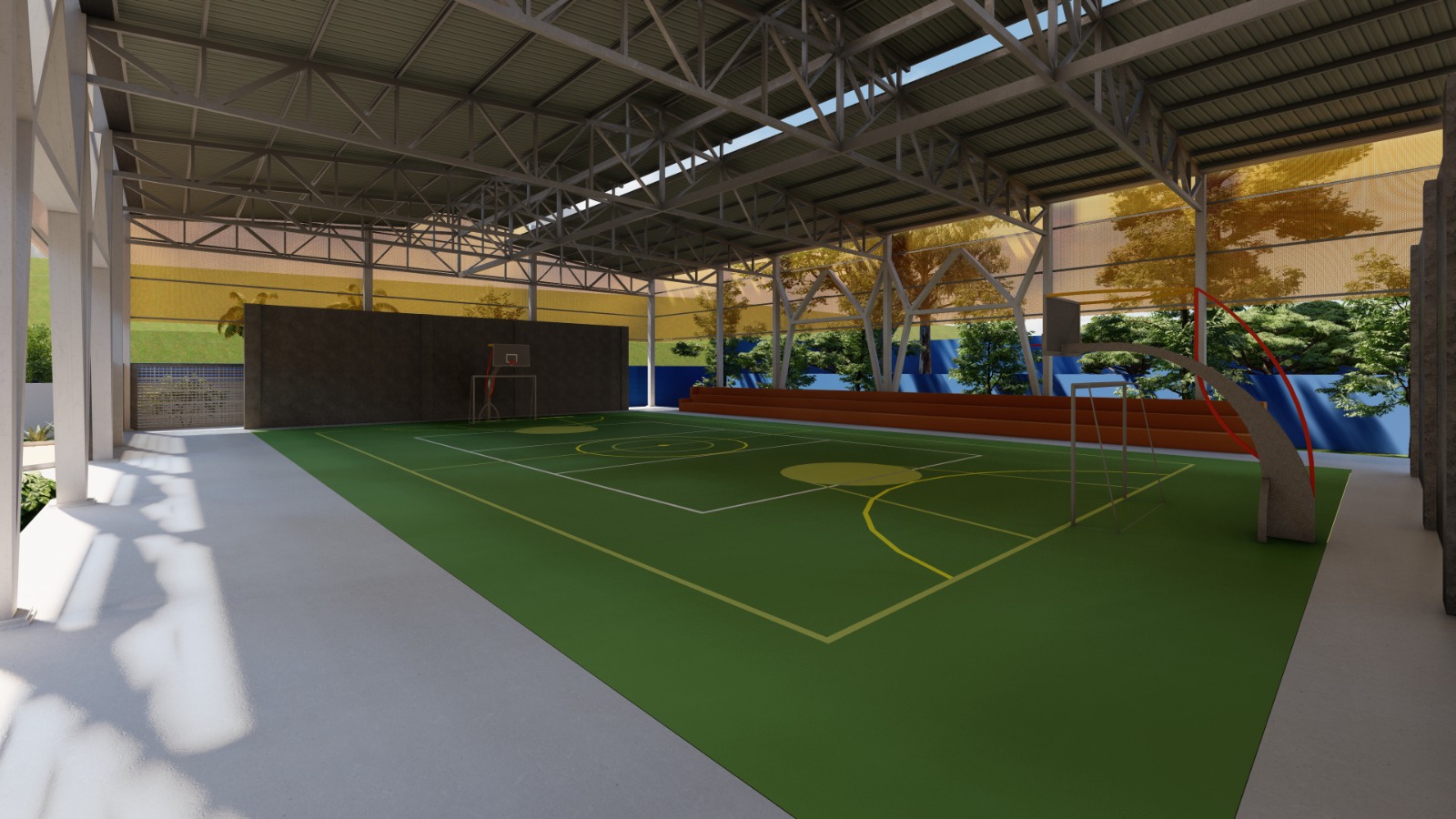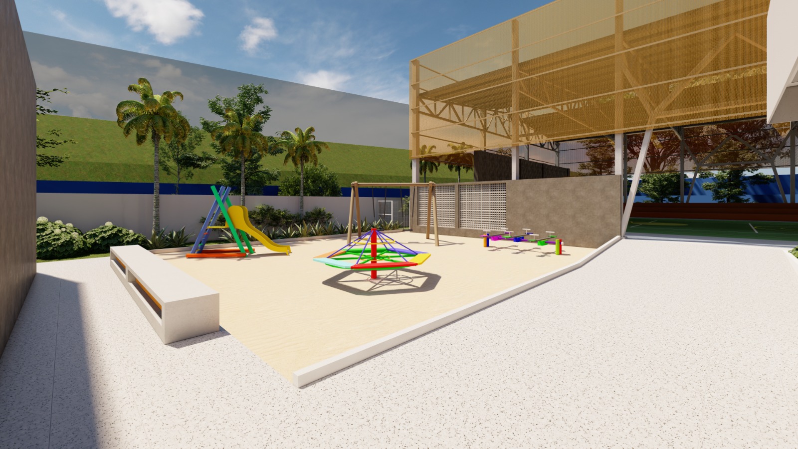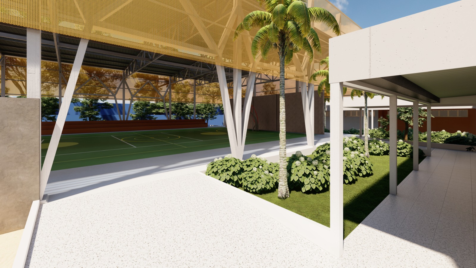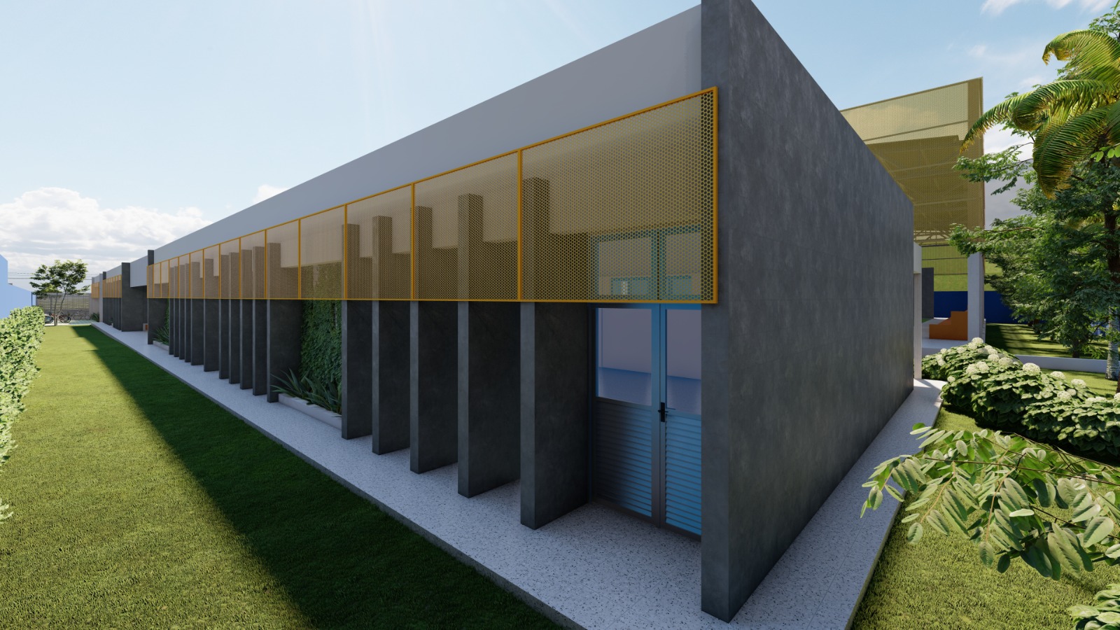 Com foco na segurança e proteção dos educandos, o projeto da nova unidade escolar prevê ainda estacionamento e área para embarque e desembarque dos alunos e manobras das vans escolares. Os espaços externos também oferecerão faixas de pedestre e sinalização para a circulação de pessoas. No quesito acessibilidade, a escola contará com banheiros acessíveis, piso tátil, rampas, guarda-corpo e pisos impermeáveis.