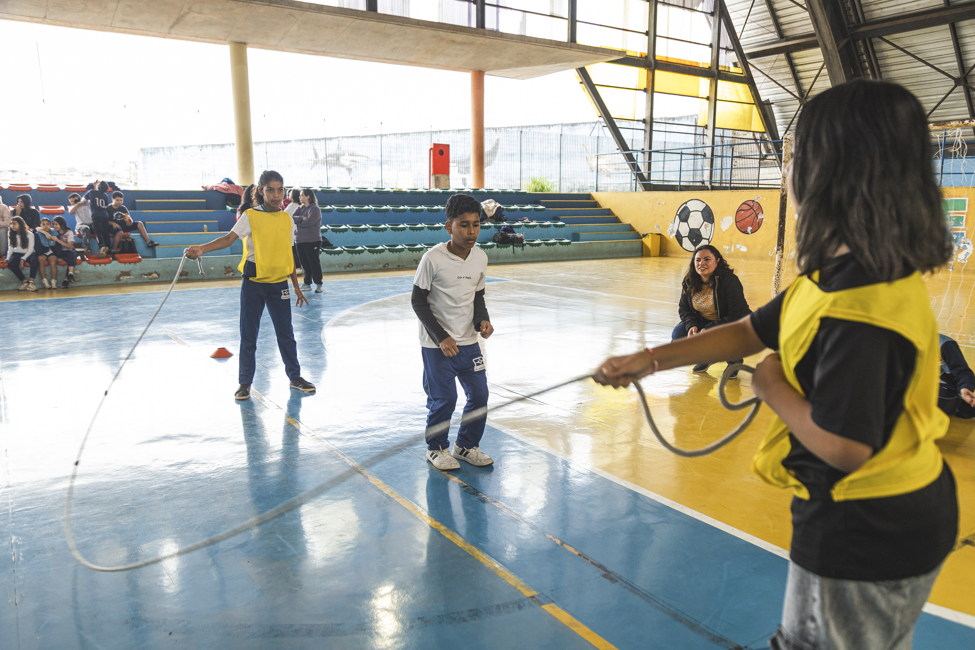 De acordo com a professora Érika Calegari, a modalidade Cordas em Equipe oferece às crianças a oportunidade de jogar juntas, de modo colaborativo. A modalidade tem como objetivo a participação de crianças saltando em duplas, em um time composto por quatro meninos e quatro meninas. As duplas pulam durante quatro minutos, sendo um minuto para cada dupla, com cinco rodadas. A pontuação é feita pelo total de saltos que todas as crianças fazem durante as cinco rodadas.