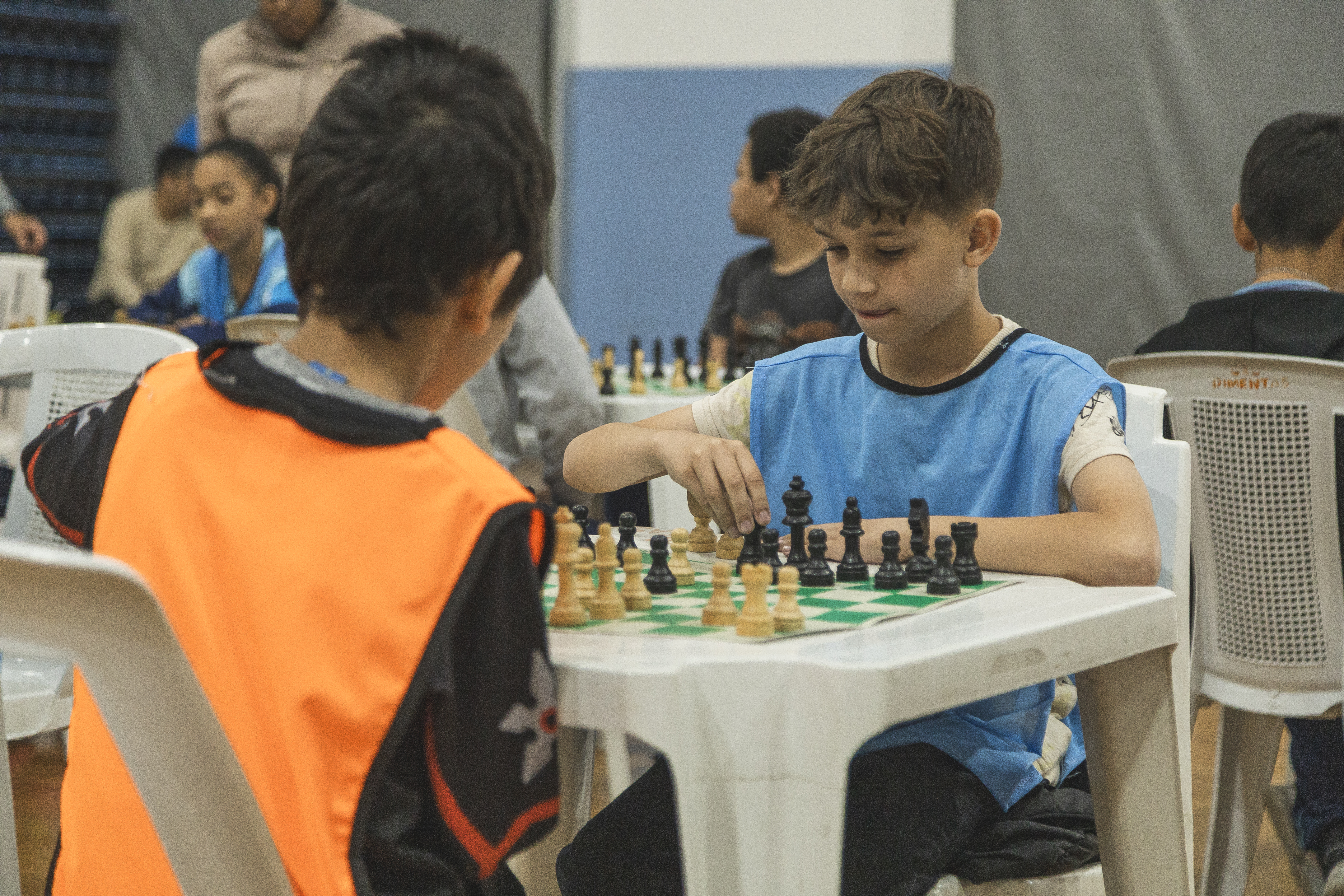 Alunos do ensino fundamental das escolas da Prefeitura de Guarulhos participaram na manhã desta sexta-feira (10), das modalidades Damas, Xadrez e Cordas em Equipe dos Jogos Escolares Municipais. As modalidades, que integram a Etapa Regional do JEM 2025 com jogos que seguem até o dia 17 de outubro, estimulam momentos de interação, raciocínio lógico e o trabalho em equipe.
