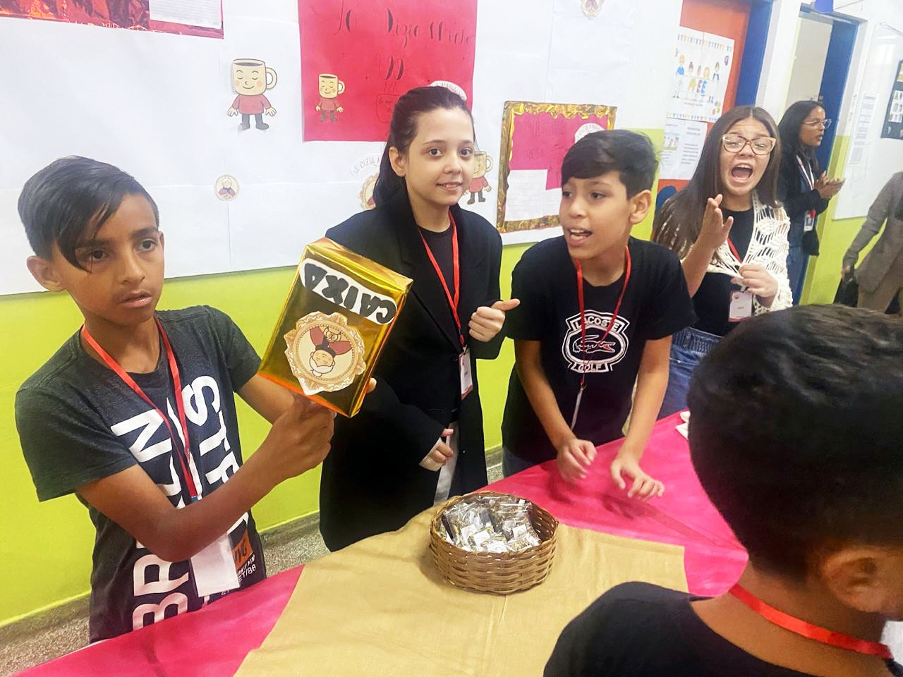 Por fim, os alunos dos 5° anos do período da manhã fizeram a “venda” entre si de alimentos saudáveis como lanches naturais e saladas de frutas. Já do período da tarde montaram empresas fictícias com cargos definidos e simulação de venda de um blend de chás e balas de gelatina.