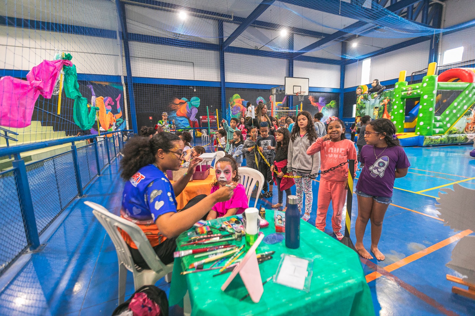 Além de uma série de atividades lúdicas e recreativas que garantiram a animação do público, crianças entre 4 e 12 anos participaram de oficinas e de gincanas e apresentações artísticas e teatrais.