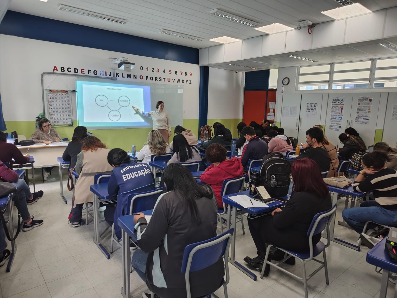 Em outro momento formativo, as participantes também receberam as psicólogas Regiane Guadacholi e Luciana Maria Bizellim, que é educadora na unidade. Durante o encontro, as profissionais falaram sobre níveis de estresse e abordaram a saúde sob a ótica do direito e dever, argumentando em favor do cuidado e do respeito que devemos ter com nossos corpos e mentes.