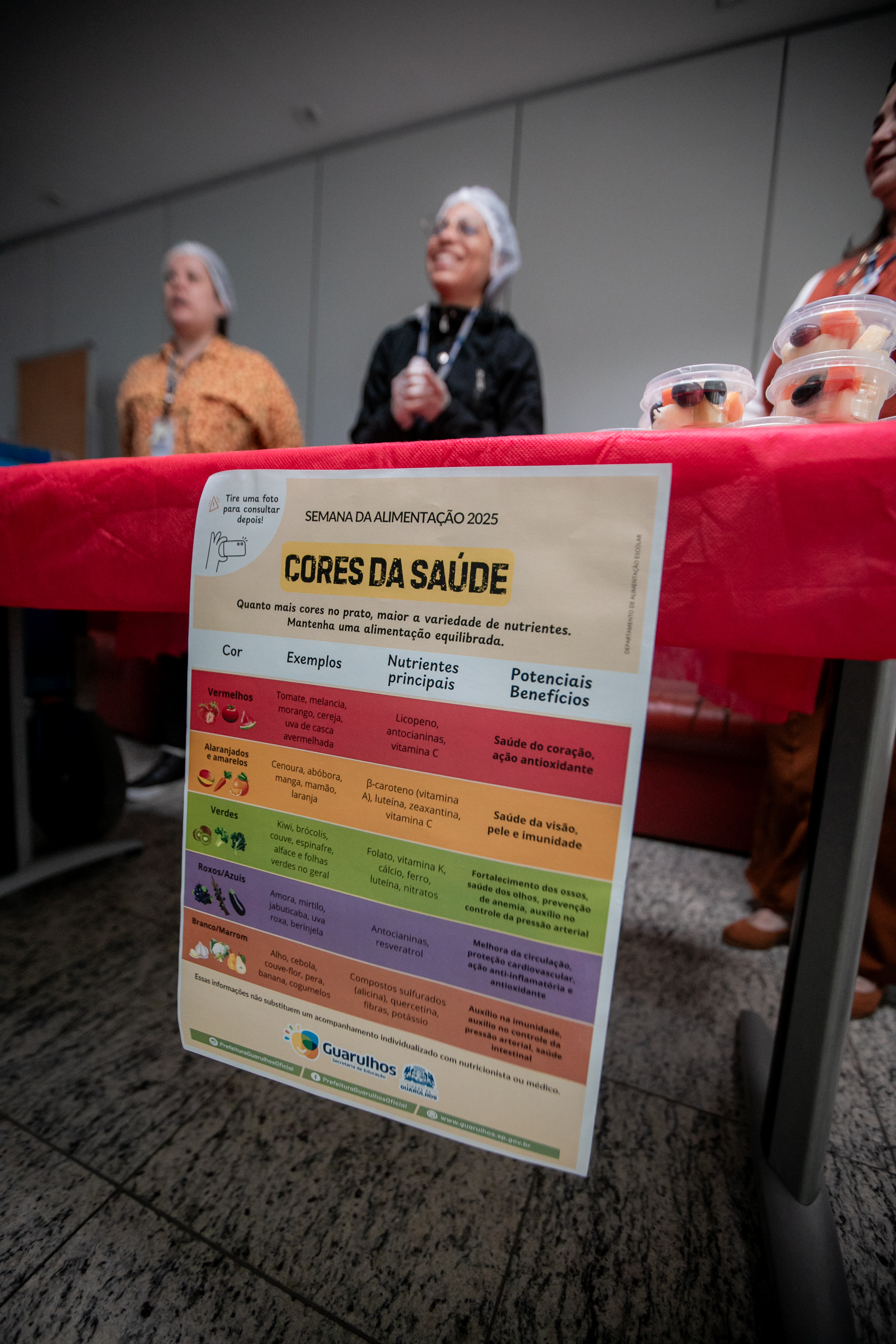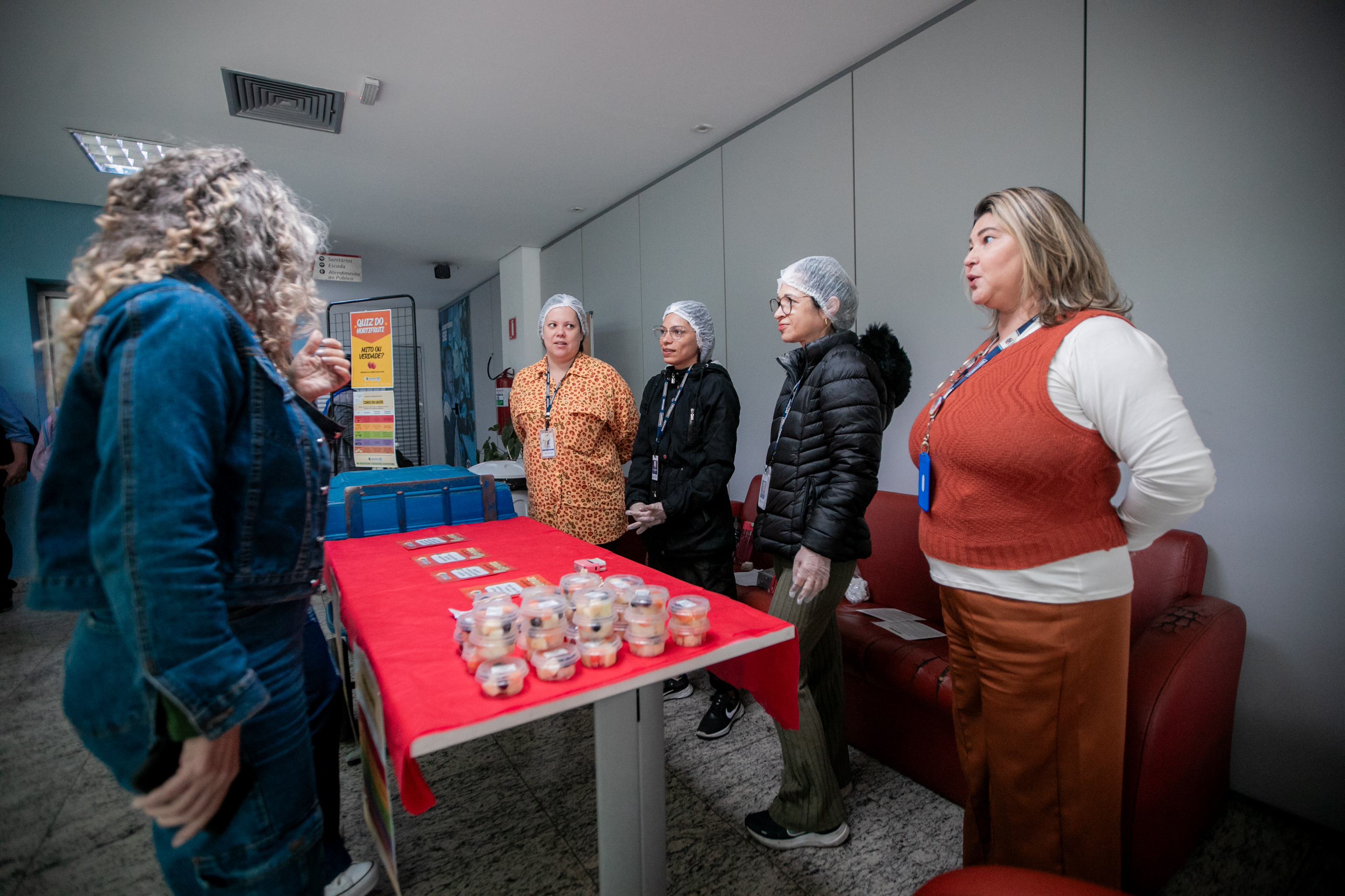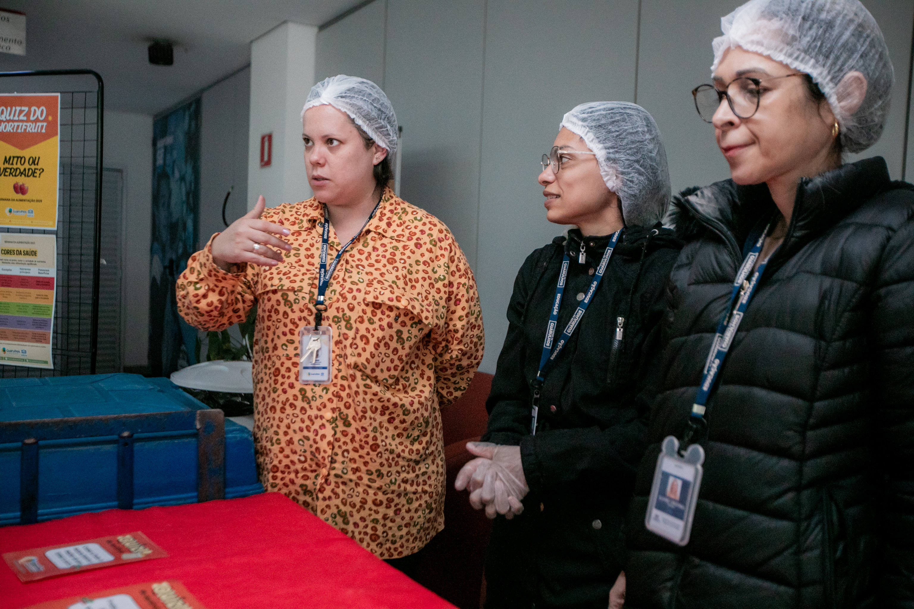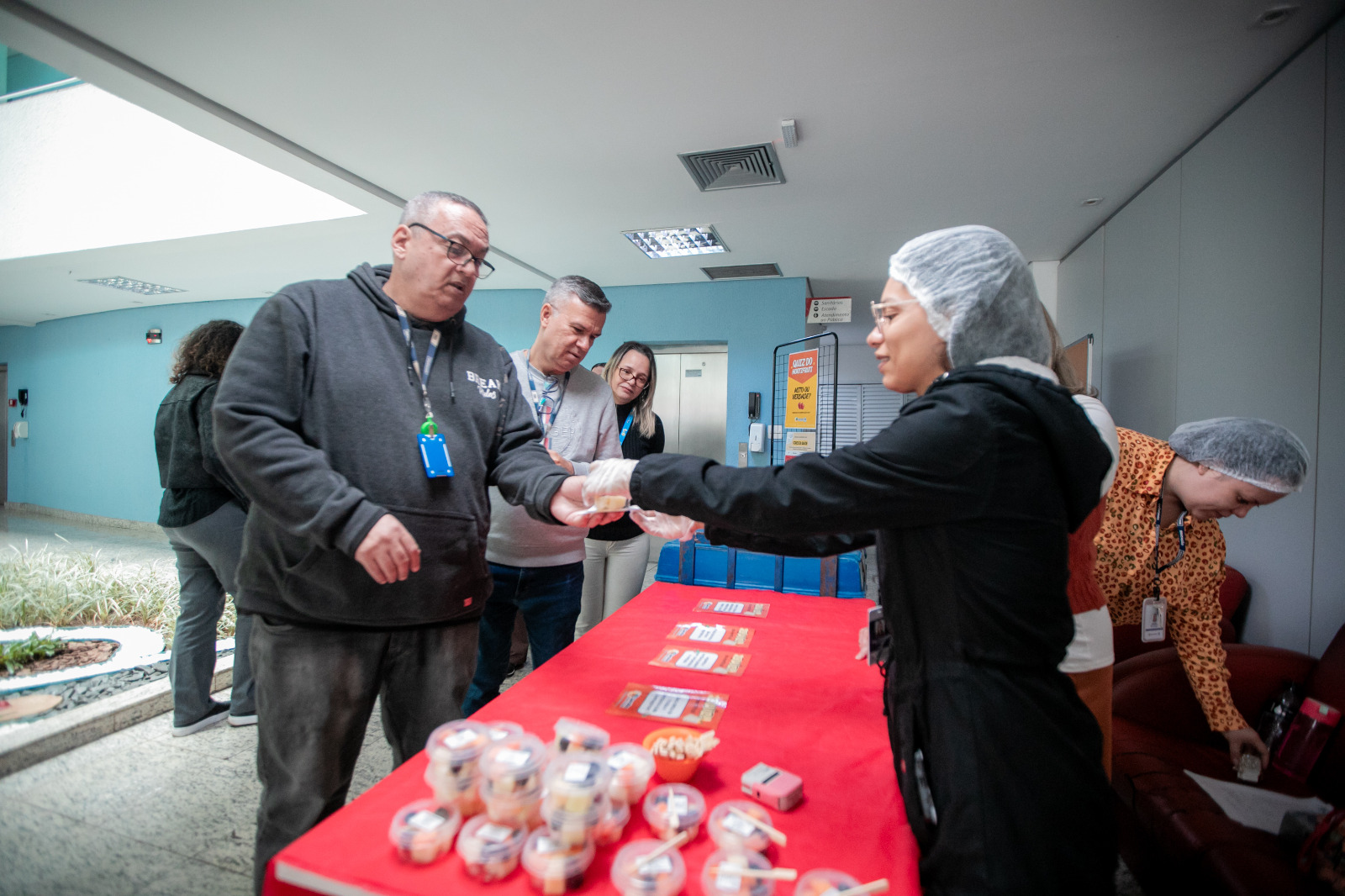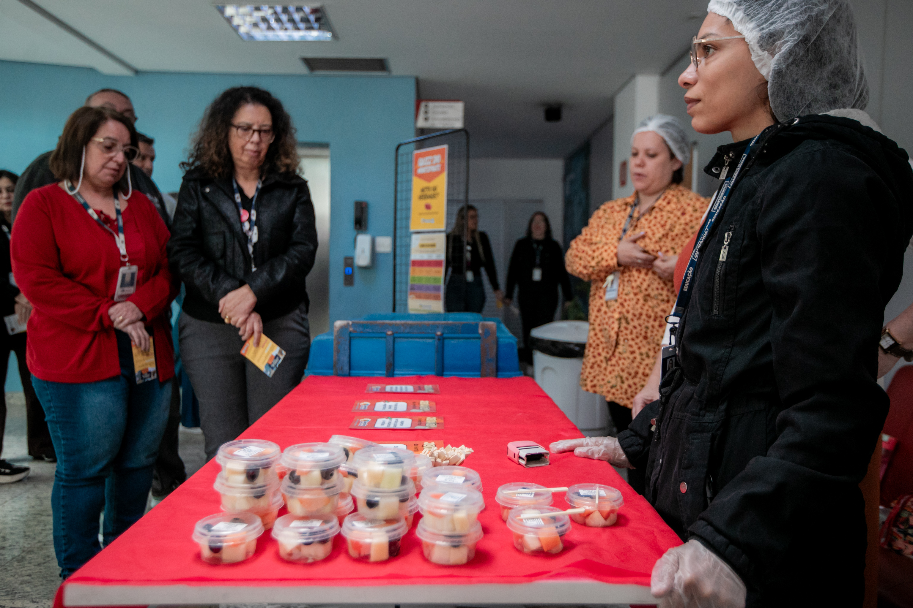 Munidos do passaporte da alimentação, os servidores receberam carimbos e brindes a cada atividade interativa cumprida: um quiz sobre alimentos, que promoveu conhecimentos de forma leve e descontraída, uma atividade sensorial olfativa, que explorou aromas e propriedades dos alimentos, e um desafio voltado à reflexão e à prática de pequenas mudanças no cotidiano.