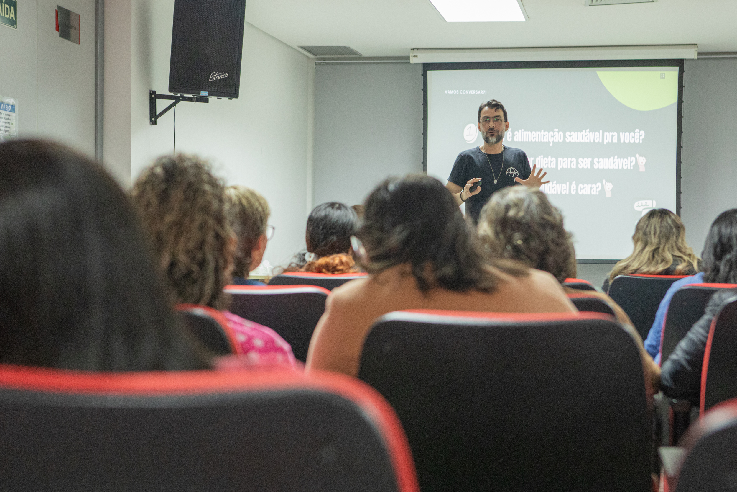 Muito mais que desmistificar crenças sobre alimentação e oferecer orientações práticas, a palestra abordou temas essenciais, como os alimentos “coringas” para se ter em casa, deu dicas de economia e organização alimentar, tratou da composição de refeições equilibradas com alimentos simples do dia a dia, ofereceu boas opções ao comer fora e sugestões de lanches práticos, além de orientações sobre como direcionar o algoritmo das redes sociais para favorecer hábitos saudáveis.