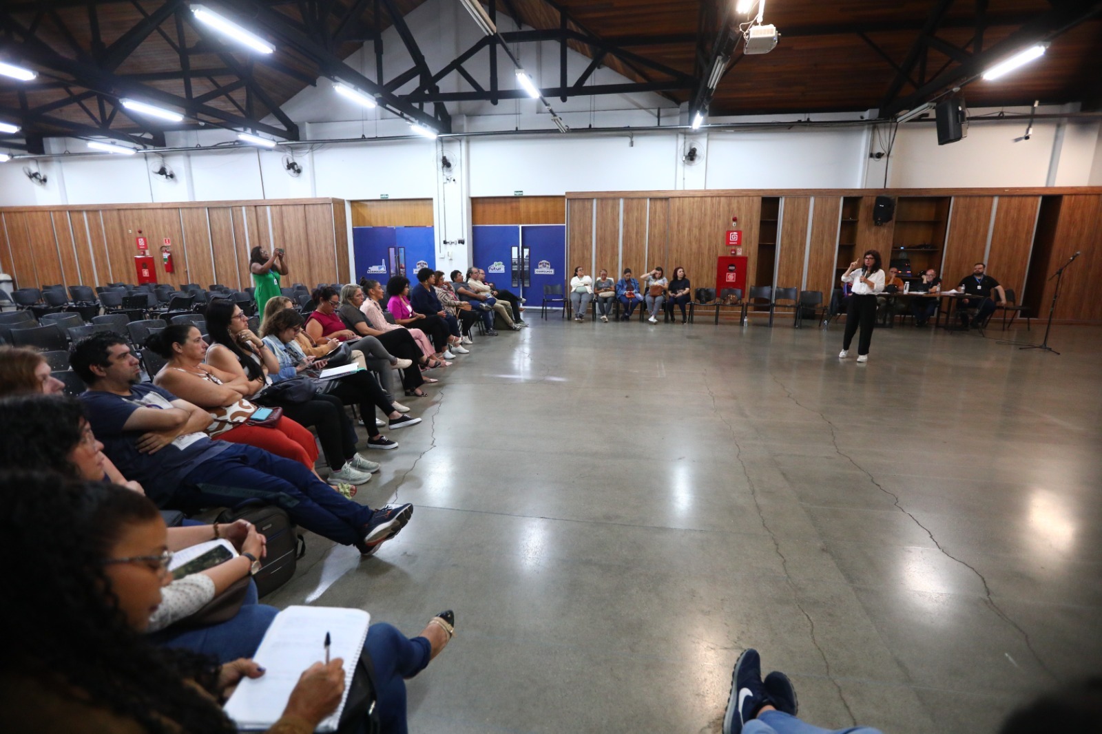 Diretores e professores de artes das escolas da rede municipal de educação reuniram-se no Teatro Adamastor na manhã desta terça-feira (4) para a abertura do Artes em Conexão 2025, com o tema “As artes e a diversidade cultural na educação: um olhar para as relações étnico-raciais”. A iniciativa da Secretaria de Educação (SE), que tem entre seus objetivos promover a relação do sujeito com os outros e incentivar a criatividade do educando, integra a Agenda Guarulhos Contra o Racismo e marca celebrações do Novembro Negro Guarulhos 2025.