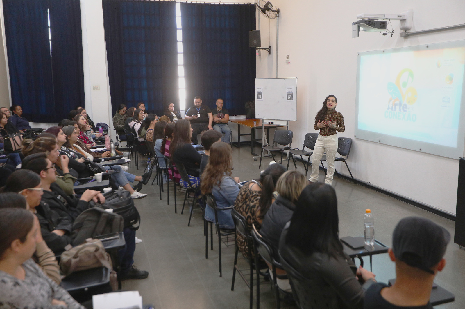Em continuidade às ações do Artes em Conexão e Novembro Negro 2025, a Secretaria de Educação promoveu na manhã desta terça-feira (11) encontro formativo com professores da educação infantil e ensino fundamental das escolas da rede municipal, no Centro Municipal de Educação Adamastor. O encontro é parte de uma série de atividades relacionadas ao tema “As artes e a diversidade cultural na educação: um olhar para as relações étnico-raciais".
