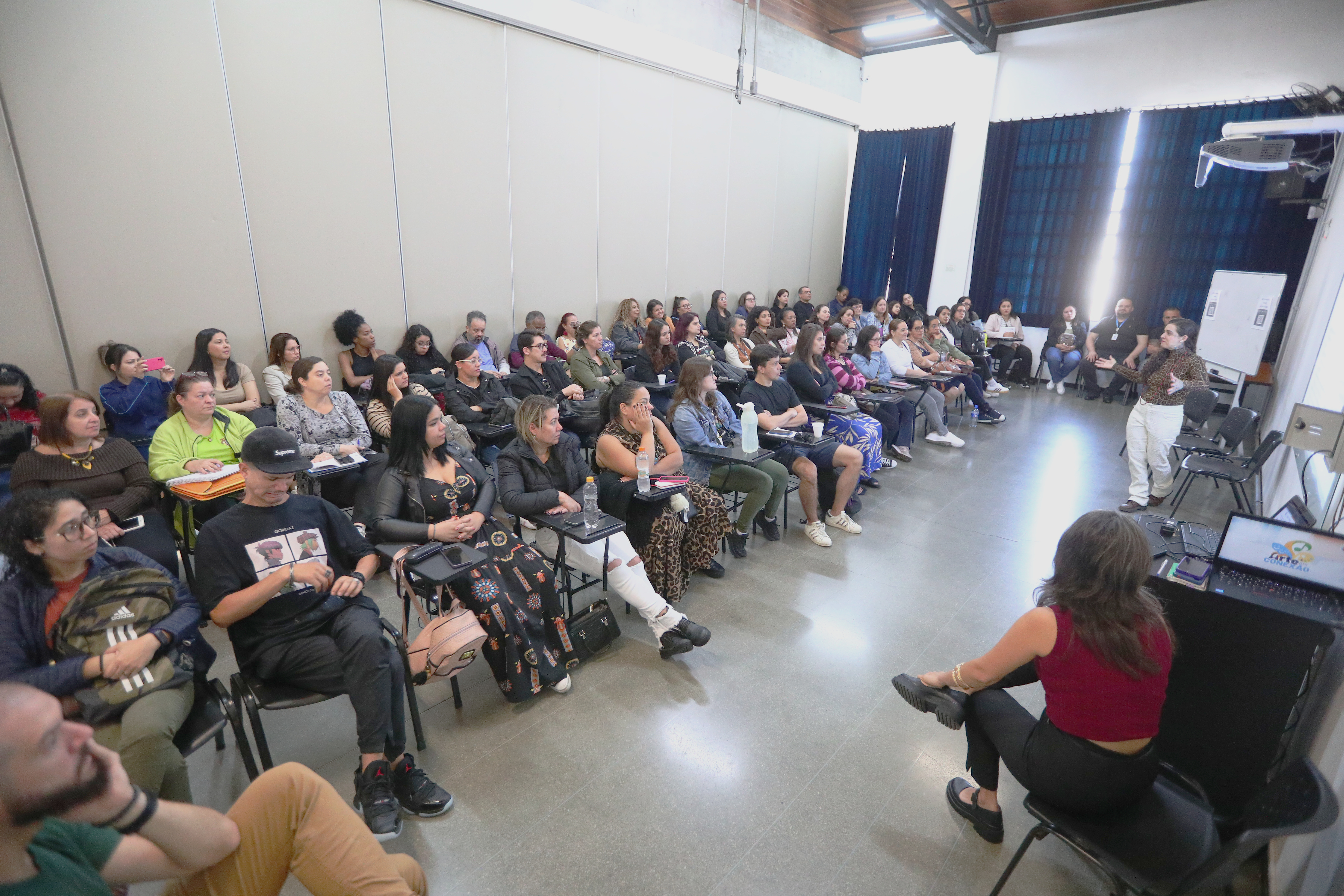 Em continuidade às ações do Artes em Conexão e Novembro Negro 2025, a Secretaria de Educação promoveu na manhã desta terça-feira (11) encontro formativo com professores da educação infantil e ensino fundamental das escolas da rede municipal, no Centro Municipal de Educação Adamastor. O encontro é parte de uma série de atividades relacionadas ao tema “As artes e a diversidade cultural na educação: um olhar para as relações étnico-raciais".