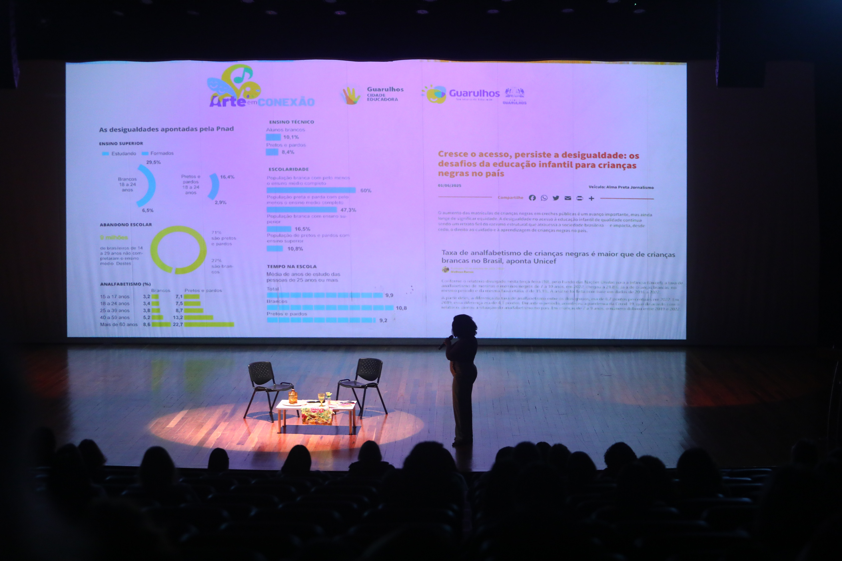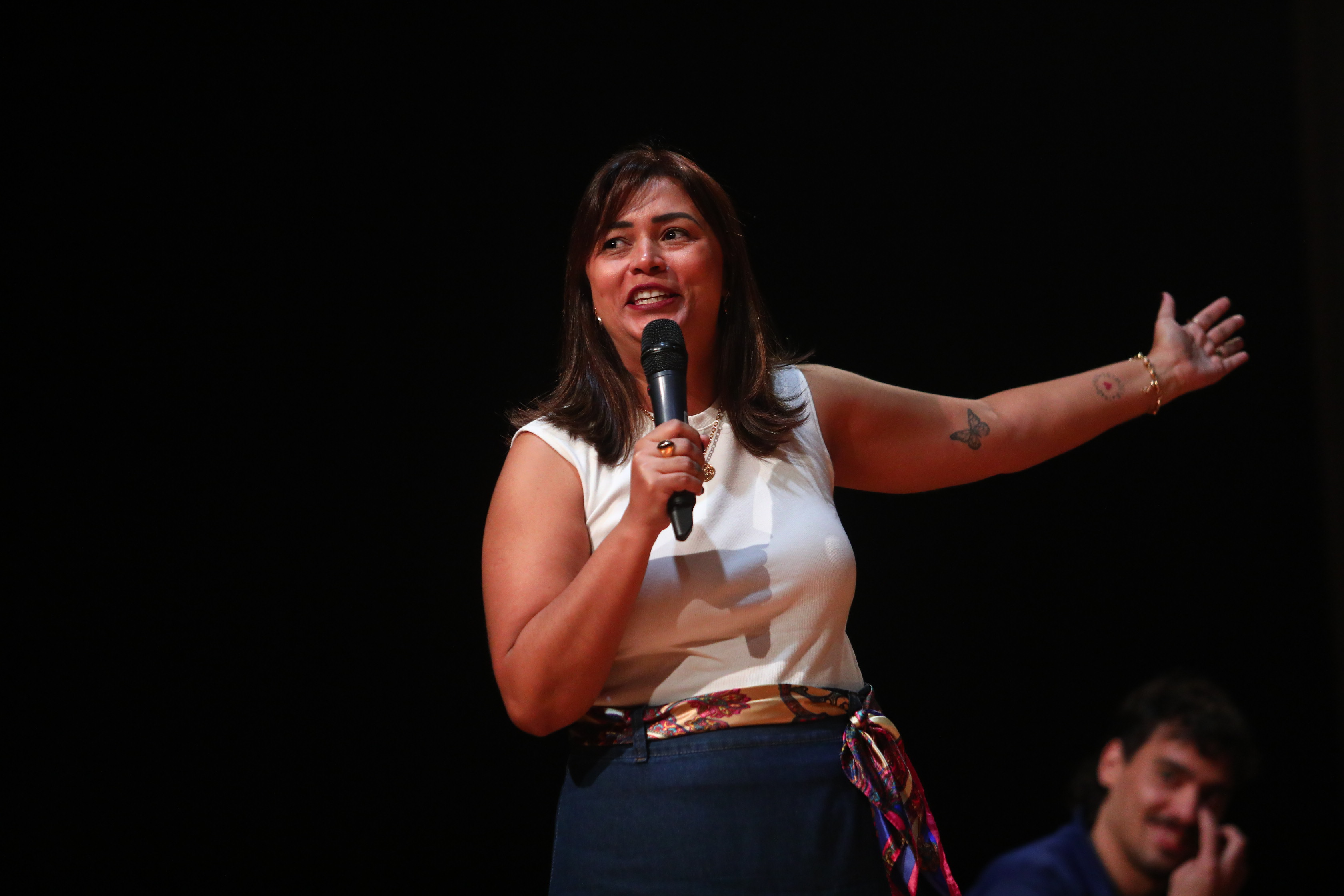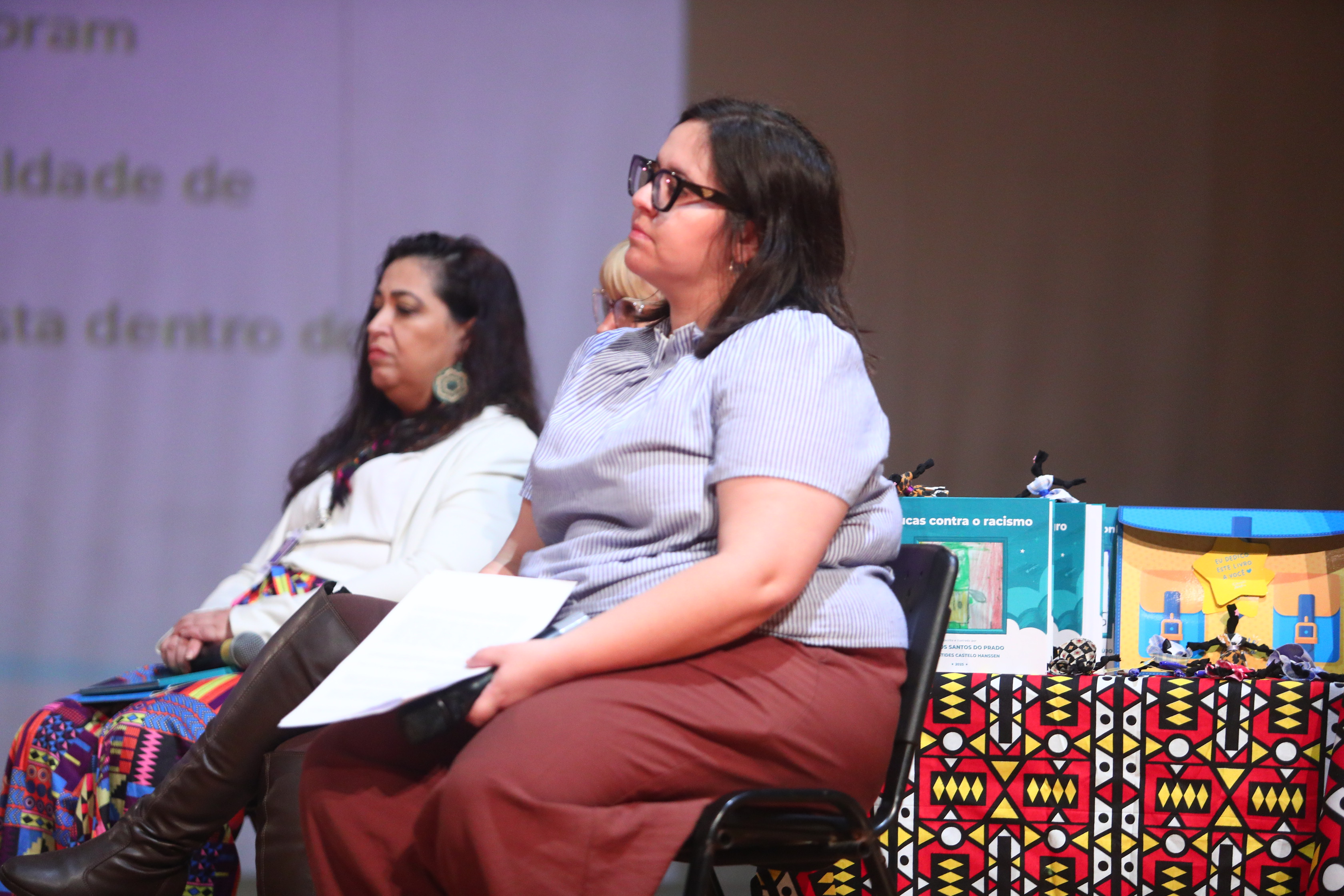 Carla Francisco, doutoranda no programa de pós-graduação em Educação da Universidade Federal de São Paulo (Unifesp) e coordenadoria pedagógica na rede municipal de São Paulo trouxe experiências do ambiente escolar sobre a importância da educação antirracista. Além disso, Carla também abordou a importância da literatura como ferramenta na alfabetização e no letramento nas aprendizagens das crianças, envolvendo as relações étnicos raciais como leitura.