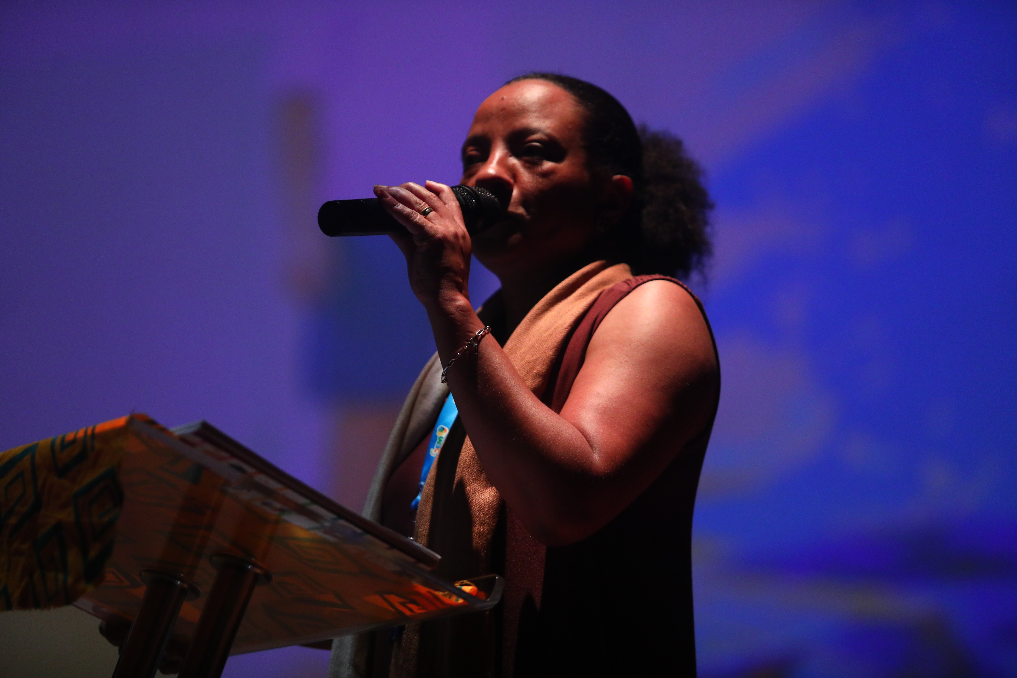 Professora da rede deste 2013, Talita dos Anjos falou do maracatu como lugar de movimento e sua importância de resistência no contexto escolar, que por meio de uma educação antirracista encontra lugar de presença, arte e ancestralidade.