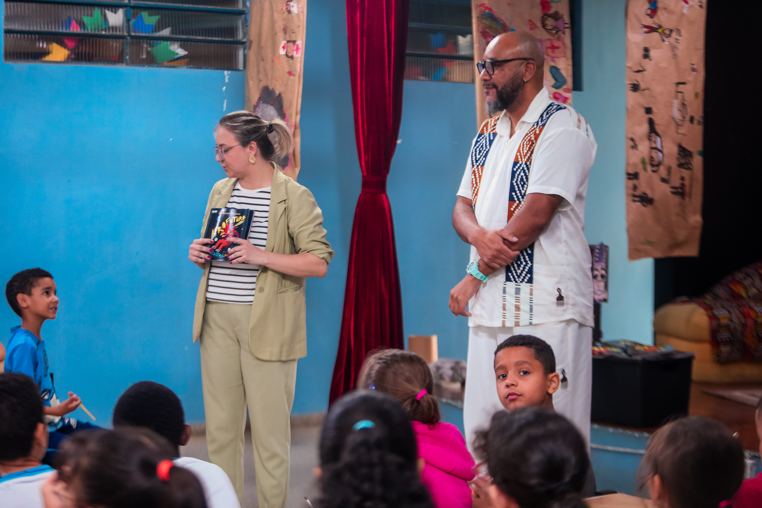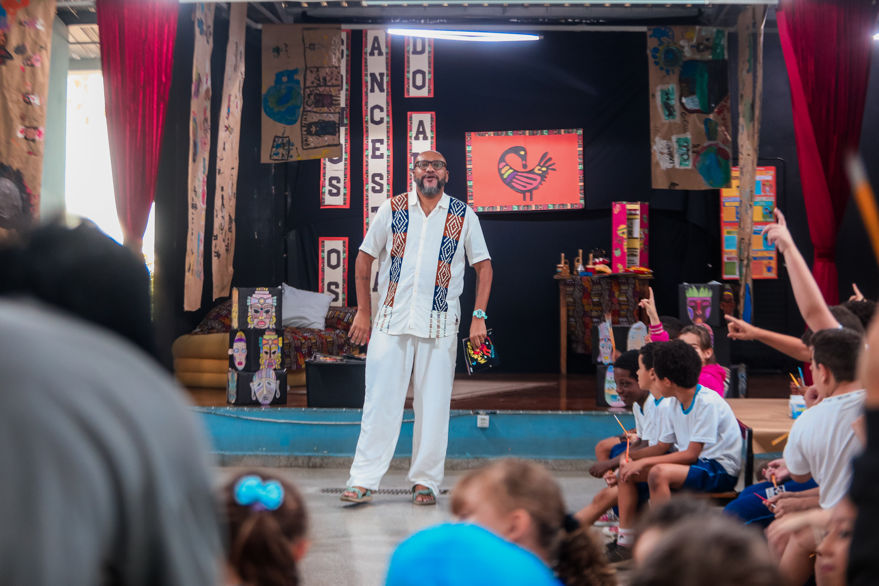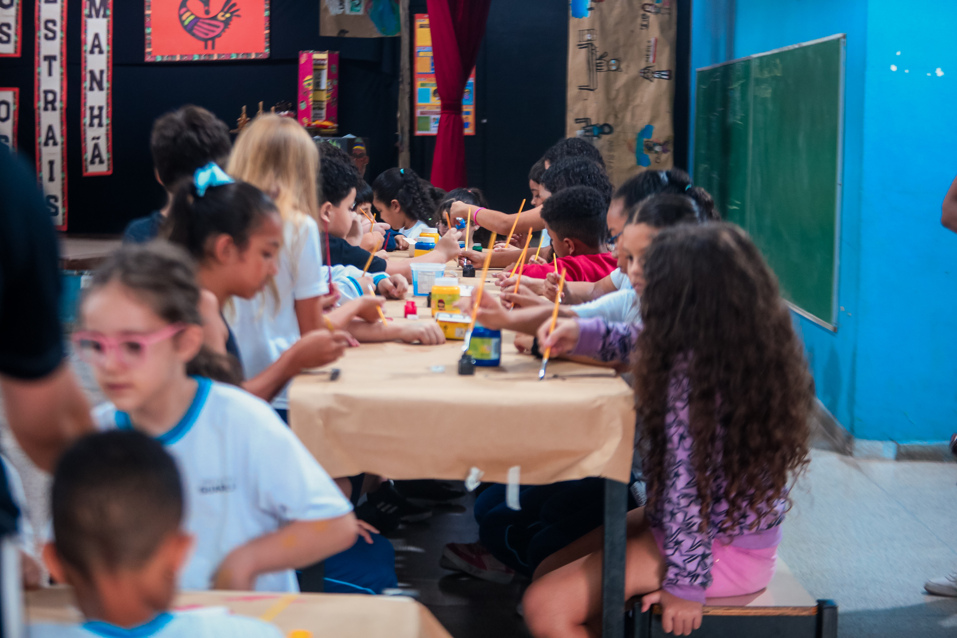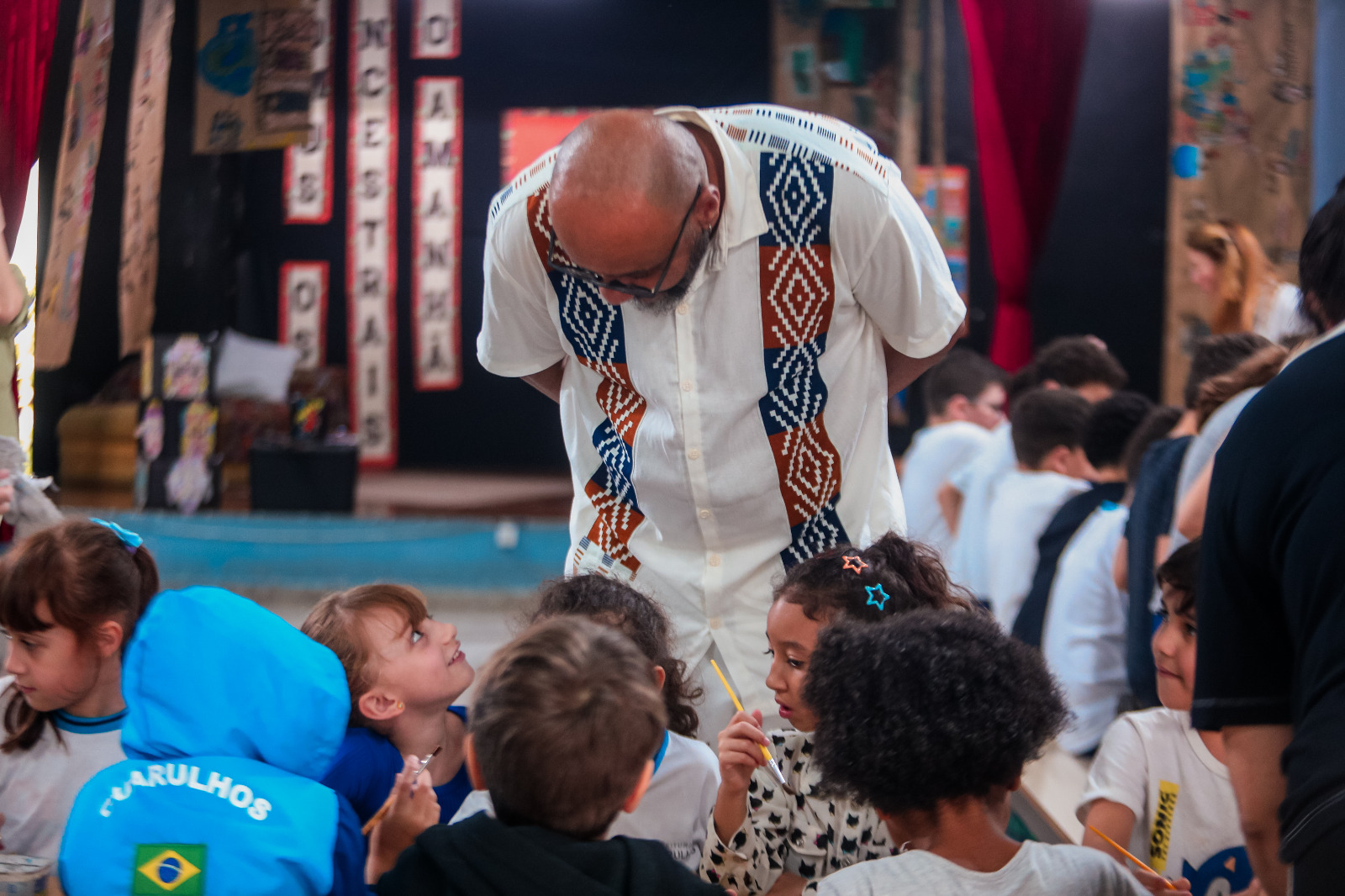 Além de apresentar conceitos da criação literária para as infâncias e refletir sobre o papel simbólico do livro ilustrado com os professores da unidade, o escritor também ofereceu aos alunos momentos de criação livre, em que falou sobre o processo criativo e a importância de sonhar, e os orientou a criar desenhos a partir do tema: o que quero ser quando crescer?