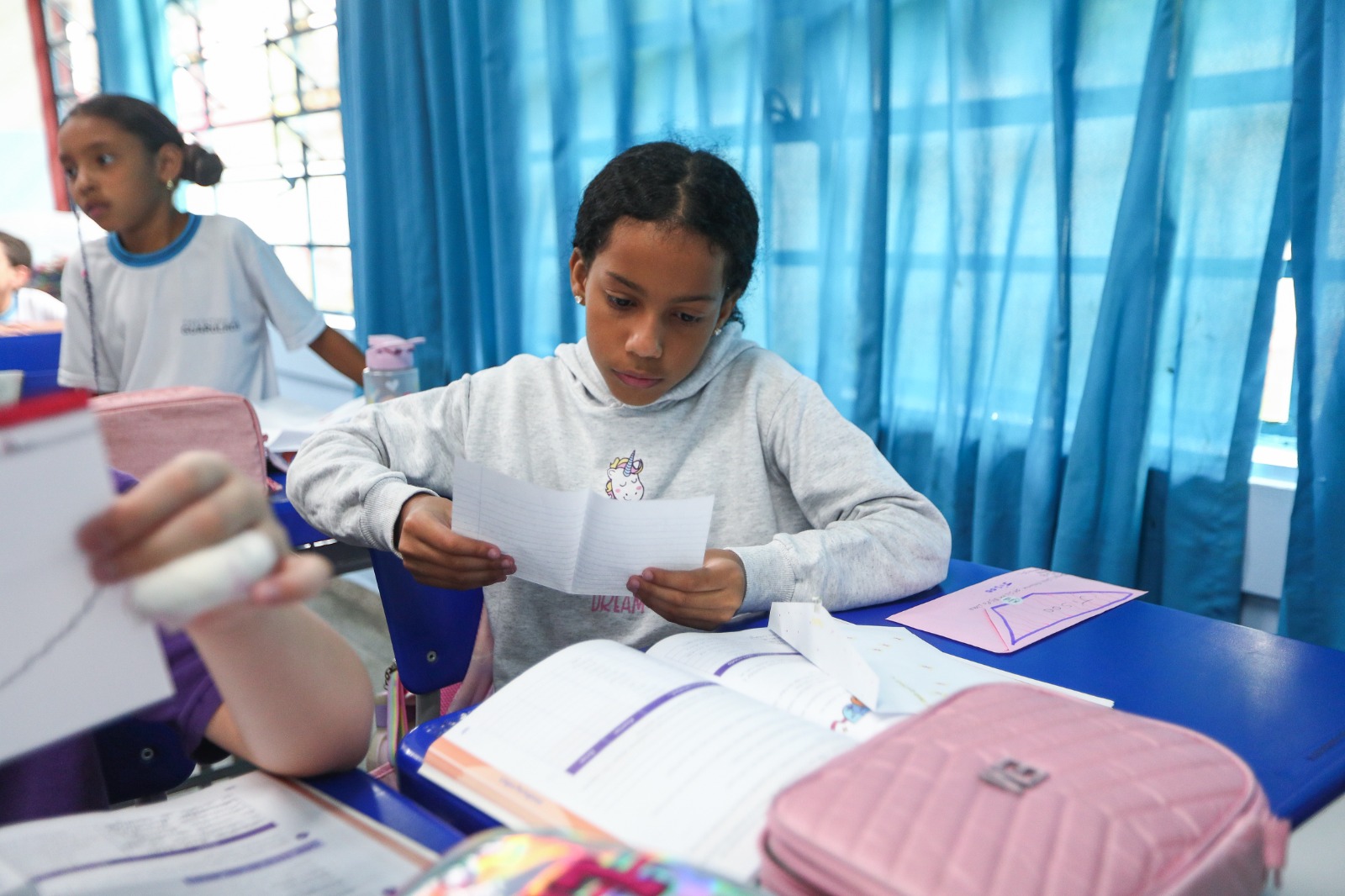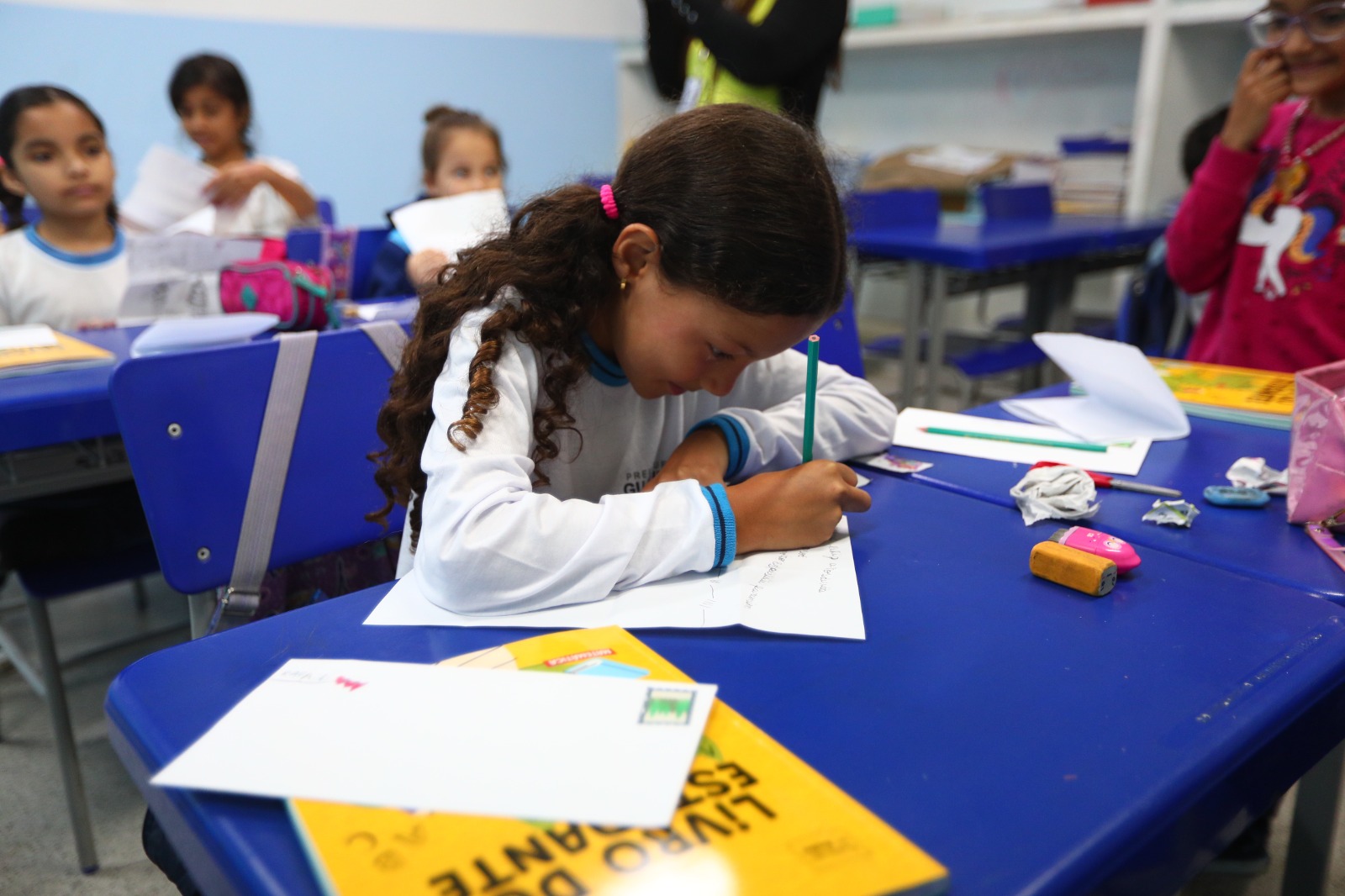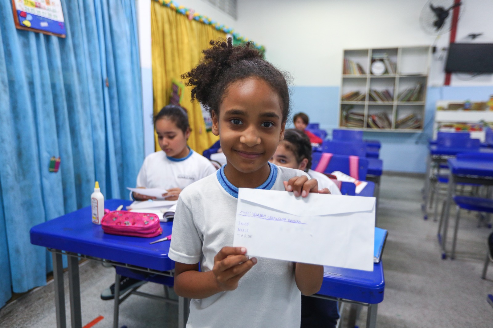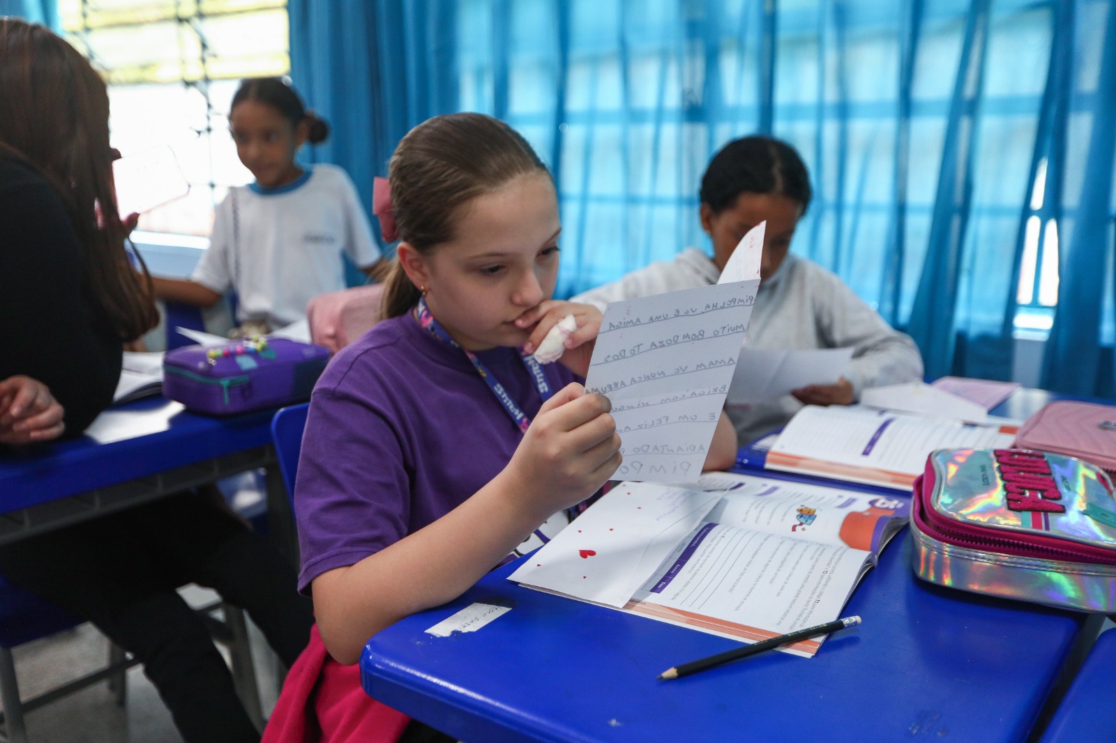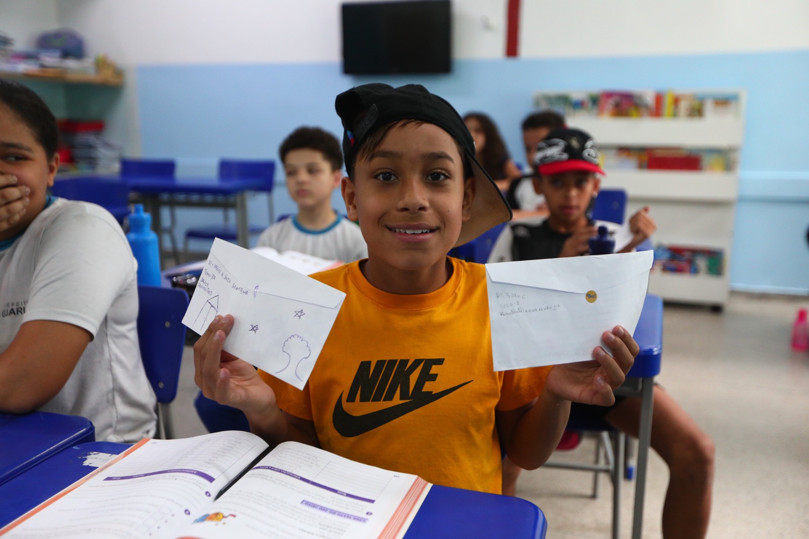 Alunos da EPG Marfilha Belloti Gonçalves, em Cumbica, aguardavam ansiosos para receber e ler as correspondências trocadas entre os colegas, professores e funcionários da escola, por meio do projeto Cartas, desenvolvido no Centro de Incentivo à Leitura da unidade. A iniciativa tem por objetivo estreitar laços, incentivar a amizade, estimular a comunicação, a produção textual e favorecer a compreensão da diversidade cultural, fomentando a leitura e a escrita.