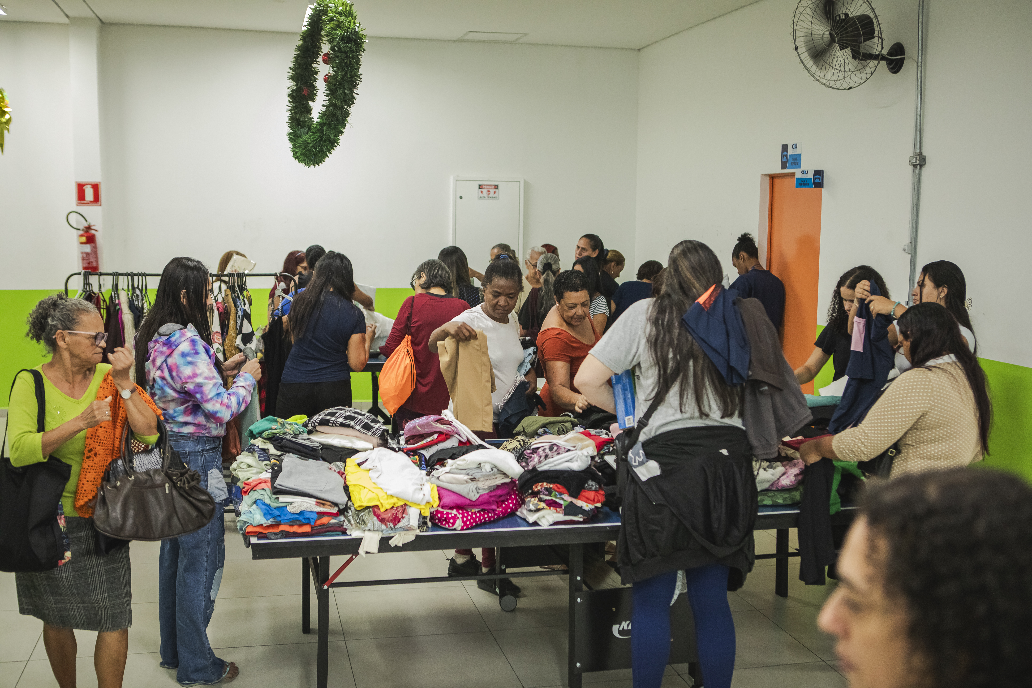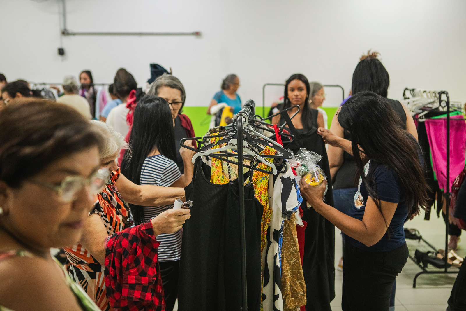 Já as amigas Cláudia Meyer, 36 anos, Tatiana Souza, 46, Aline Gomes, 31, alunas de vários cursos oferecidos pelo CEU Ponte Alta, decidiram garimpar juntas itens no bazar. Elas acharam a iniciativa maravilhosa, destacando a qualidade dos itens e a importância da troca e da convivência, ressaltando a utilidade dos itens e a oportunidade de doar para quem precisa.