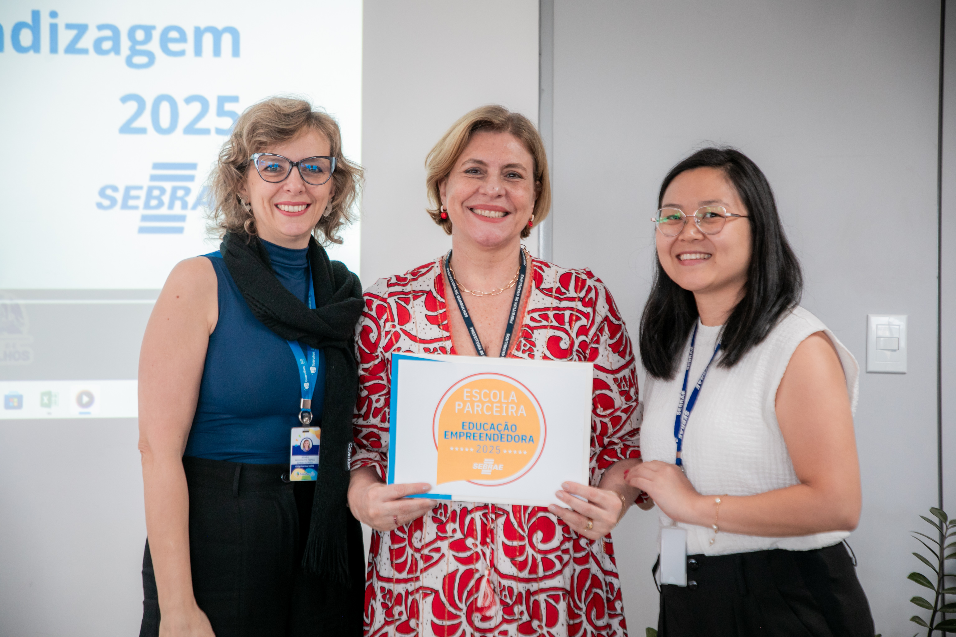Além da participação da gestora de Educação Empreendedora do Sebrae Guarulhos, Priscila Ota, a entrega do selo contou com as presenças da subsecretária de Educação, Minéa Fratelli, e do secretário de Educação, Silvio Rodrigues, que comemorou a valiosa parceria com o Sebrae, essencial para a viabilização do projeto nas escolas da rede municipal.