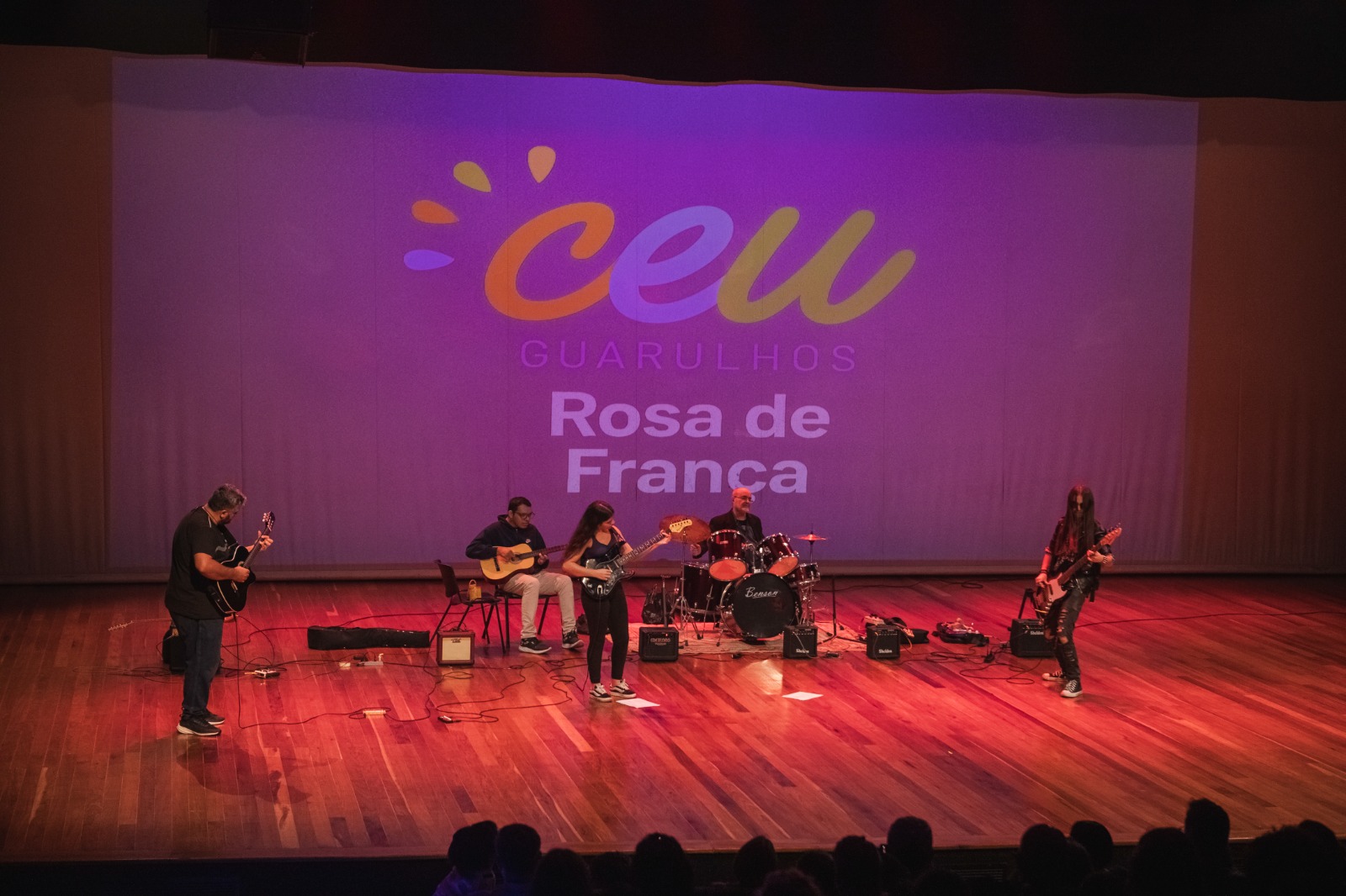 O público assistiu os alunos dos cursos de violão, ukulelê, guitarra, bateria e a banda experimental, que demonstraram toda a dedicação e técnica desenvolvida ao longo do ano, resultado do trabalho de excelência dos professores de música da unidade.
