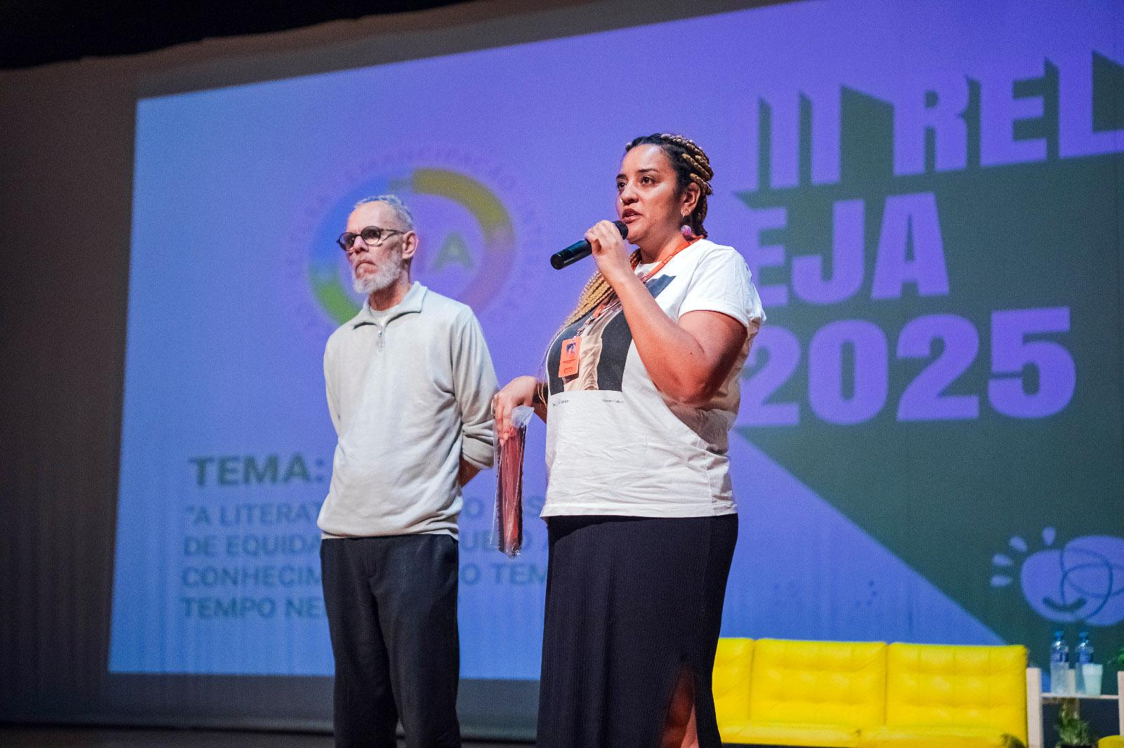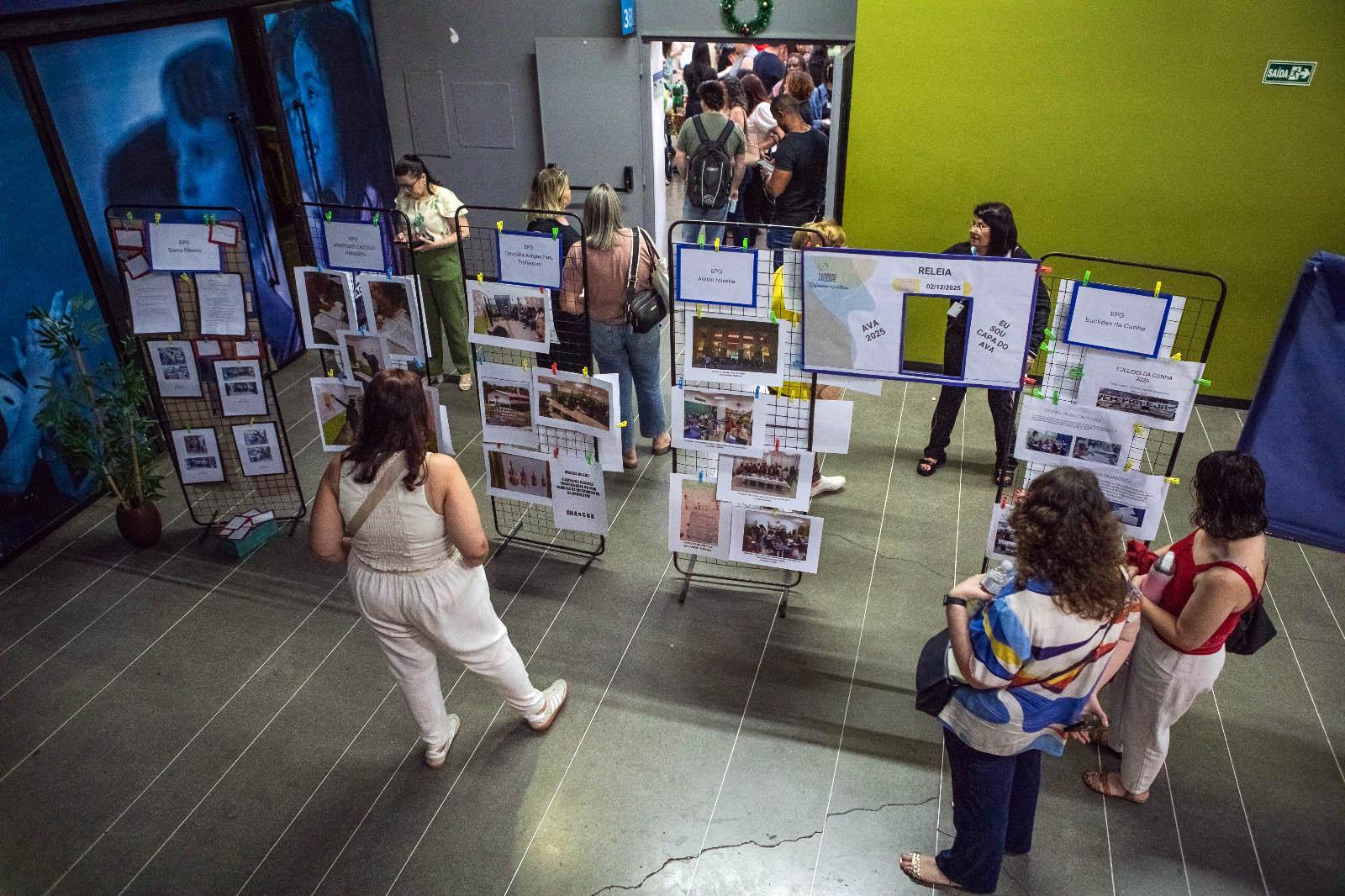 Professores e educandos da modalidade Educação de Jovens e Adultos (EJA) participaram na noite de terça-feira (2) do Releia EJA 2025, no Teatro Adamastor, reunião de encerramento do processo formativo do programa LEIA, que reflete o trabalho realizado durante todo o ano. A partir do tema “A leitura como instrumento de equidade: porque o acesso ao conhecimento não tem tempo e nem idade”, foram apresentadas mostras culturais e exposição de trabalhos dos educandos.