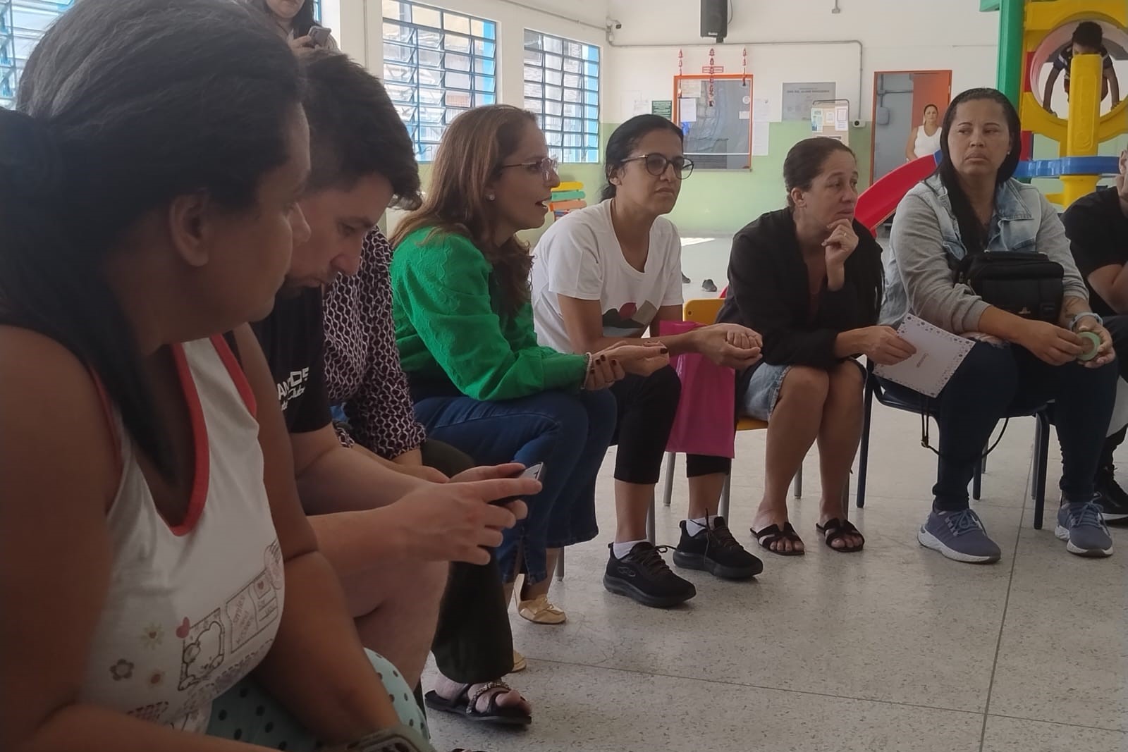 O encontro foi conduzido pela professora Elizabeth Regina Santos Dias, responsável pelo polo de atendimento na unidade, que acolheu os participantes com uma dinâmica. Para a educadora, a proposta de reunir as famílias partiu da necessidade de esclarecer o funcionamento do AEE, as etapas do trabalho pedagógico, os objetivos do atendimento e a importância da participação ativa das famílias.