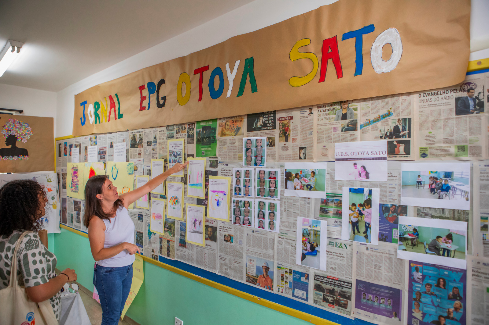 Com sua turma de estágio I, a professora Adriana Lipi criou o Jornal da EPG Otoya Sato, que trouxe diversas possibilidades de trabalho com diferentes gêneros textuais. A educadora explicou que as crianças tiveram muitas ideias, como criar notícias sobre brincadeiras e uma feira livre. Temas como diversidade e respeito às diferenças também foram trabalhados através de textos jornalísticos, mostrando a riqueza dessa abordagem.