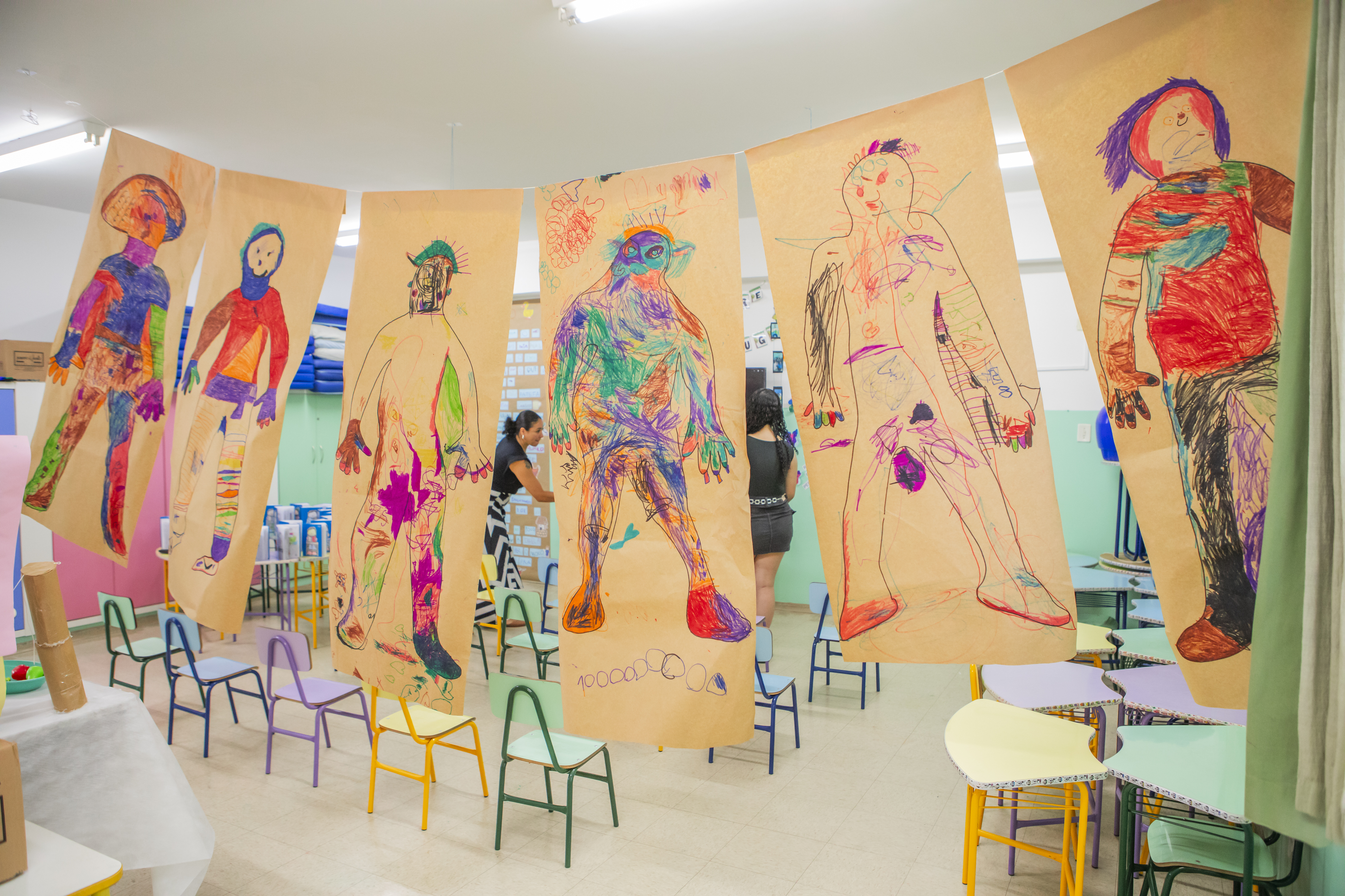 Como resultado do projeto, os visitantes experenciaram junto às crianças uma explosão de cores, texturas e narrativas visuais que afirmam a potência do fazer artístico na educação infantil.