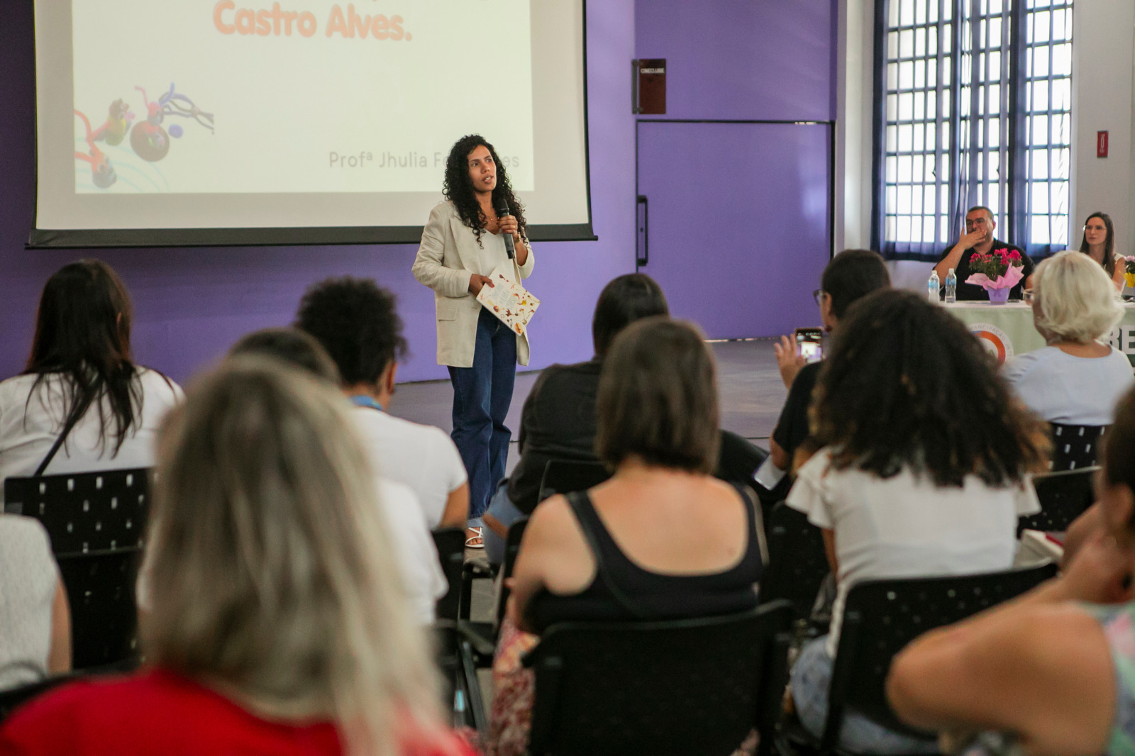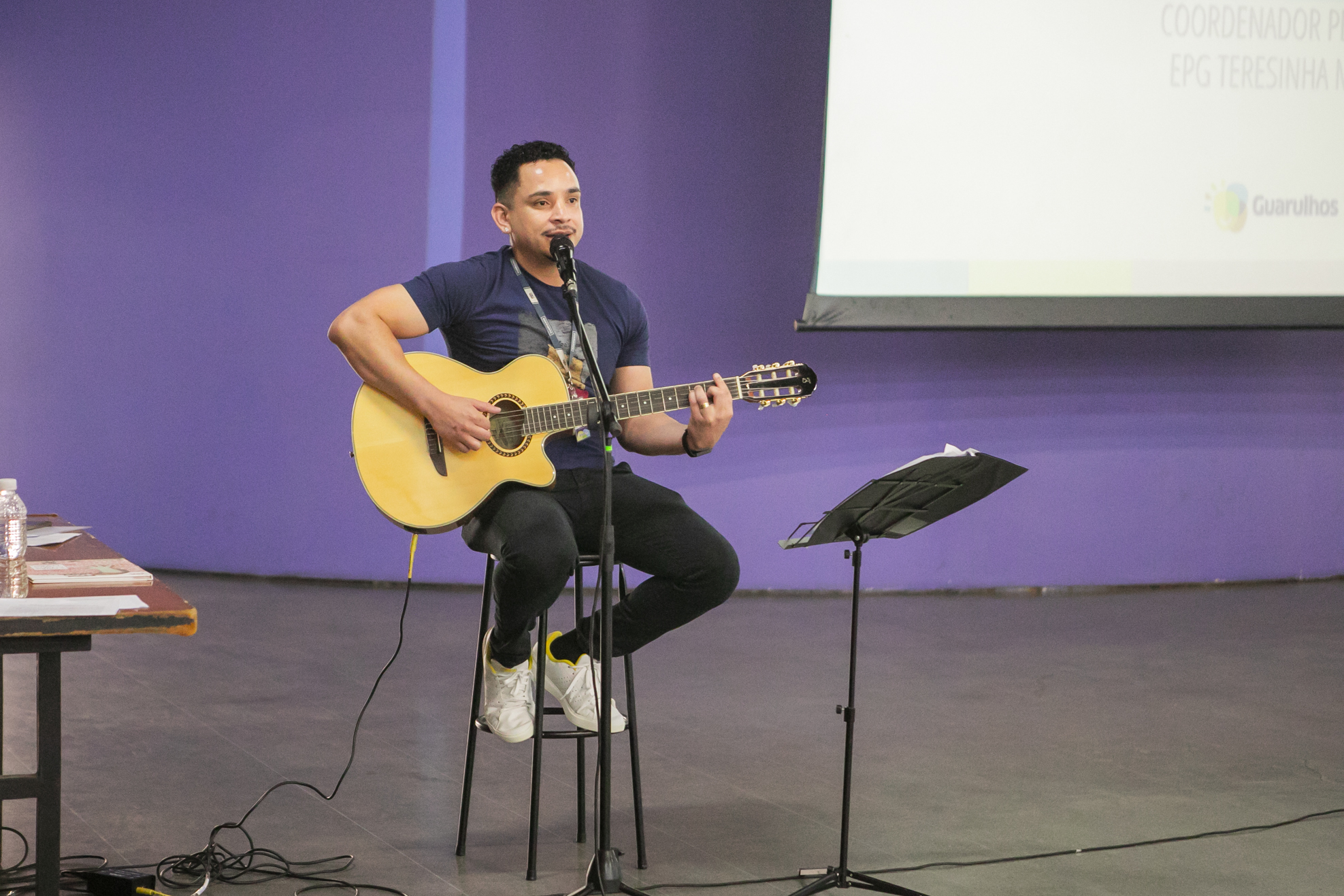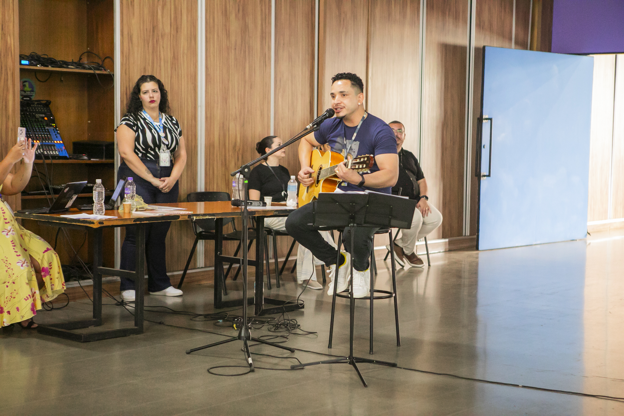 Além da apresentação musical com voz e violão do coordenador pedagógico João Paulo Araújo (EPG Teresinha Mian Alves), os participantes do encontro tiveram ainda a oportunidade de interagir com profissionais da rede municipal que se dedicaram a projetos e práticas relacionadas a leituras literárias como tema gerador: a coordenadora pedagógica Priscila Aranda (EPG Monteiro Lobato) e os professores alfabetizadores Cristiano Geraldo de Oliveira (EPG Celso Furtado), Jhulia Souza (EPG Castro Alves) e Fabiana Francisca Casalli (EPG Izolina Alves Davi).