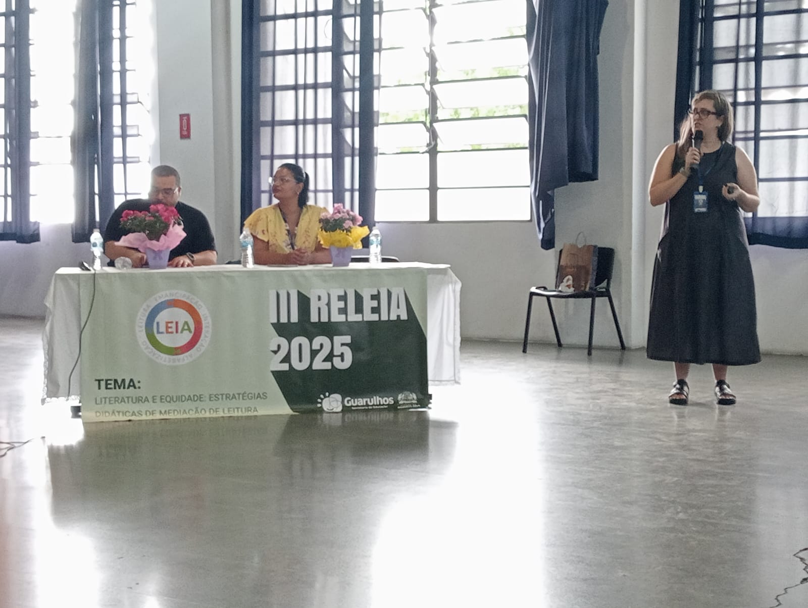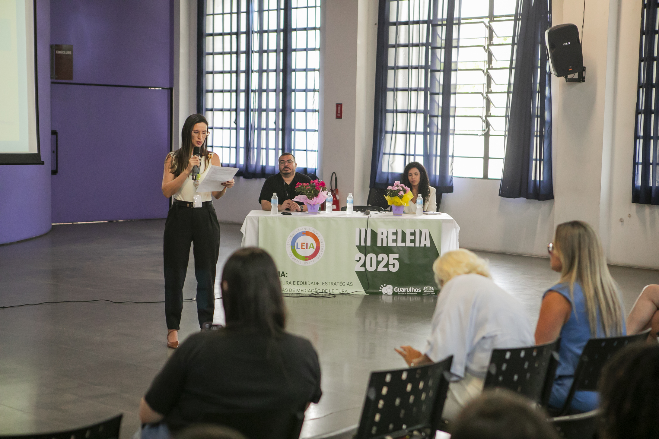 Mais de 800 professores alfabetizadores que atuam nos anos iniciais do ensino fundamental e coordenadores pedagógicos das escolas da rede municipal participaram na última segunda (15) e terça-feira (16) de encontro de encerramento das atividades formativas do Programa LEIA 2025. O evento, que aconteceu no Salão de Artes do CME Adamastor, abordou o tema “Literatura e equidade: estratégias didáticas de mediação de leitura”, caracterizando-se como espaço de amplo diálogo ao trazer profissionais da educação para fortalecer as discussões.