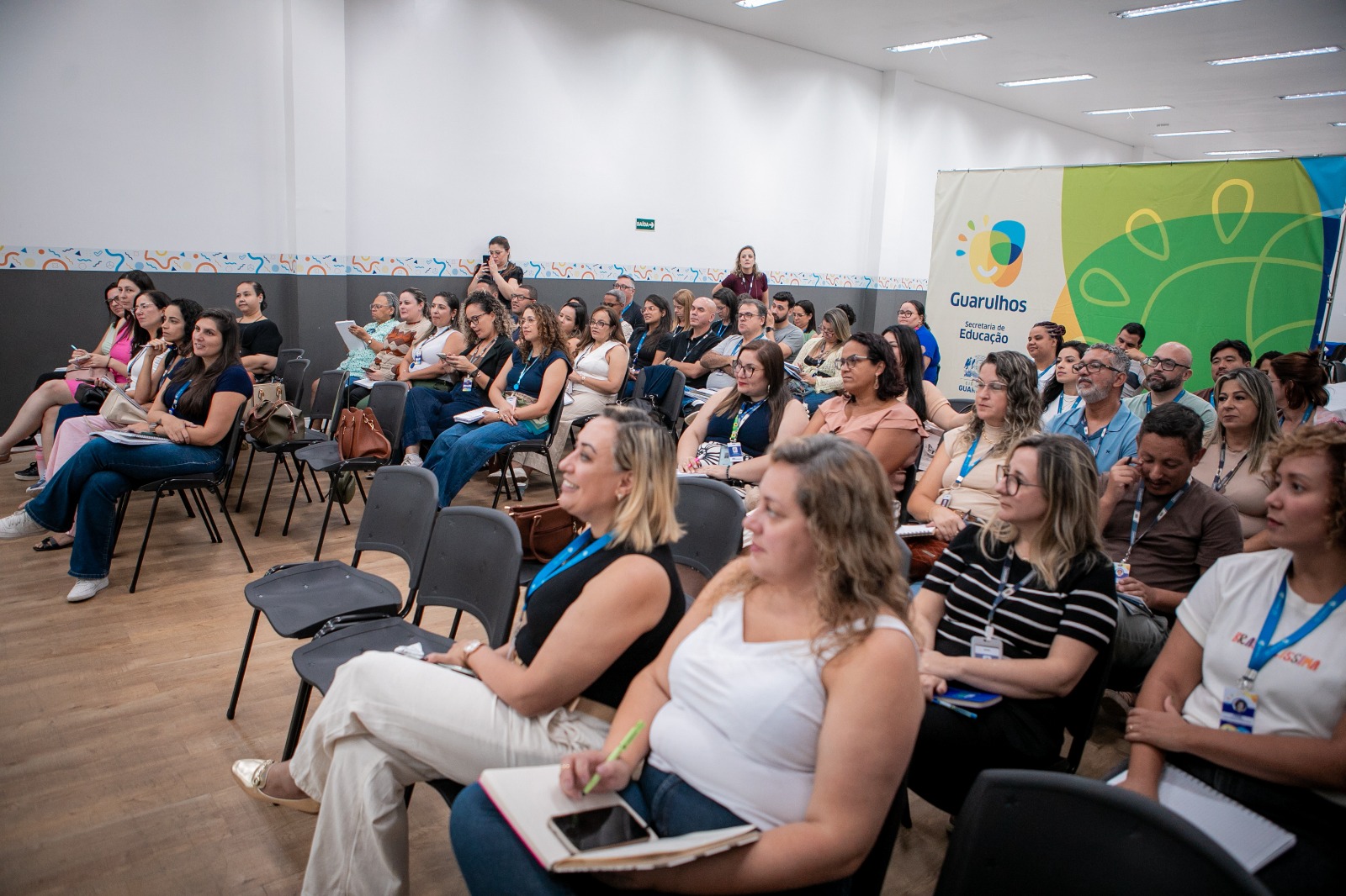 Nesta terça-feira (3), coordenadores e gestores dos centros educacionais da Prefeitura de Guarulhos participaram de reunião formativa no anfiteatro do CEU Parque São Miguel, encontro alinhado às novas normativas e diretrizes pedagógicas para 2026. A formação contou com a participação da prof.ª dr.ª Maria Regina Passos, que pontuou o modo como as atividades em tempo integral se articulam com a estrutura e organização das unidades escolares integradas.