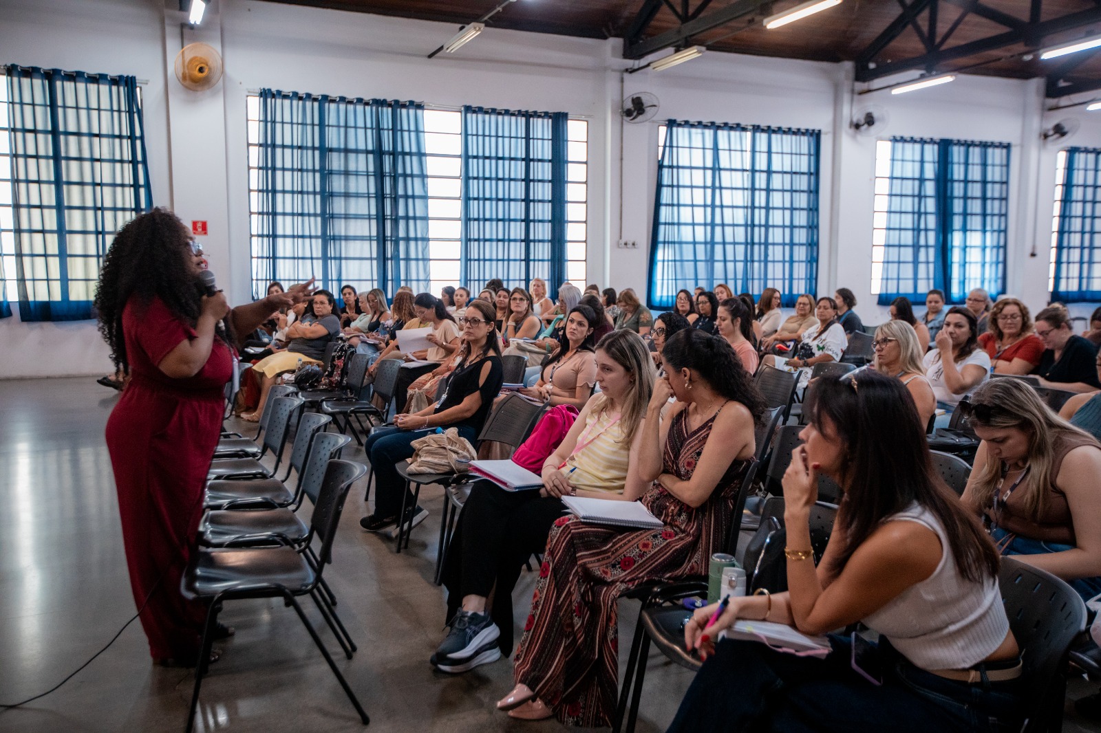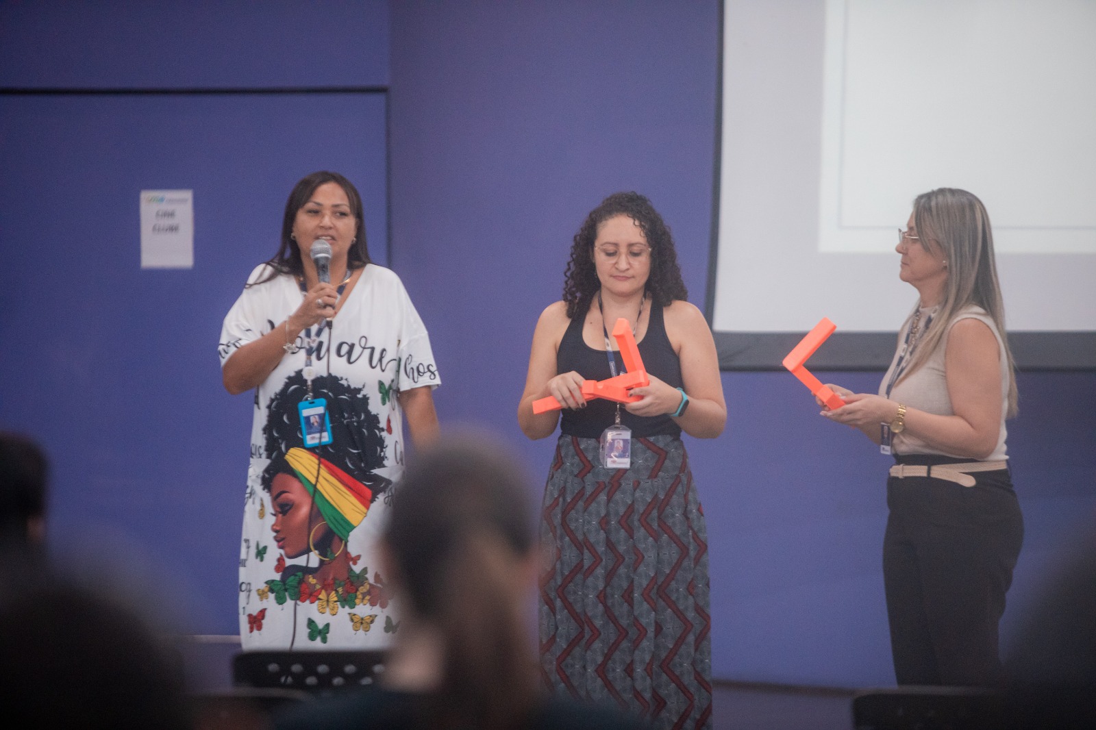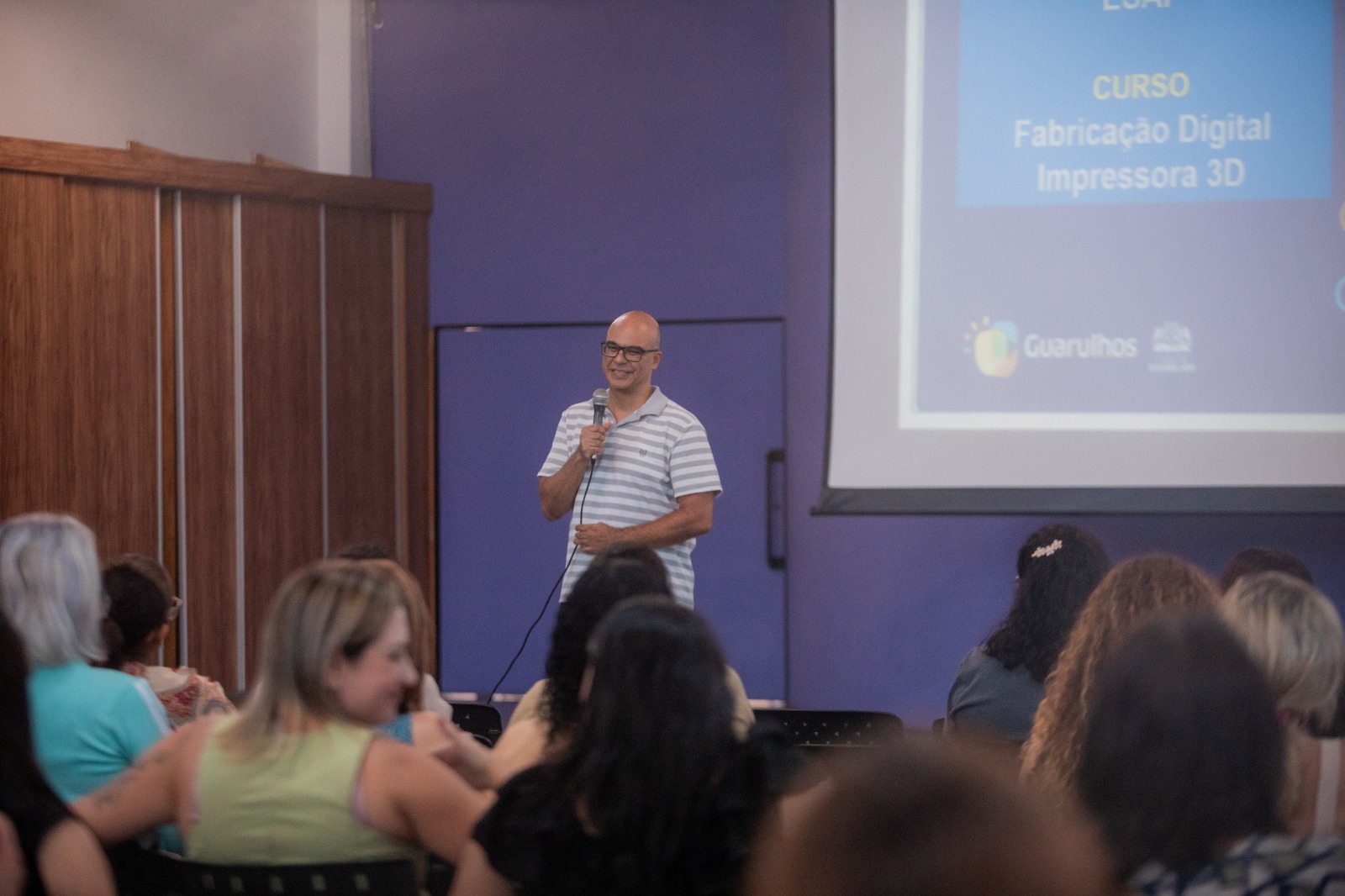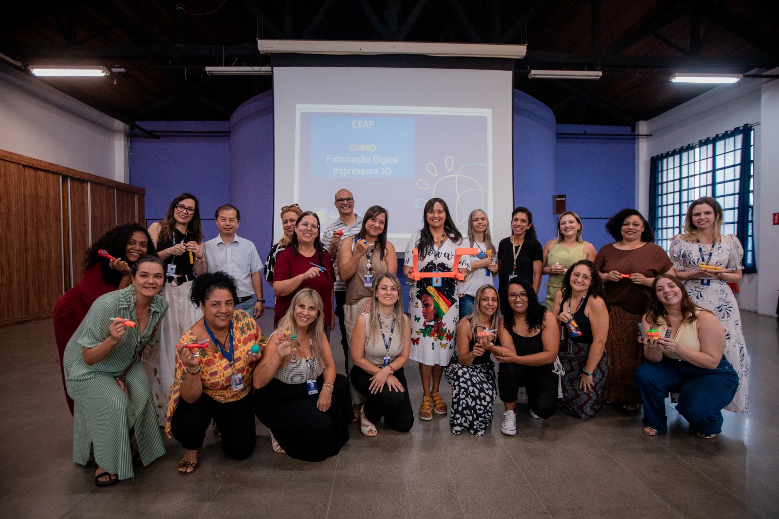 No período da tarde, a programação contou com uma roda de conversa com 27 professoras ingressantes do AEE. A atividade articulou teoria e prática, abordando conceitos gerais sobre fabricação digital, além de orientações sobre manipulação e controle da impressão 3D.