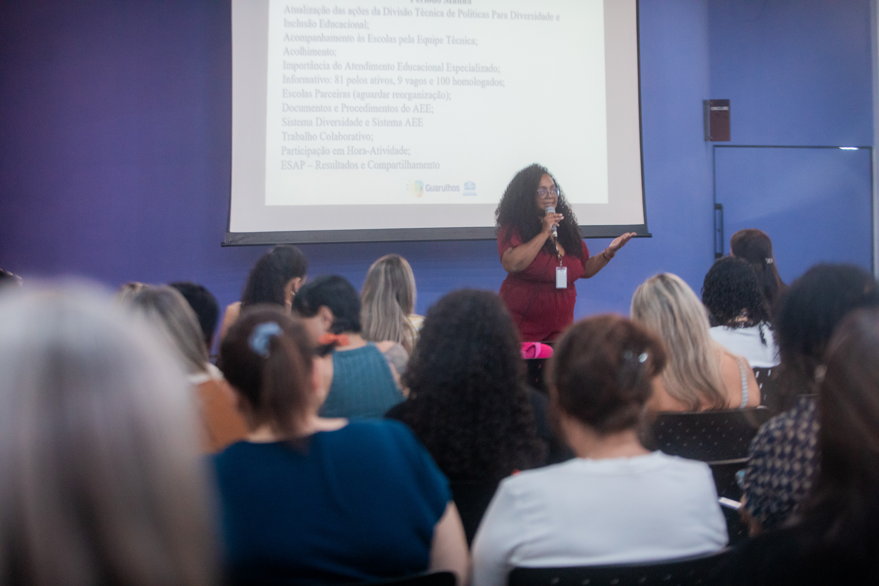 O encontro da Formação Continuada também abordou as portarias nº 34/2019-SE (AEE na Rede Municipal de Ensino) e nº 57/2019-SE (Professor Referência de Apoio à Inclusão), destacando a importância do AEE nas unidades escolares. Foram tratadas ainda ações formativas e informativas da rede, acompanhamento às escolas, acolhimento, trabalho colaborativo e participação em hora-atividade, além dos sistemas Diversidade e AEE. Os participantes também receberam um documento com orientações sobre documentação e procedimentos do AEE, complementando as diretrizes pedagógicas da Secretaria de Educação.