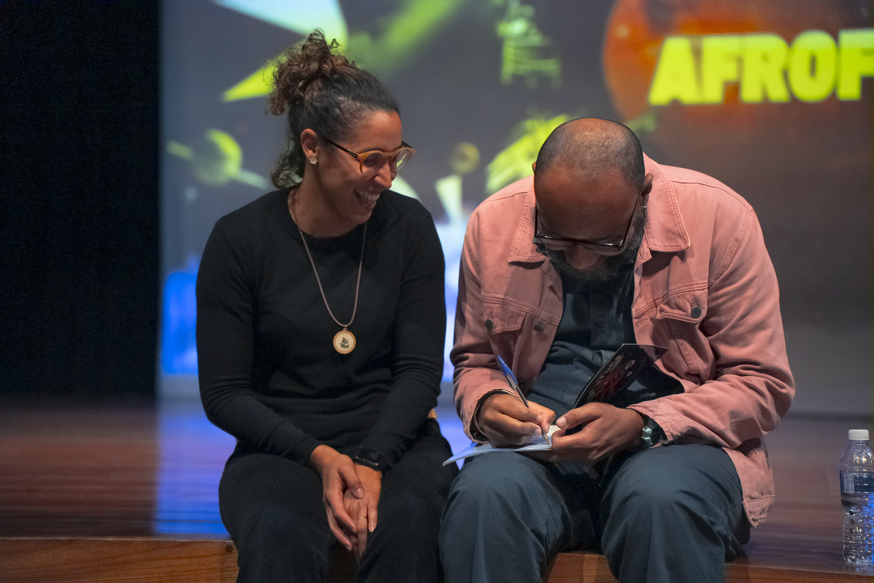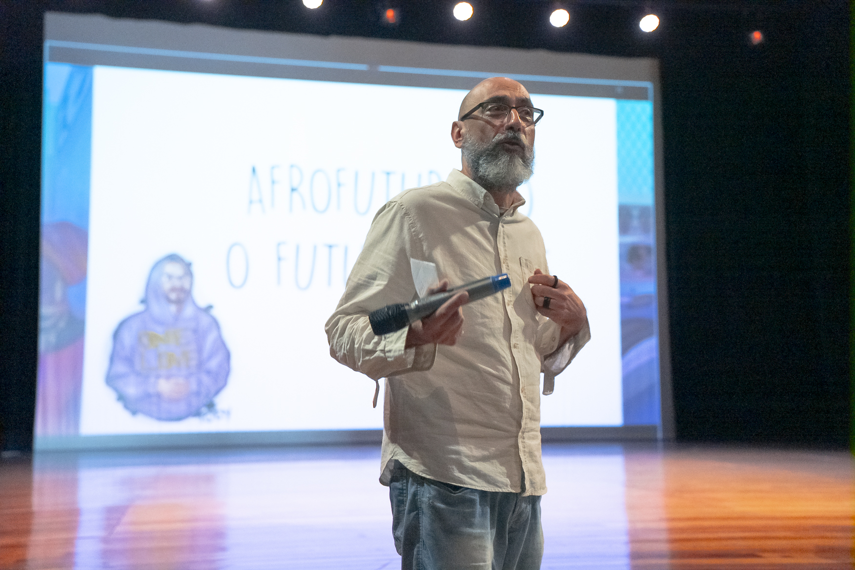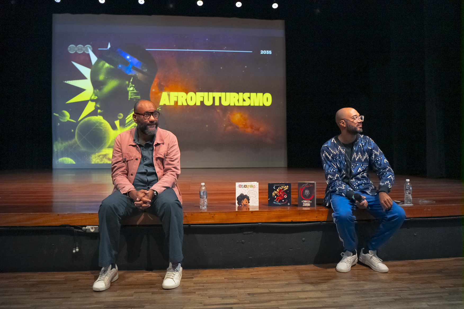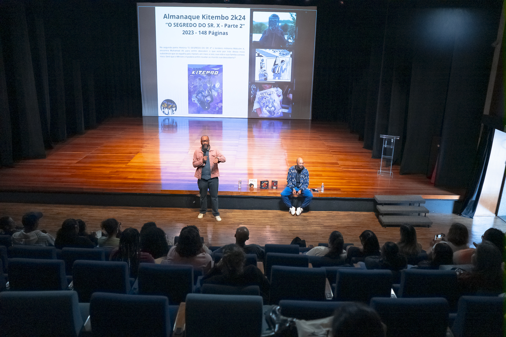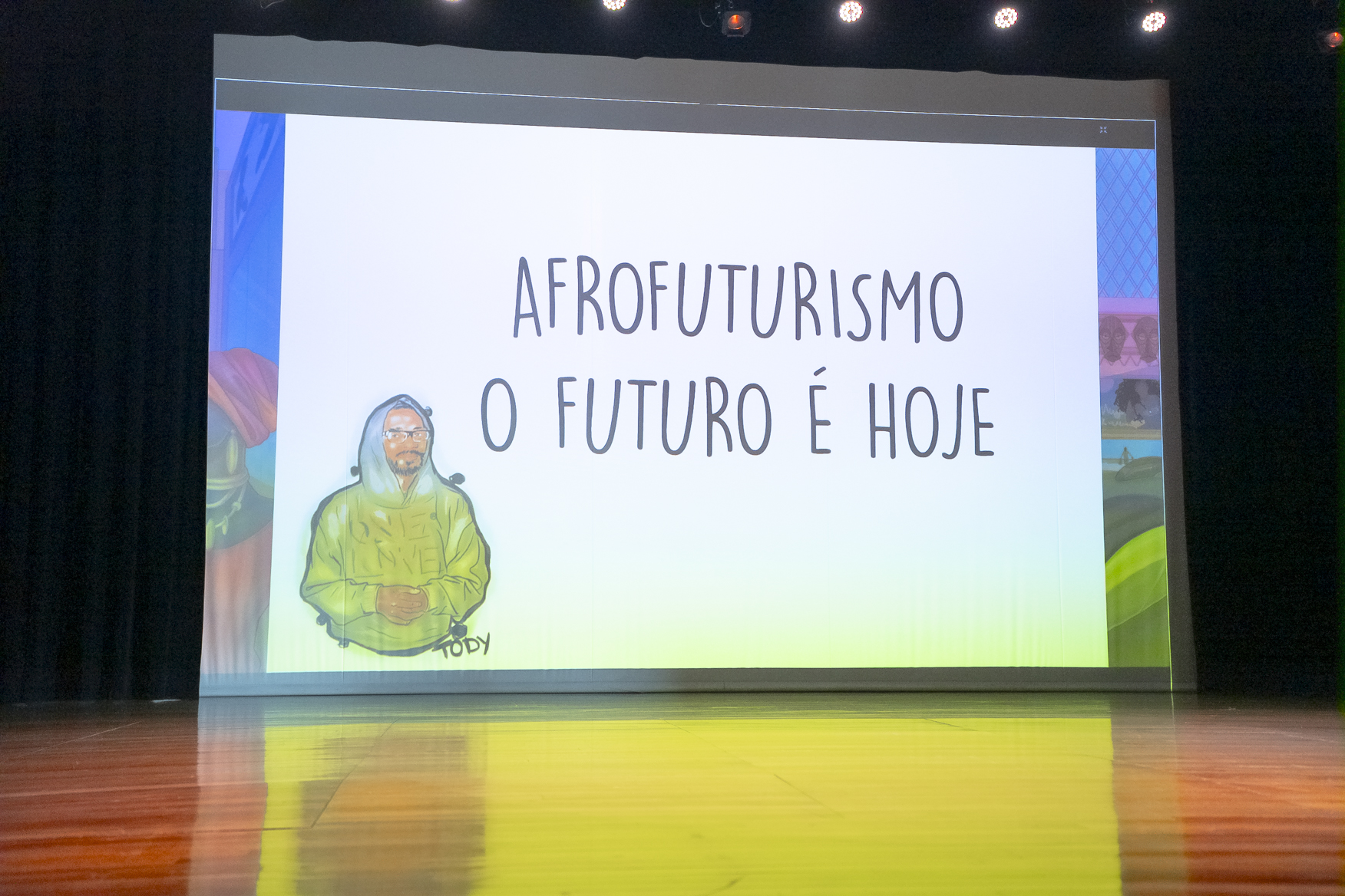 A partir de vasto acervo, o bate-papo também propôs o encontro de crianças e jovens com a literatura afrofuturista, que celebra a memória ancestral e propõe um diálogo com valores civilizatórios afro-brasileiros.