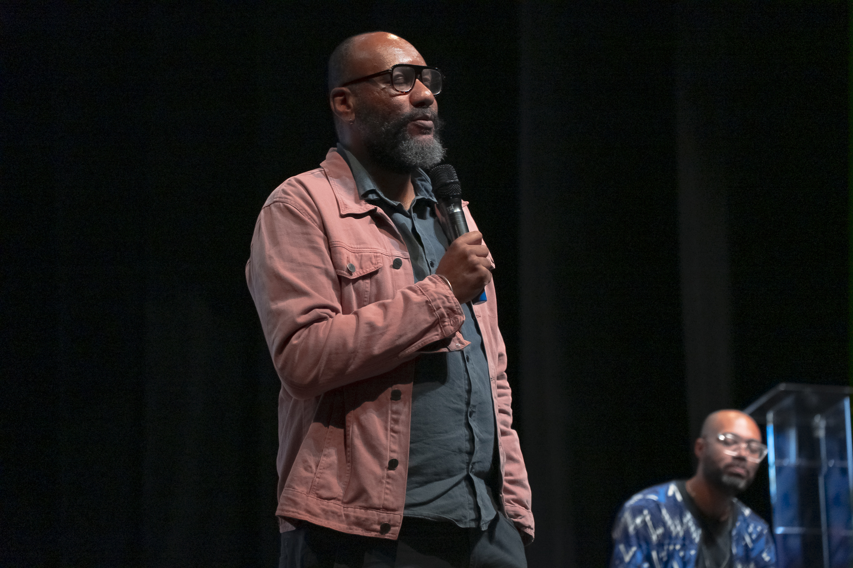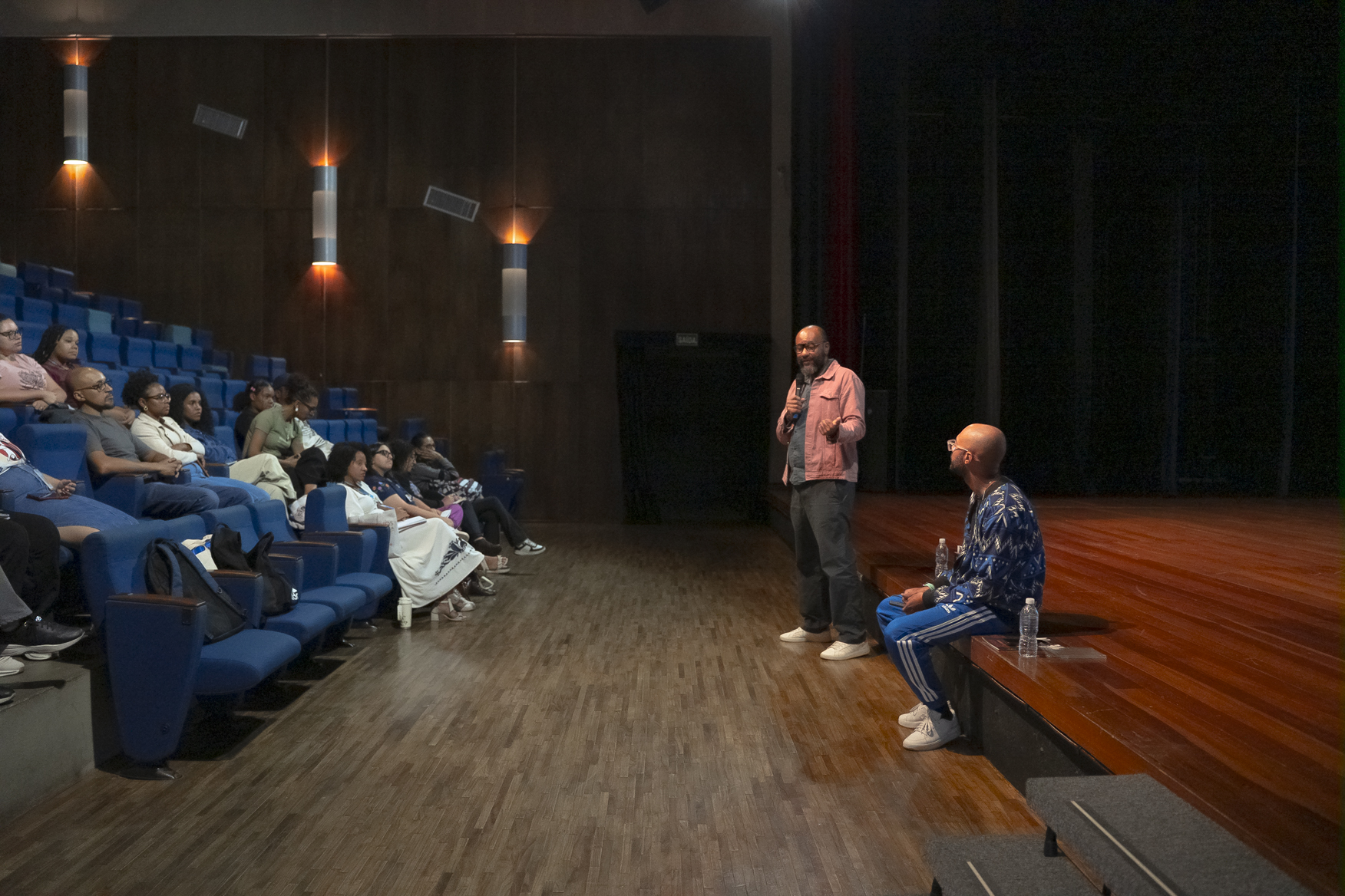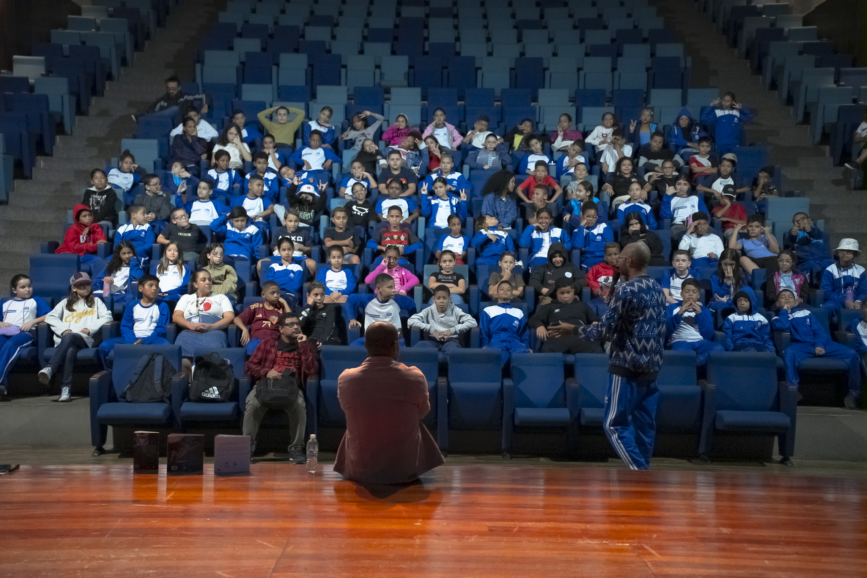Professores e alunos da EPG Edson Nunes Malecka, no Jardim Ponte Alta, receberam na última sexta-feira (10), os escritores Henrique André e Israel Neto, autores da Editora Kitembo, para um bate-papo sobre literatura Afrofuturista infanto-juvenil. O encontro, que aconteceu no Teatro do CEU Ponte Alta, integra as ações do Literatura em Movimento, iniciativa da Secretaria de Educação para fomento ao livro e à literatura.