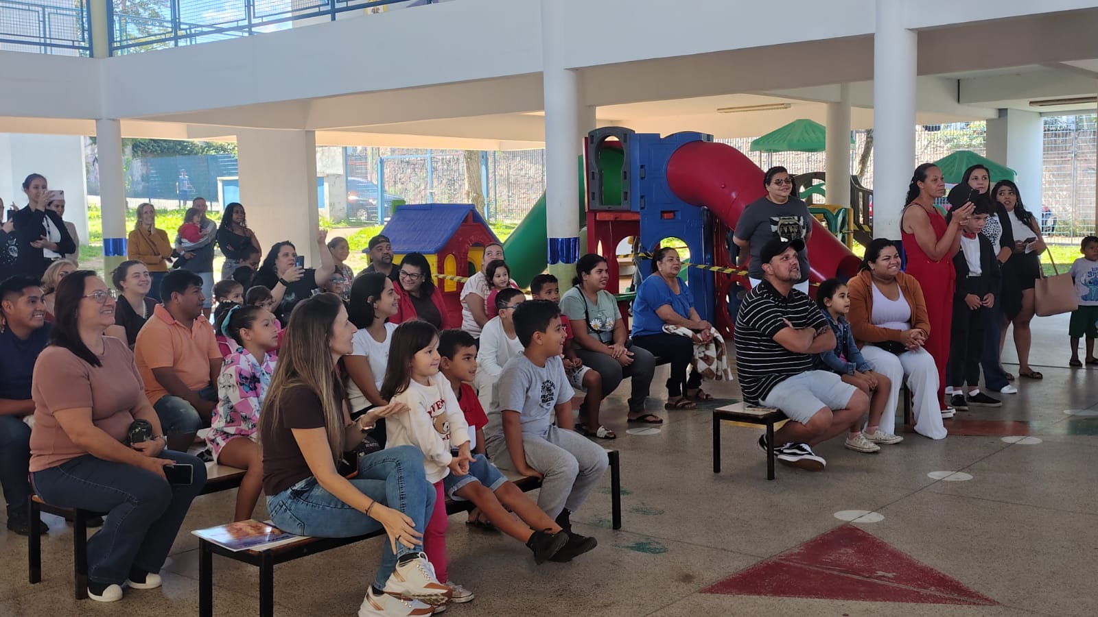No palco, as apresentações circenses dos estudantes trouxeram movimento e ainda mais encantamento ao evento, com números de malabarismo, mágica, ilusionismo e dança, garantindo momentos de alegria e envolvimento para todos os presentes.