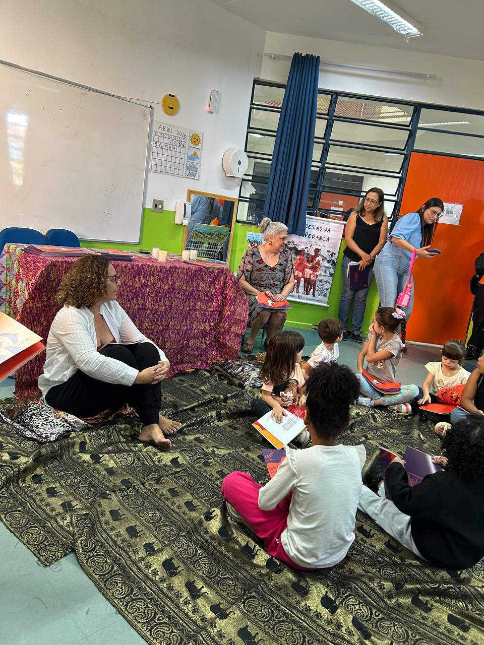Fortalecer os vínculos entre a escola e a comunidade do Jardim Santa Clara foi um dos objetivos da EPG Alfredo Volpi, que no último sábado (11) promoveu a “Manhã Literária”, evento em consonância com o Literatura em Movimento 2026, iniciativa da Secretaria de Educação que apresenta o tema Experiências literárias que humanizam. O projeto reuniu educandos, famílias, educadores e escritoras guarulhenses em uma manhã marcada pela valorização da leitura e da cultura.