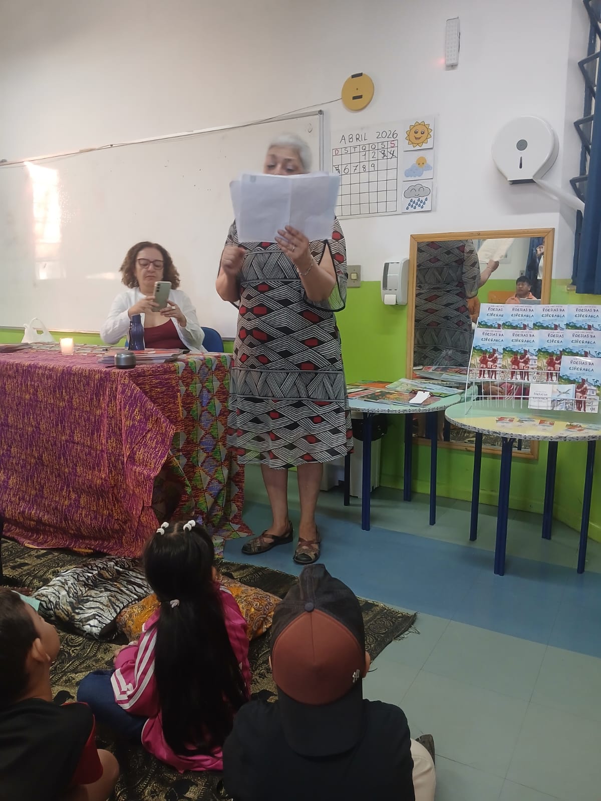 Outro espaço de grande relevância foi a sala temática dedicada às escritoras guarulhenses e professoras da rede municipal Monica Bittencourt Martins, Neuzeli de Linica dos Santos Macedo, Miriã Soares e Alice Rocha. O encontro com as autoras proporcionou visibilidade à produção literária local e aproximou os estudantes do universo da escrita.
