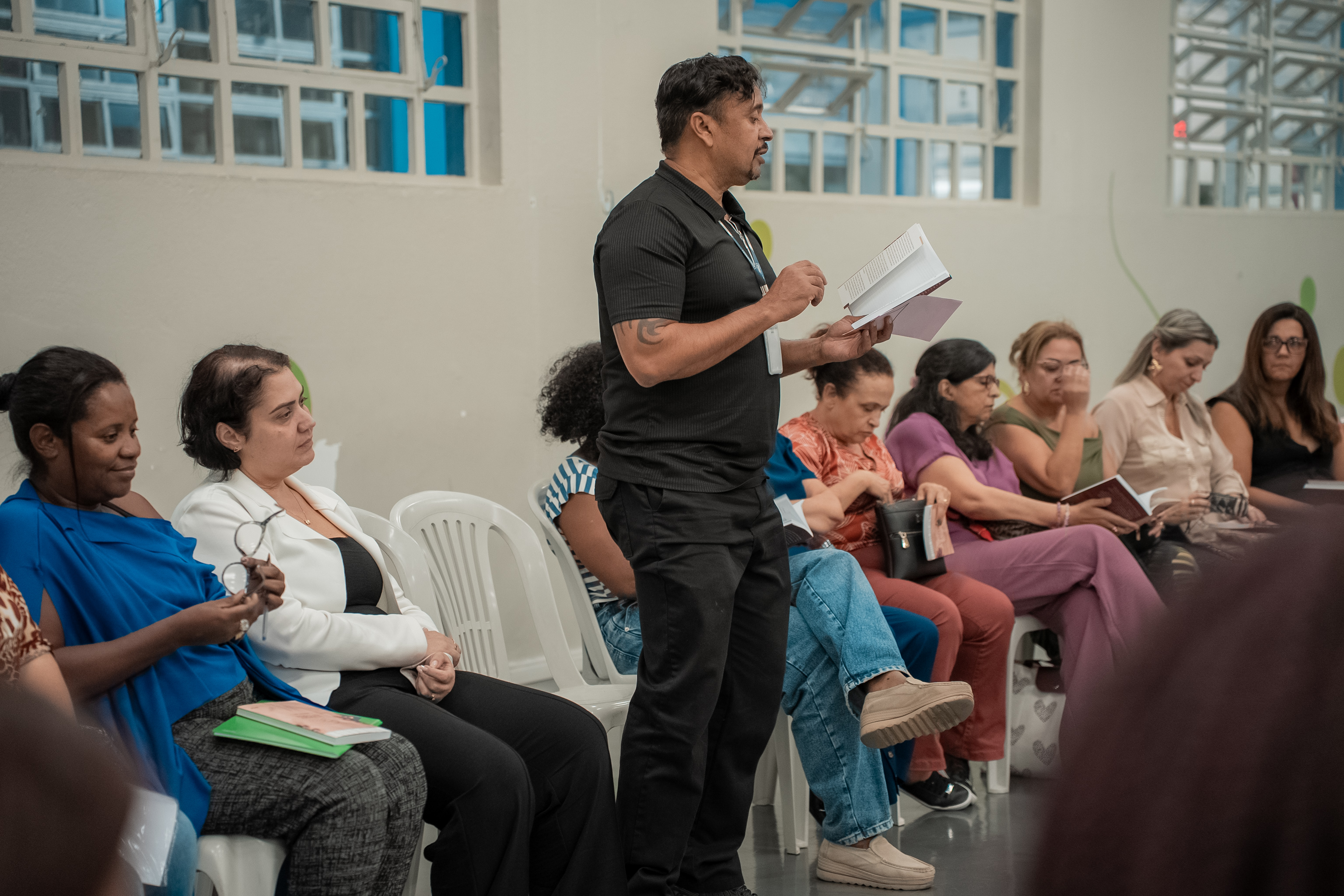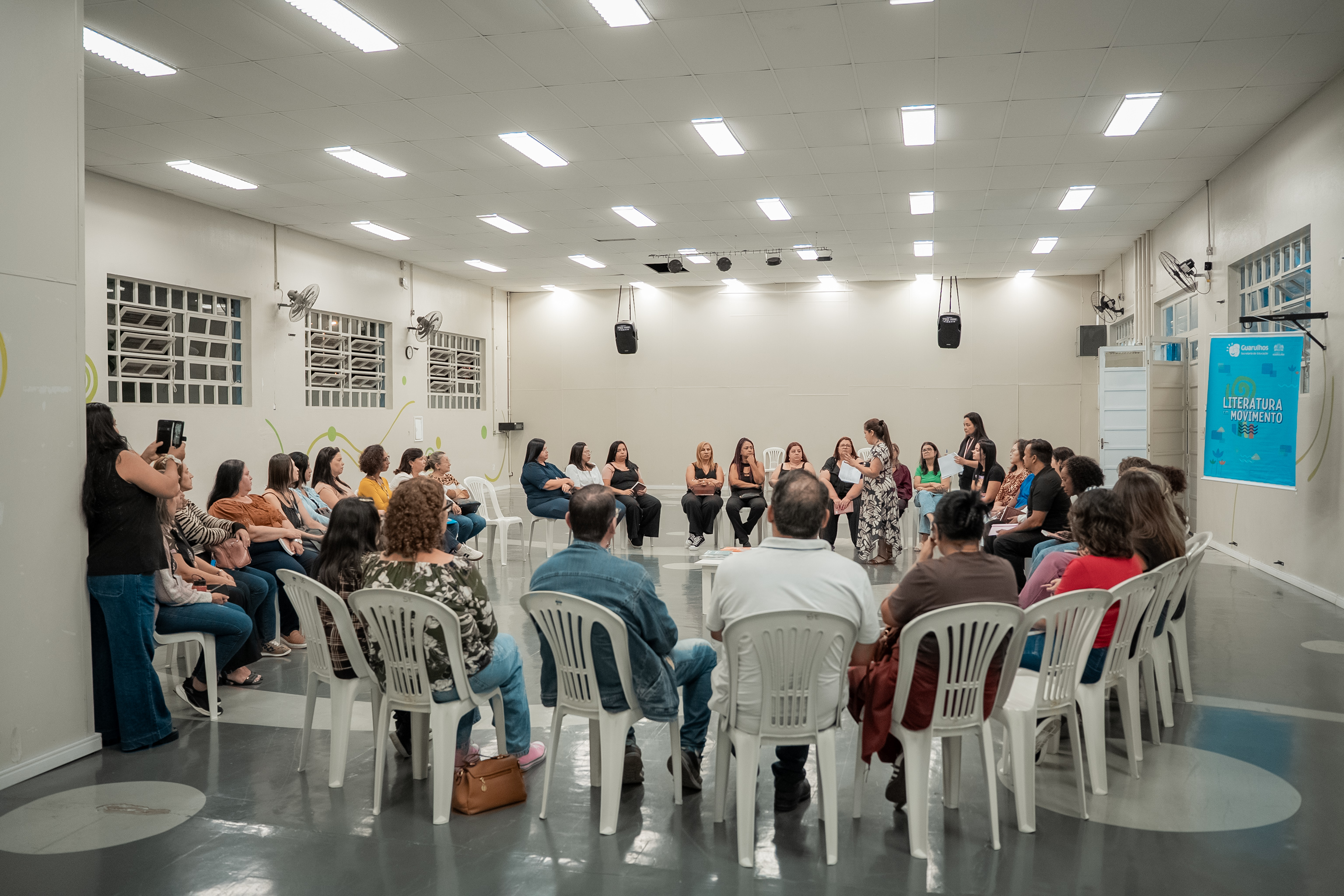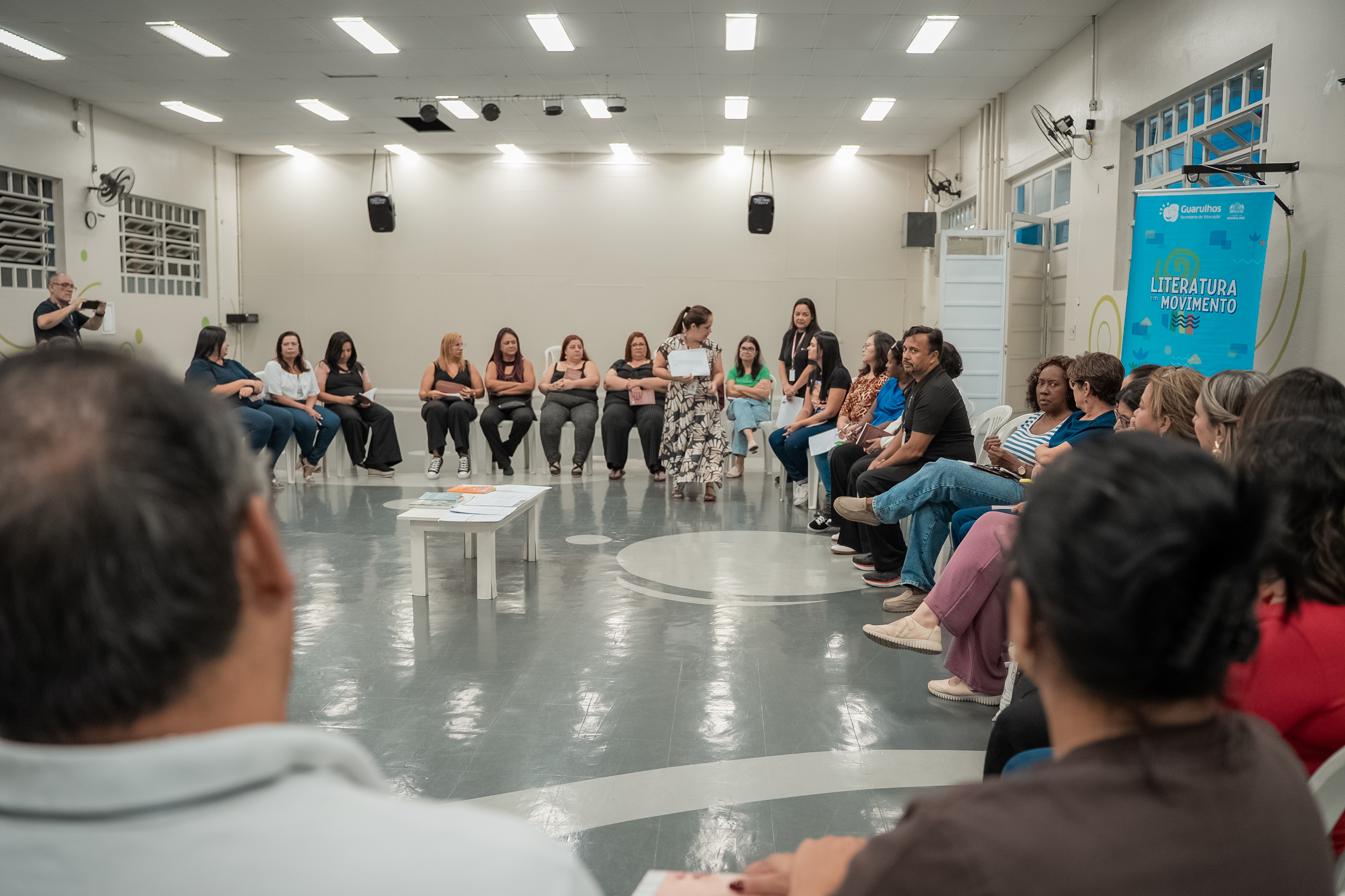 Cursistas do Programa LEIA+ Guarulhos que atuam nas escolas da rede municipal com a modalidade EJA participaram na noite da última terça-feira (14) de encontro formativo com o tema Roda Literária: Formação de Leitores, na sede da Secretaria de Educação, no Macedo. A formação teve como foco o Programa Literatura em Movimento 2026, que a partir do tema “Experiências Literárias que Humanizam” objetiva assegurar e democratizar o acesso à leitura e ao livro a toda a população guarulhense.