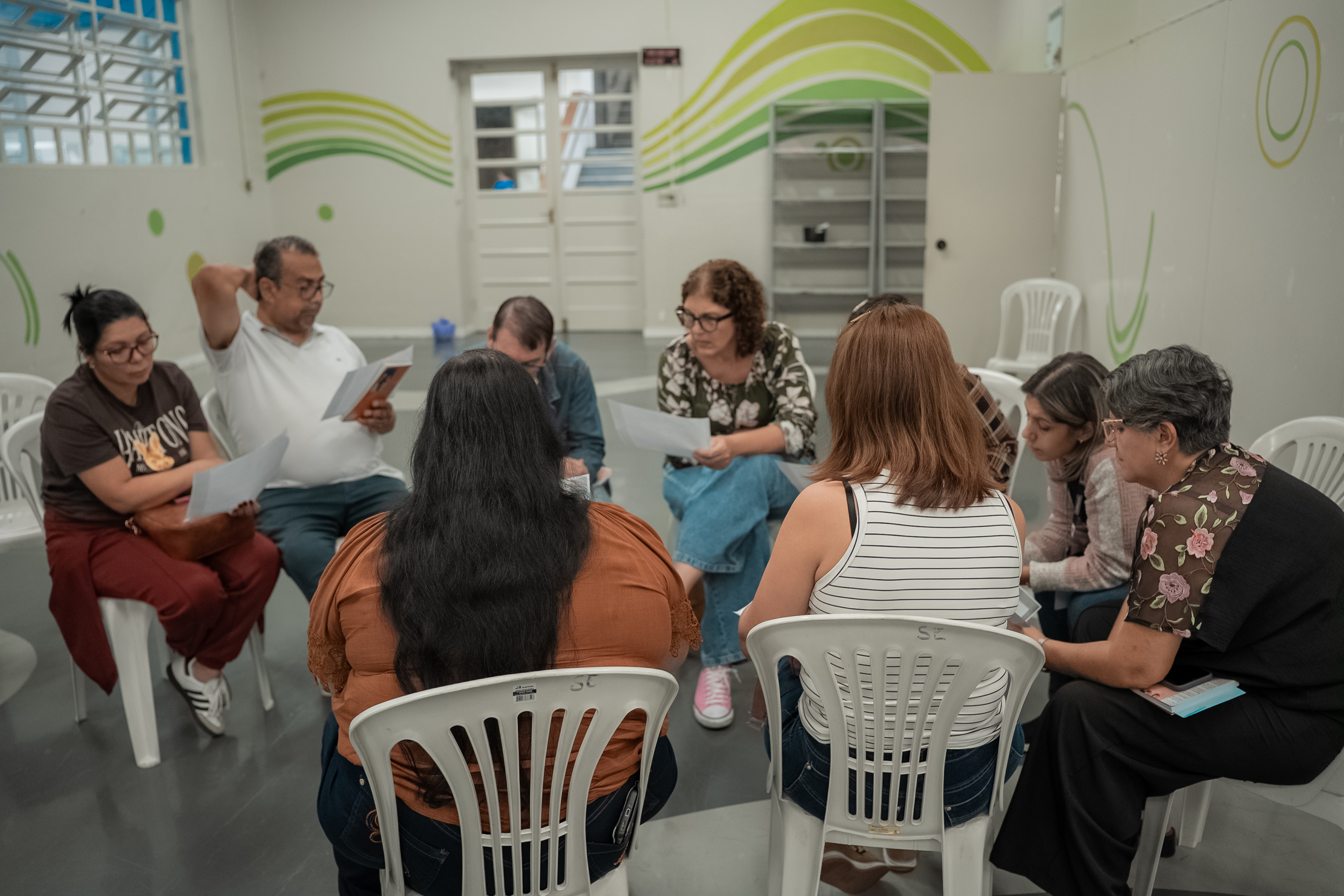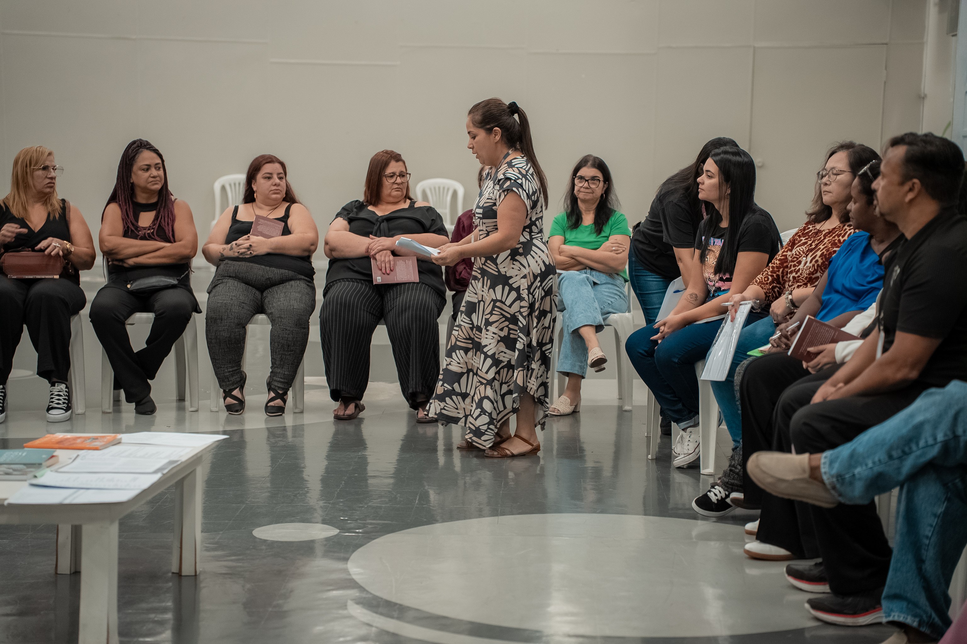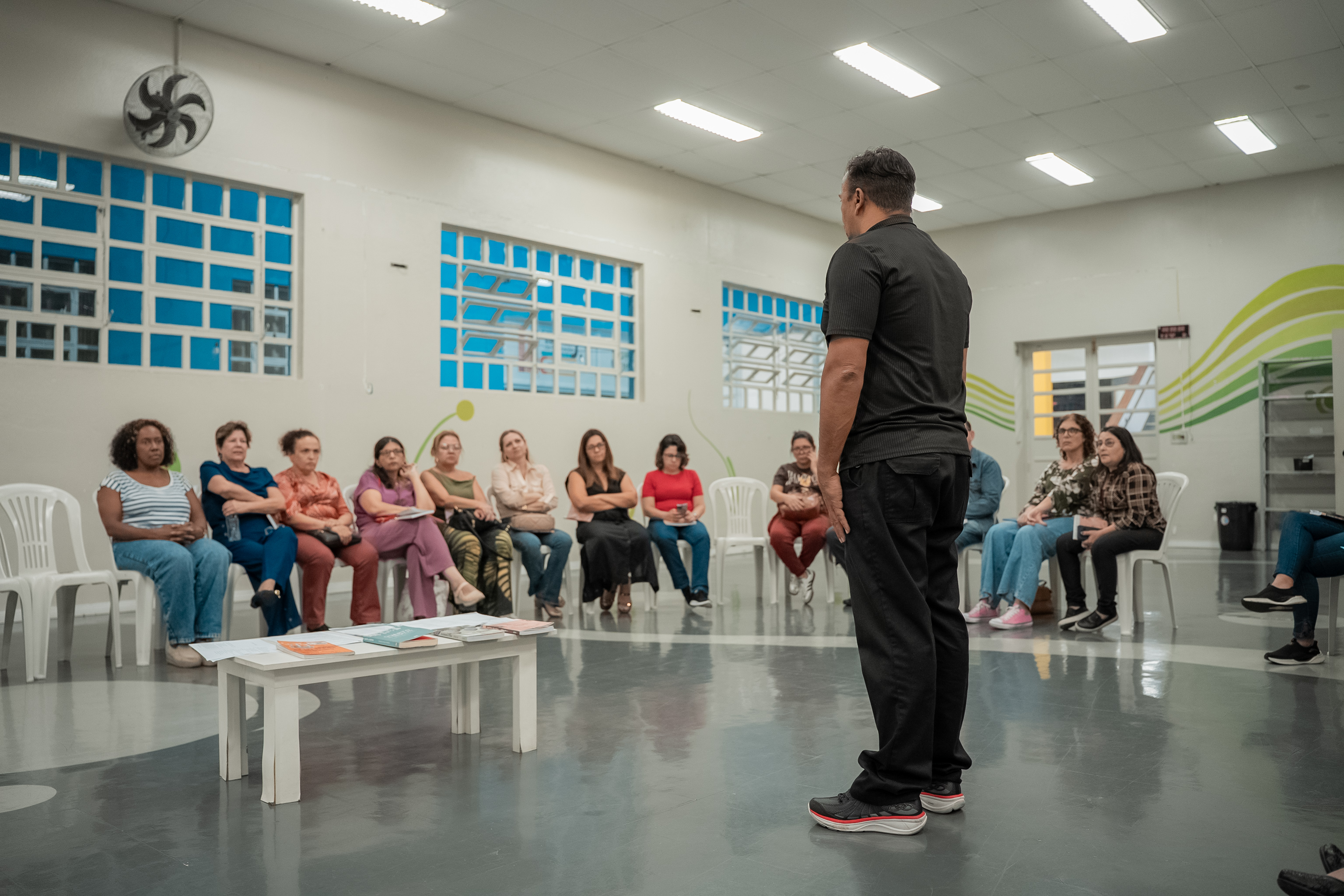 Cursistas do Programa LEIA+ Guarulhos que atuam nas escolas da rede municipal com a modalidade EJA participaram na noite da última terça-feira (14) de encontro formativo com o tema Roda Literária: Formação de Leitores, na sede da Secretaria de Educação, no Macedo. A formação teve como foco o Programa Literatura em Movimento 2026, que a partir do tema “Experiências Literárias que Humanizam” objetiva assegurar e democratizar o acesso à leitura e ao livro a toda a população guarulhense.