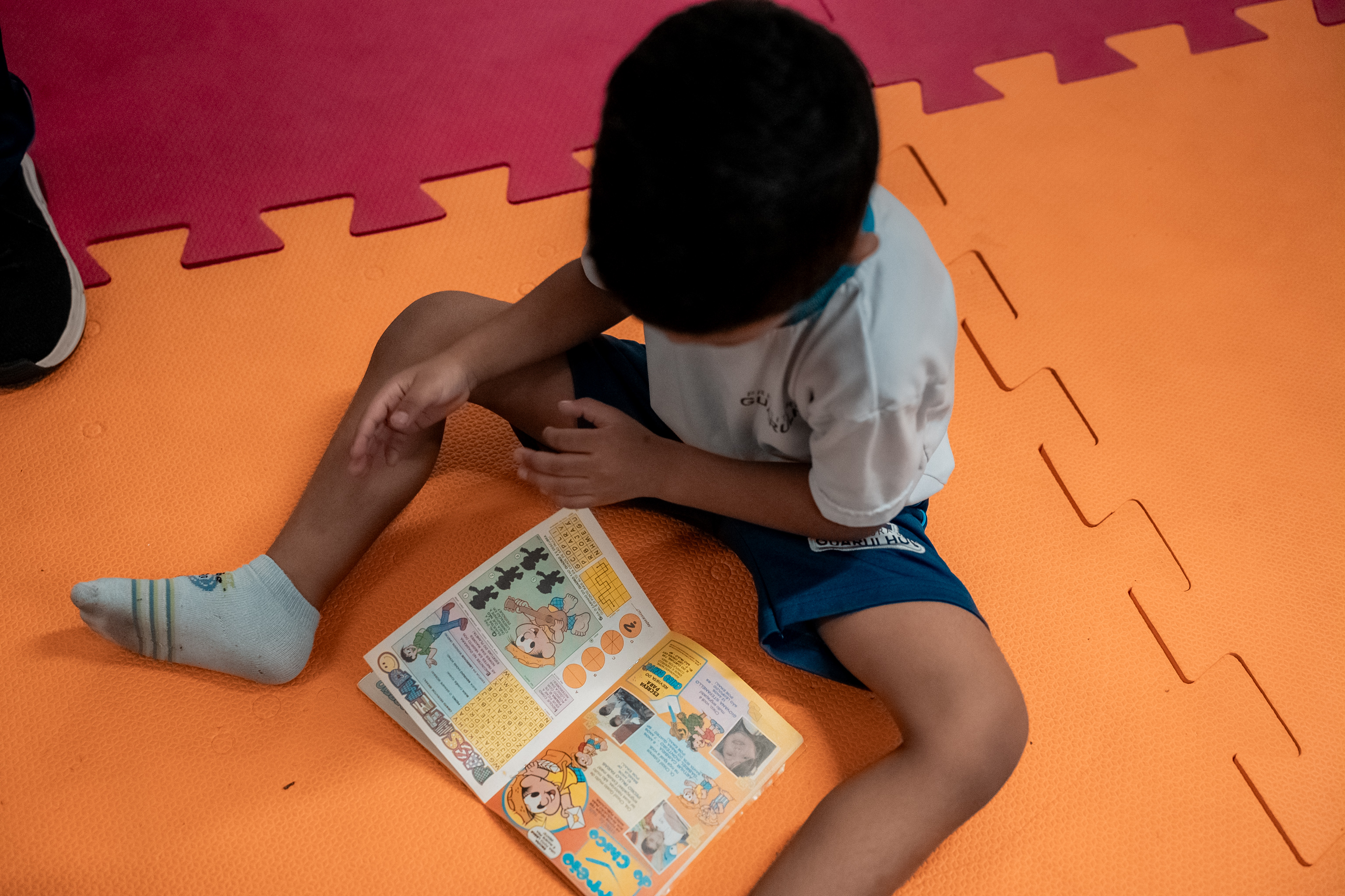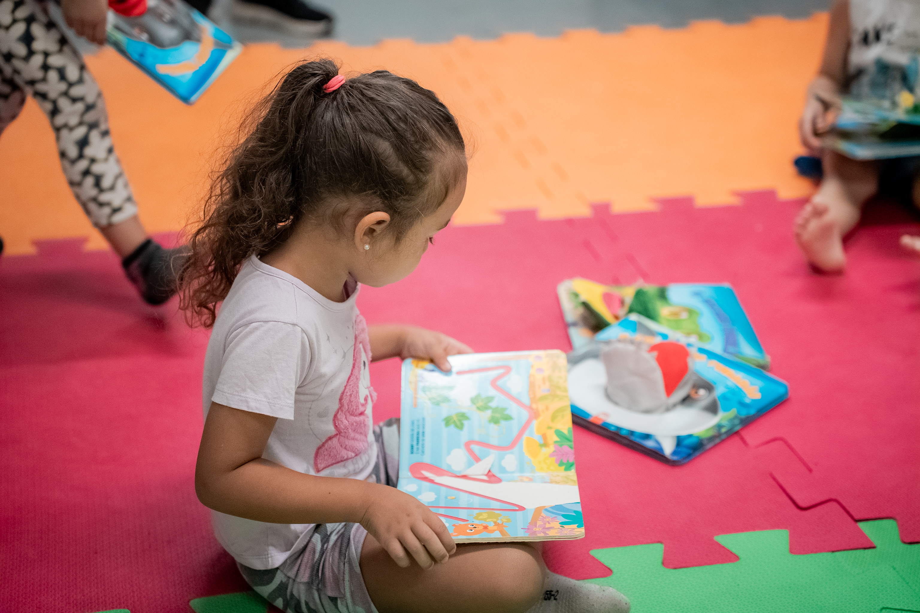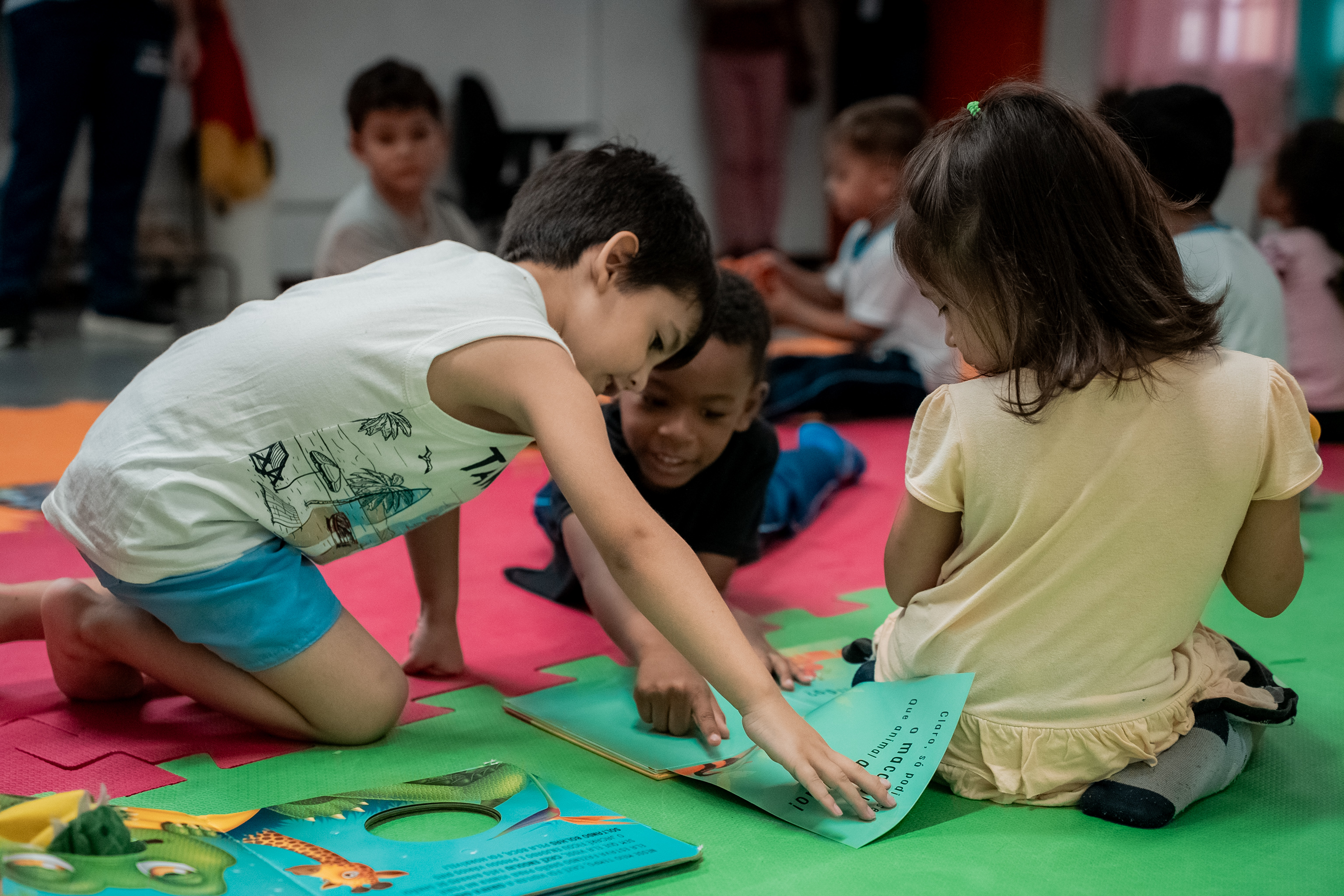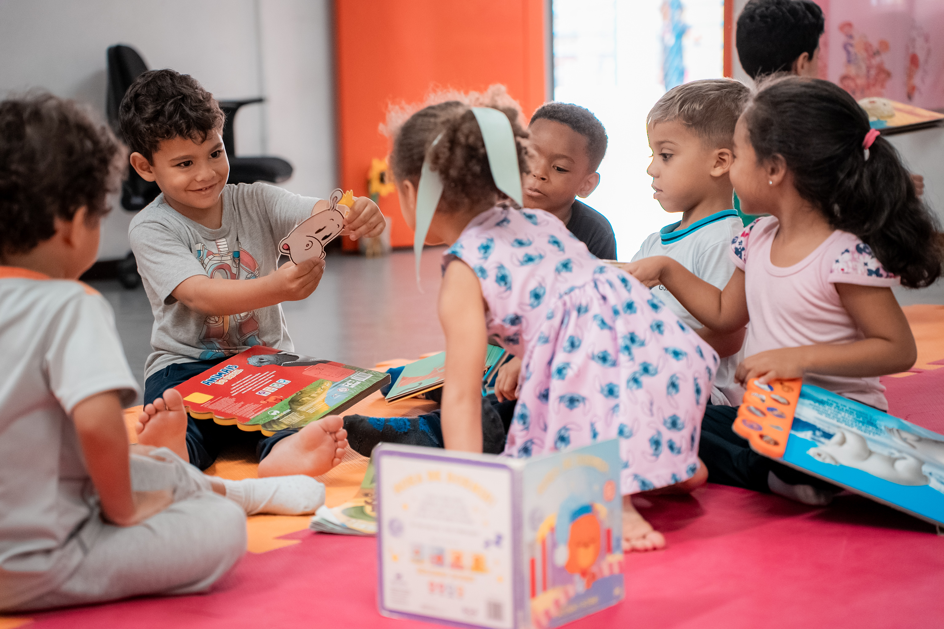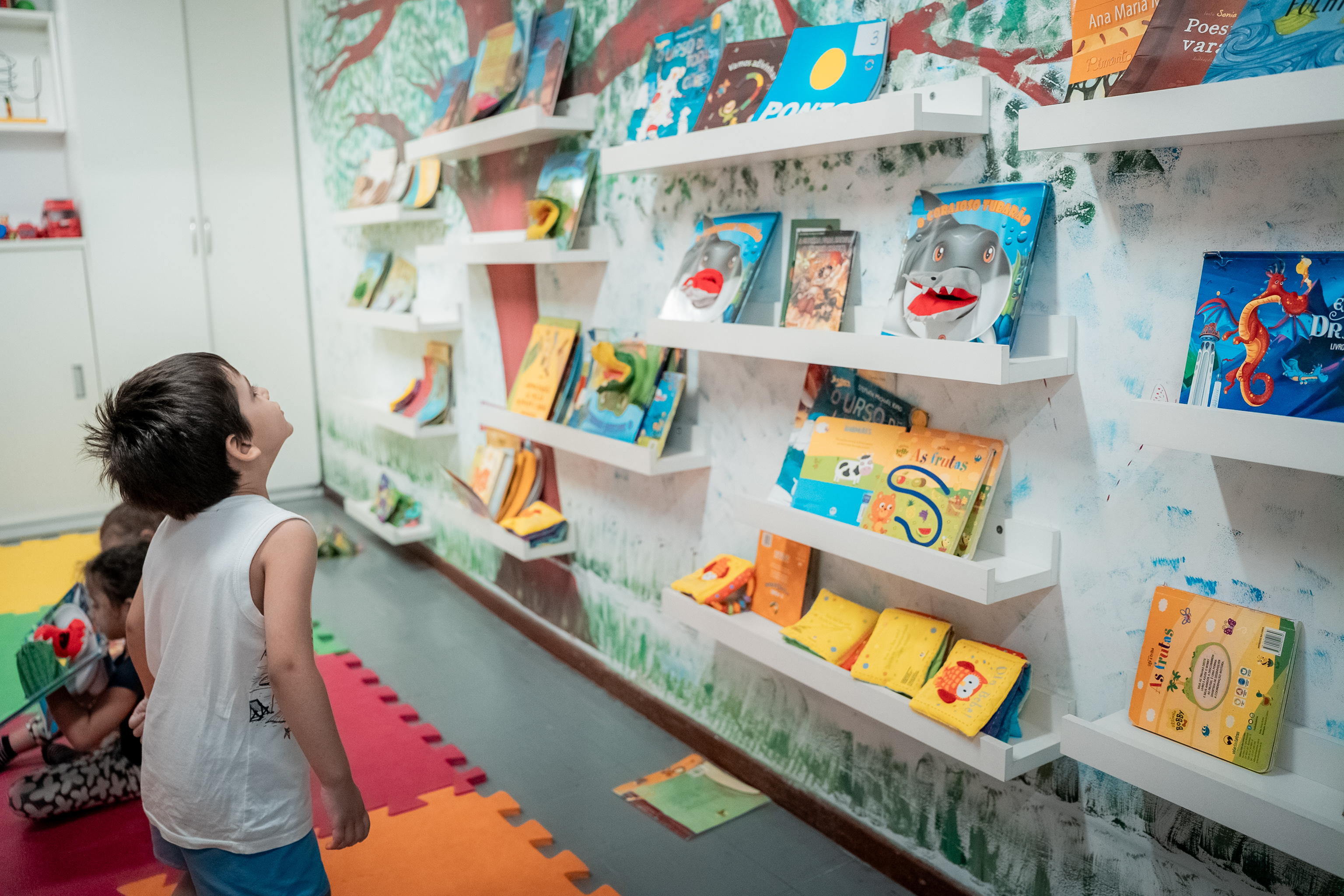 Em meio aos livros que vão e voltam para a casa das crianças, o foco de atenção da equipe de gestores e professores está na oferta de rico acervo de livros com diversos formatos e materiais, o que chama a atenção de quem visita a unidade por um motivo muito simples: tem sempre uma criança carregando um livro pra lá e pra cá.