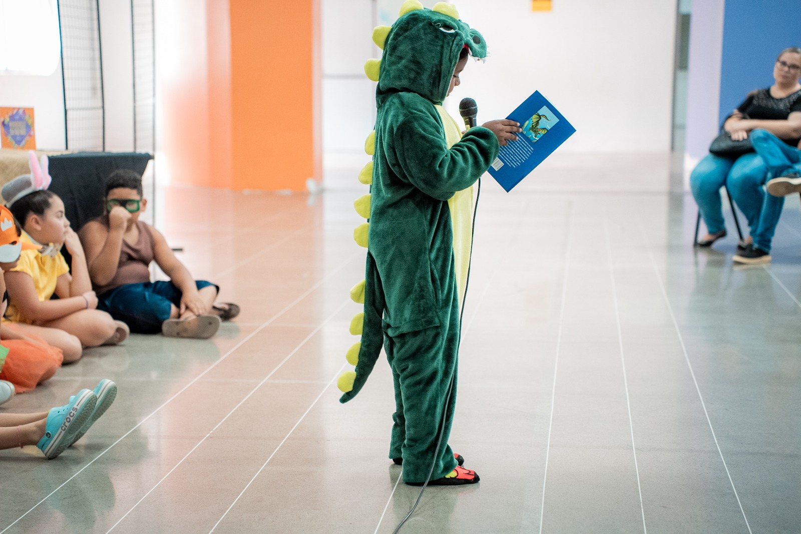 Com figurinos de personagens, os alunos puderam colocar em prática e de forma espontânea o que têm apreendido nos cursos, demonstrando que a leitura vai além das palavras escritas. Os livros utilizados para atividades fazem parte do acervo do espaço, disponível para empréstimo gratuitamente ao público.