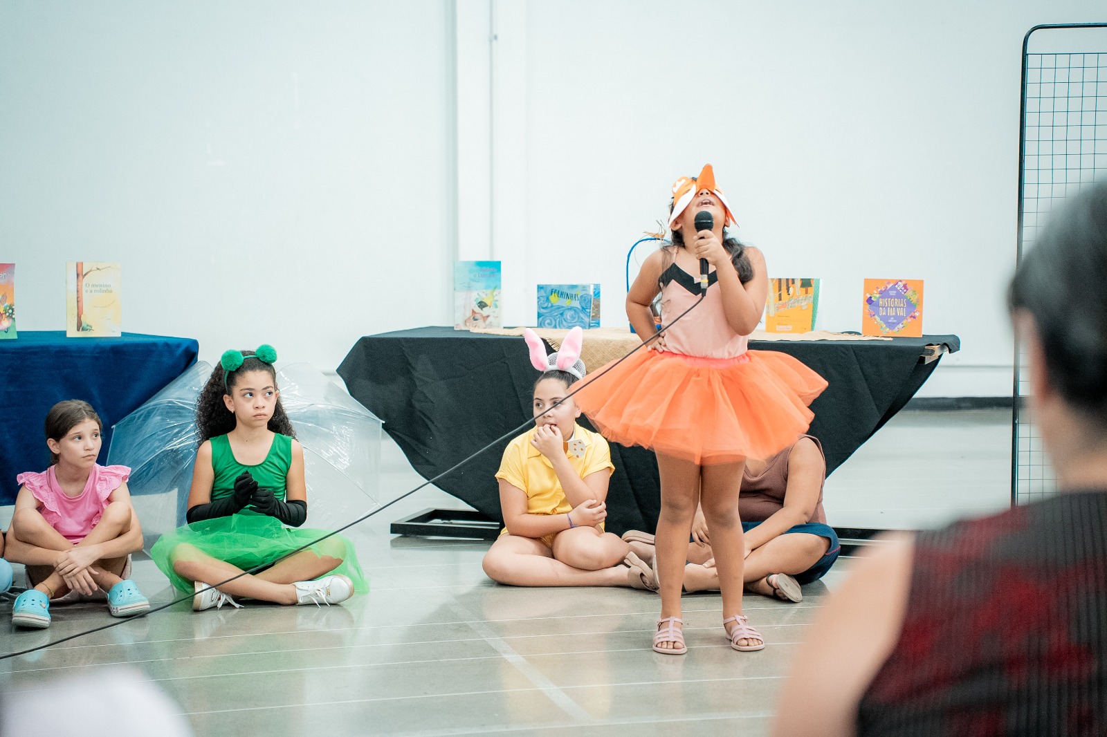 Também foi realizada a peça “Dois Personagens Sem História”, escrita e encenada por professores de teatro dos centros educacionais, trazendo o público para o palco de forma interativa, celebrando o papel do escritor e do leitor com música e imaginação.
